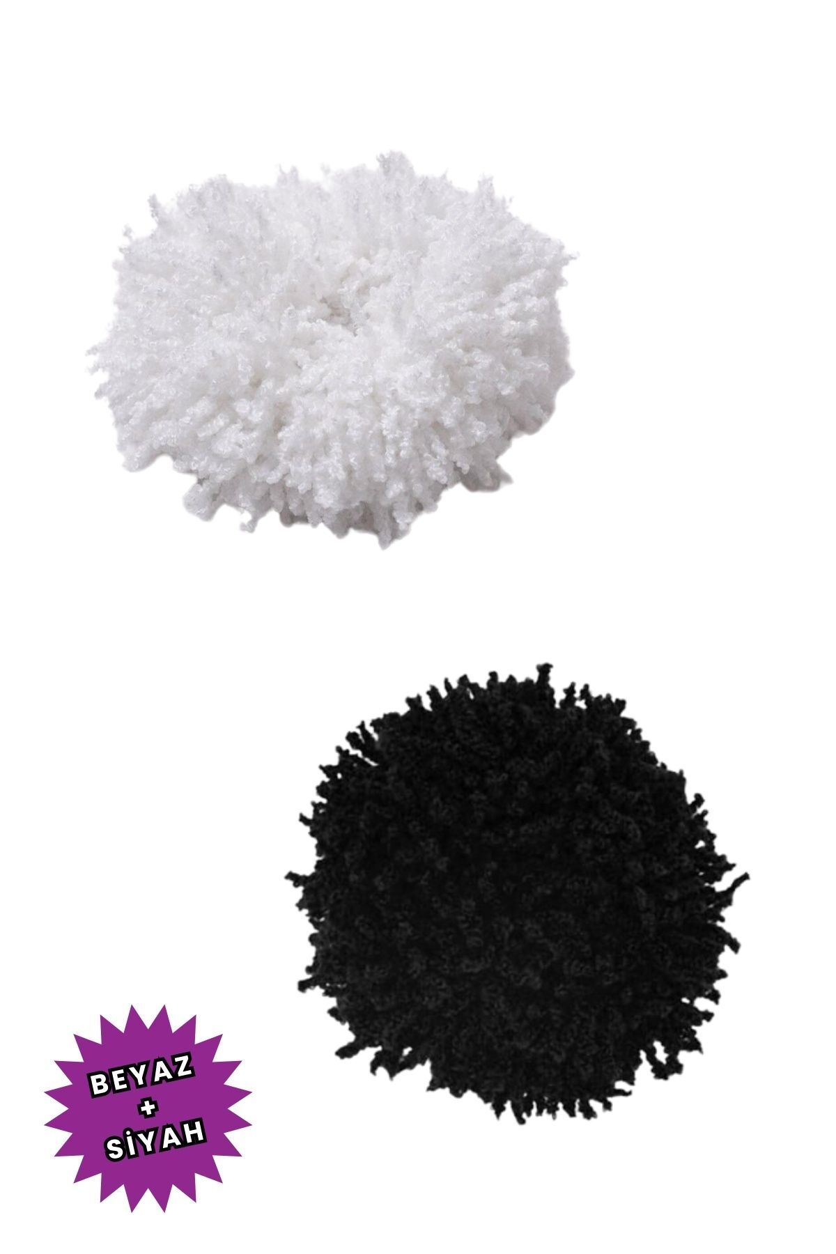 2li Topuz Tokası Seti Dolgun Lastikli Tesettür Kadın Toka 2 Adet Siyah Beyaz Arap Saçı