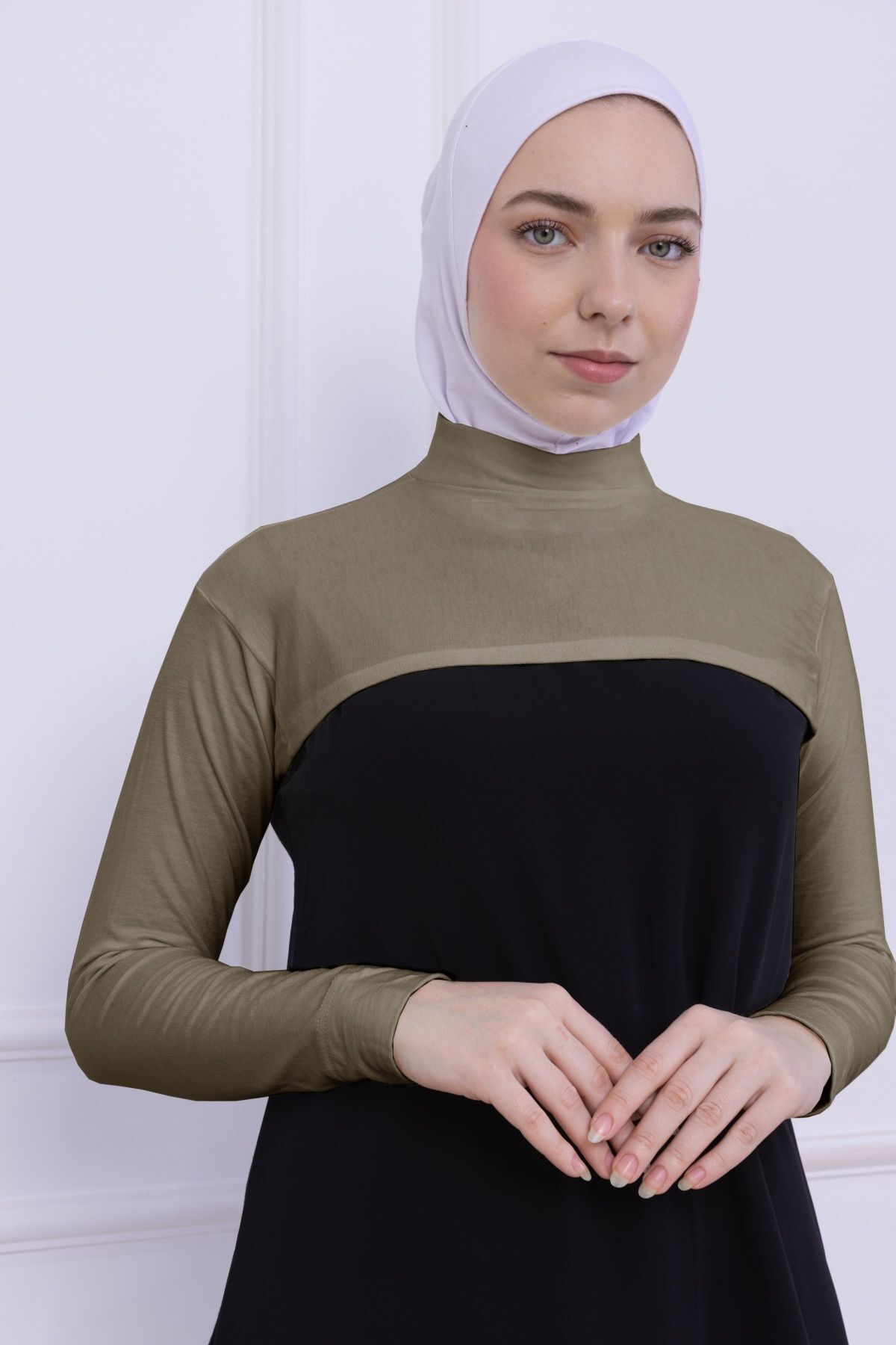 Balıkçı Yaka Boyunluklu Kolluk - Likralı Kadın Body Tesettür Crop Bolero Açık Yeşil