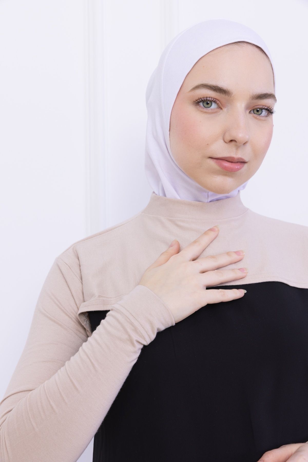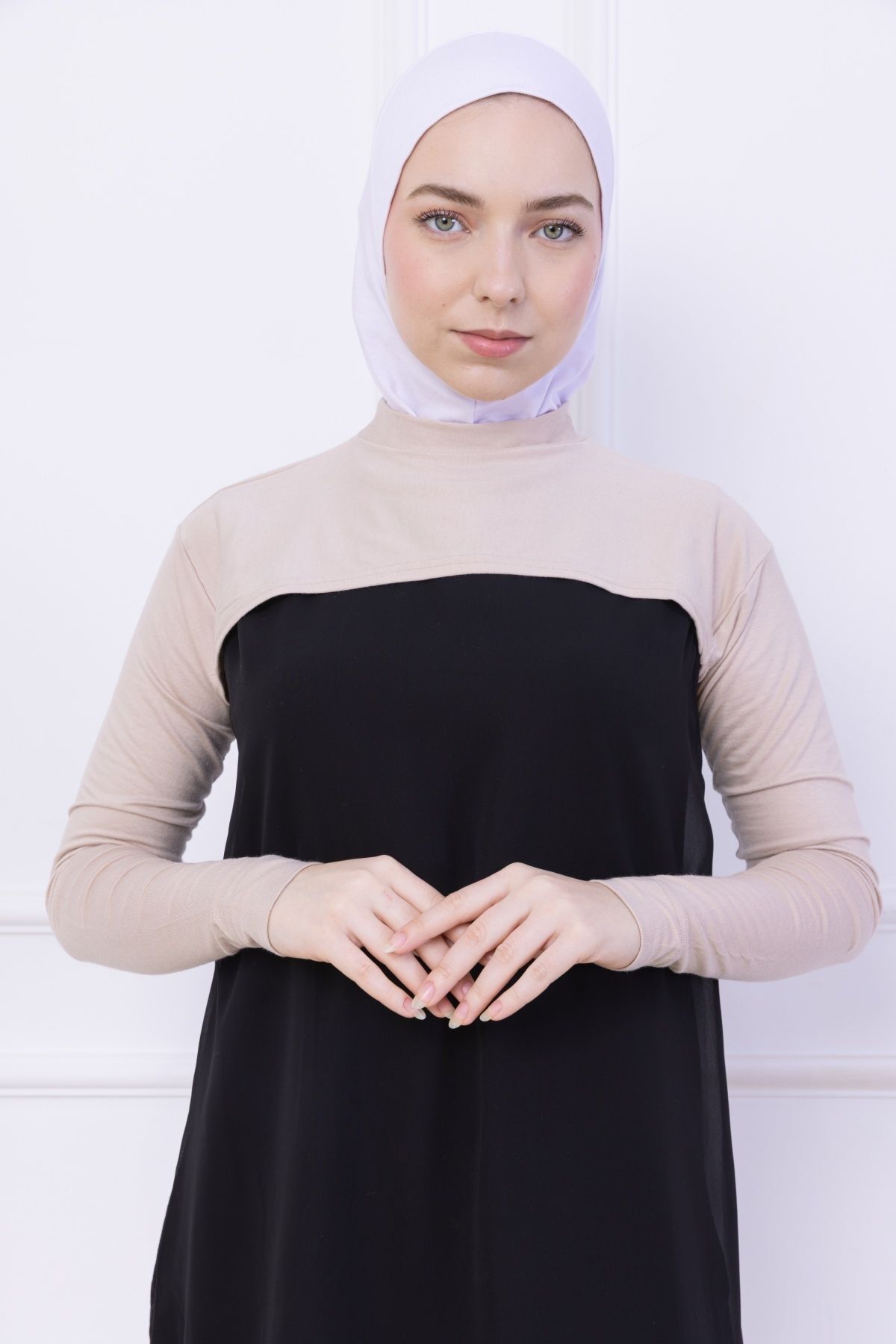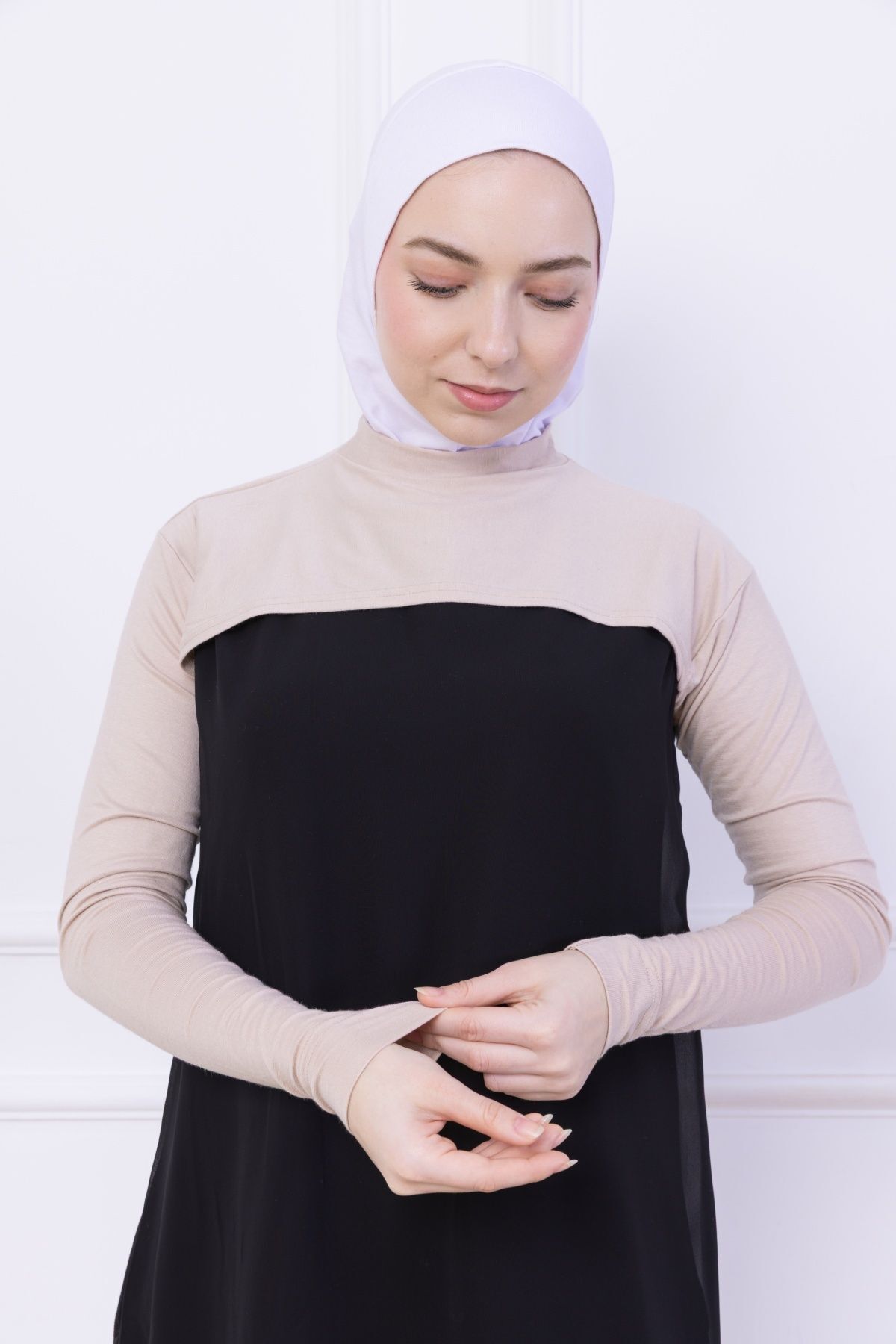 Balıkçı Yaka Boyunluklu Kolluk - Likralı Kadın Body Tesettür Crop Bolero Bej