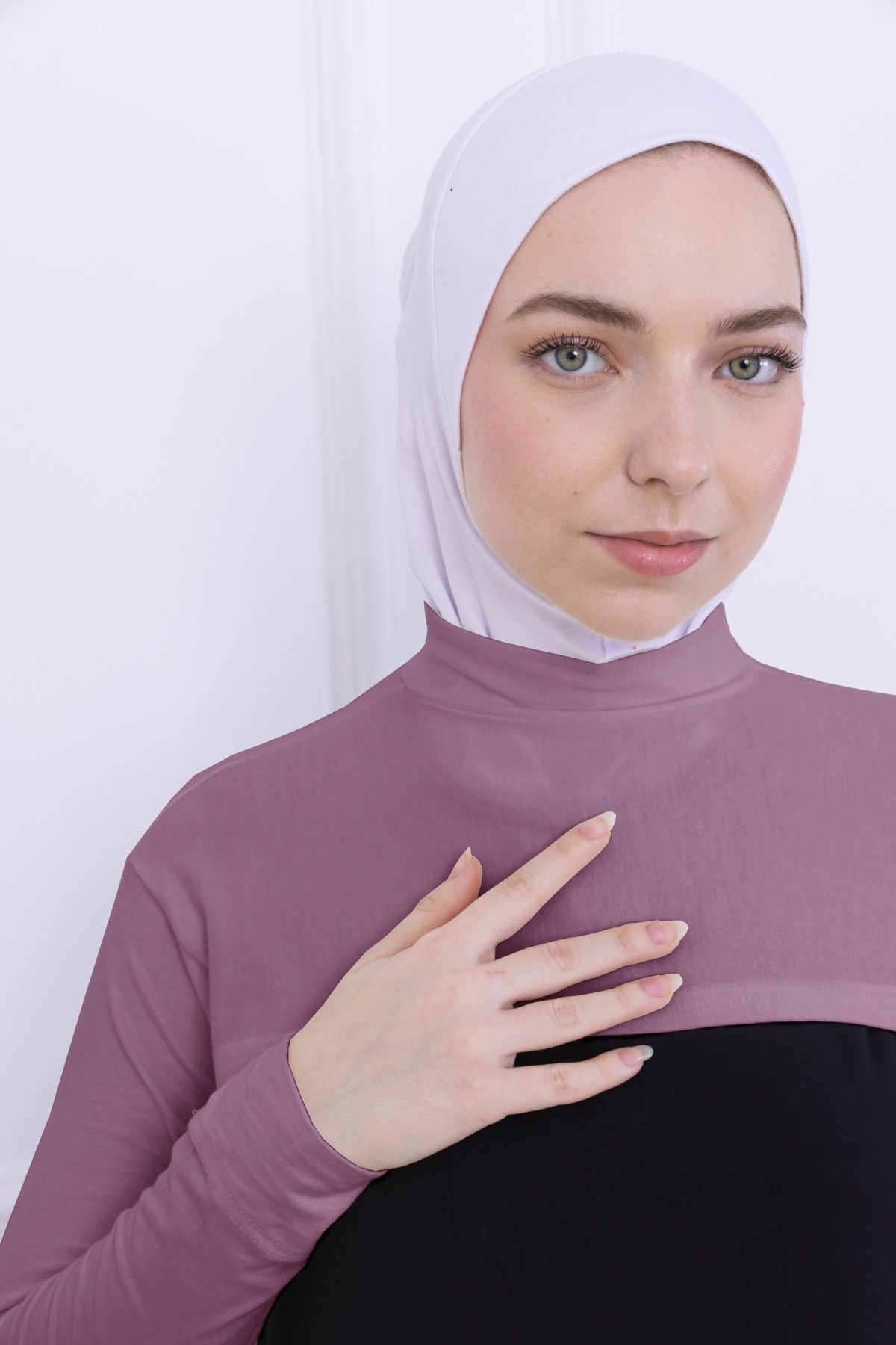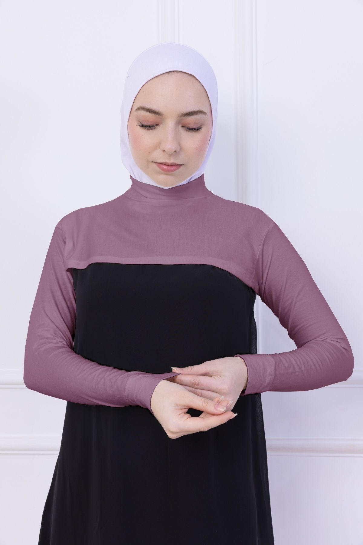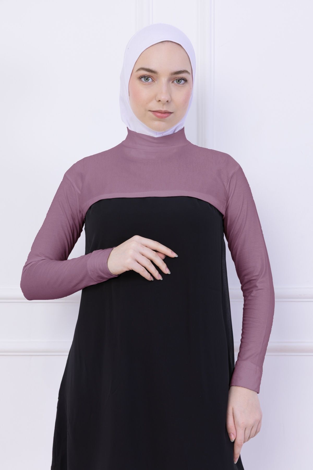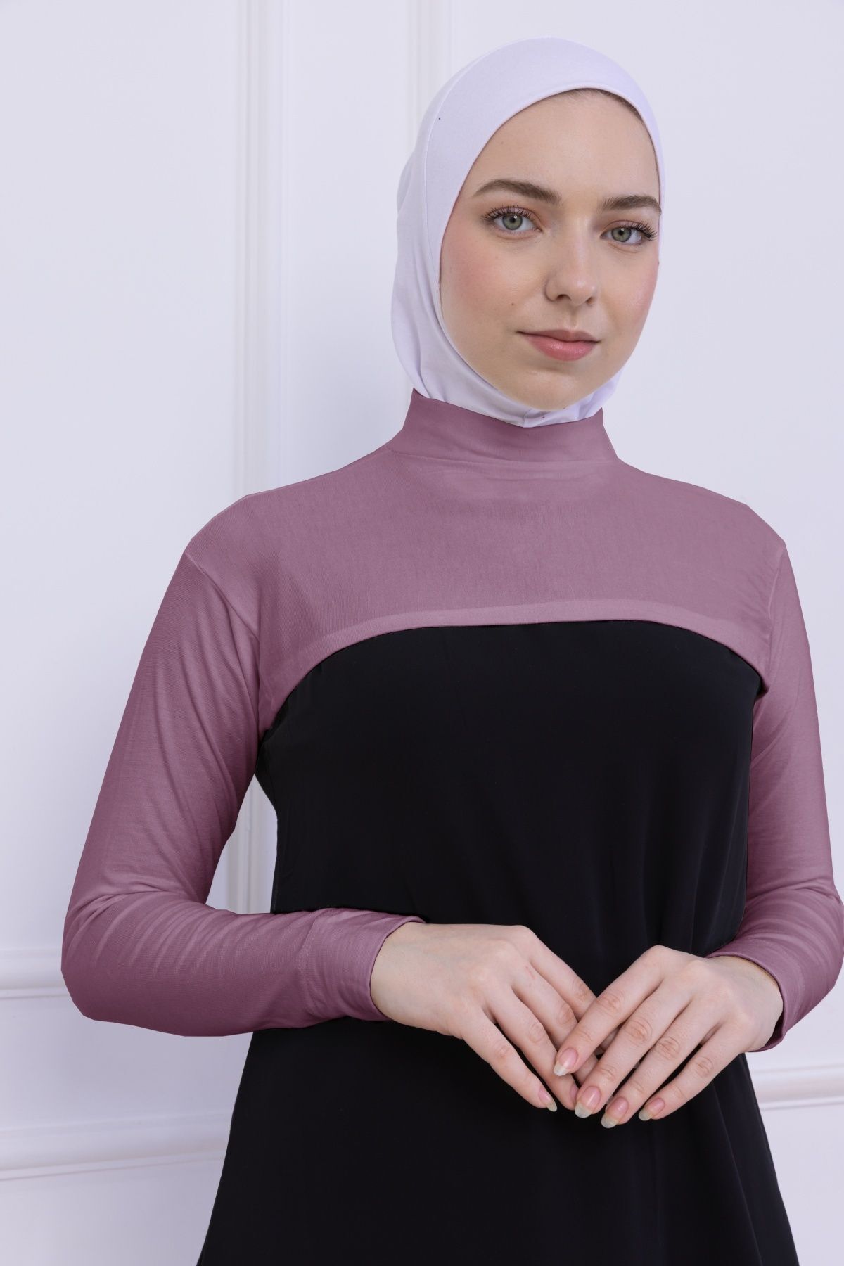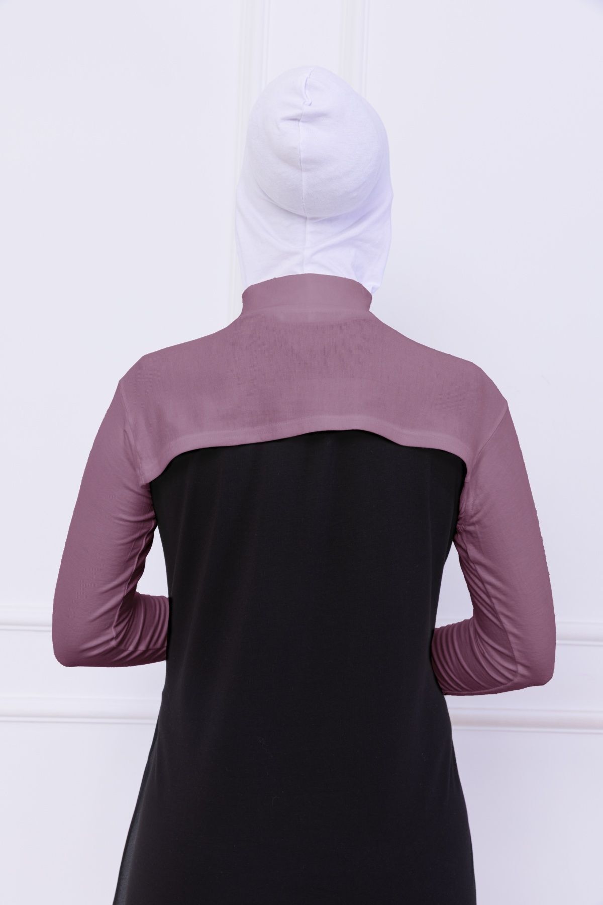 Balıkçı Yaka Boyunluklu Kolluk - Likralı Kadın Body Tesettür Crop Bolero Gül Kurusu