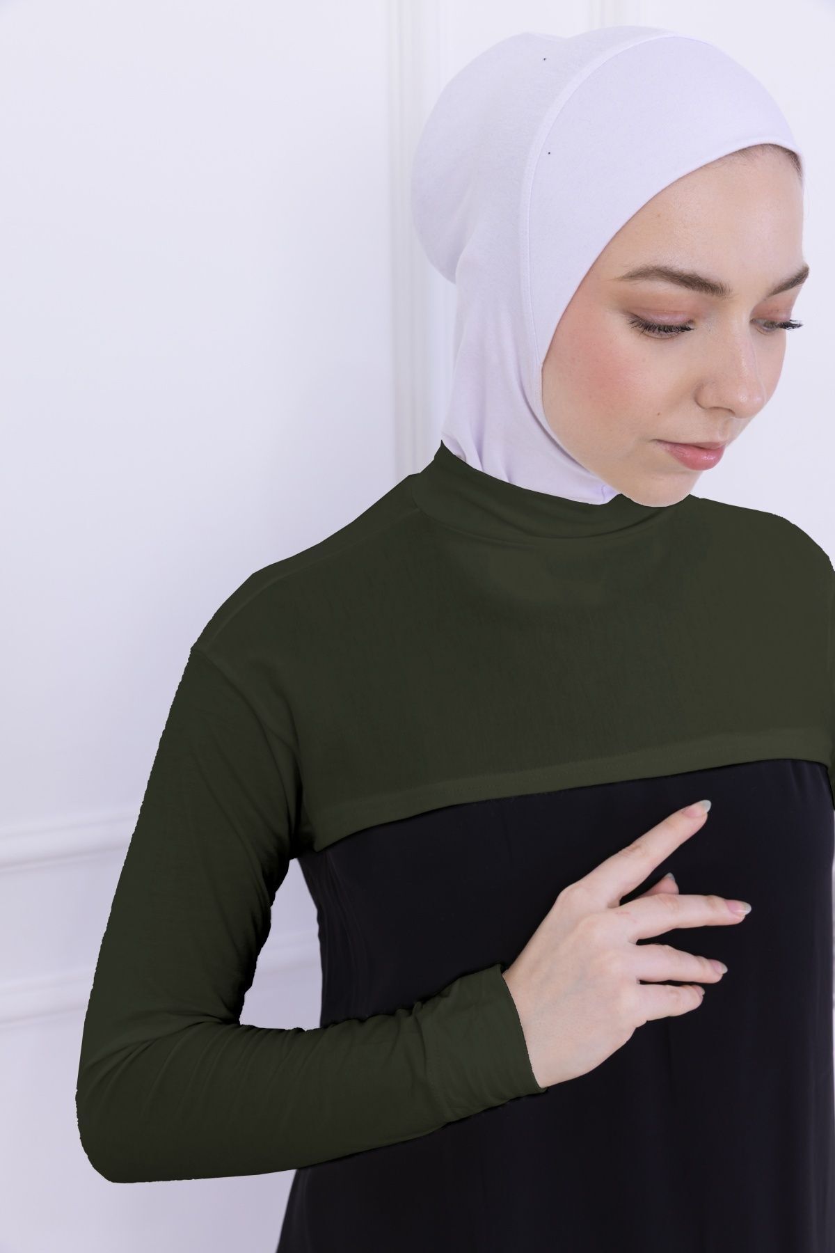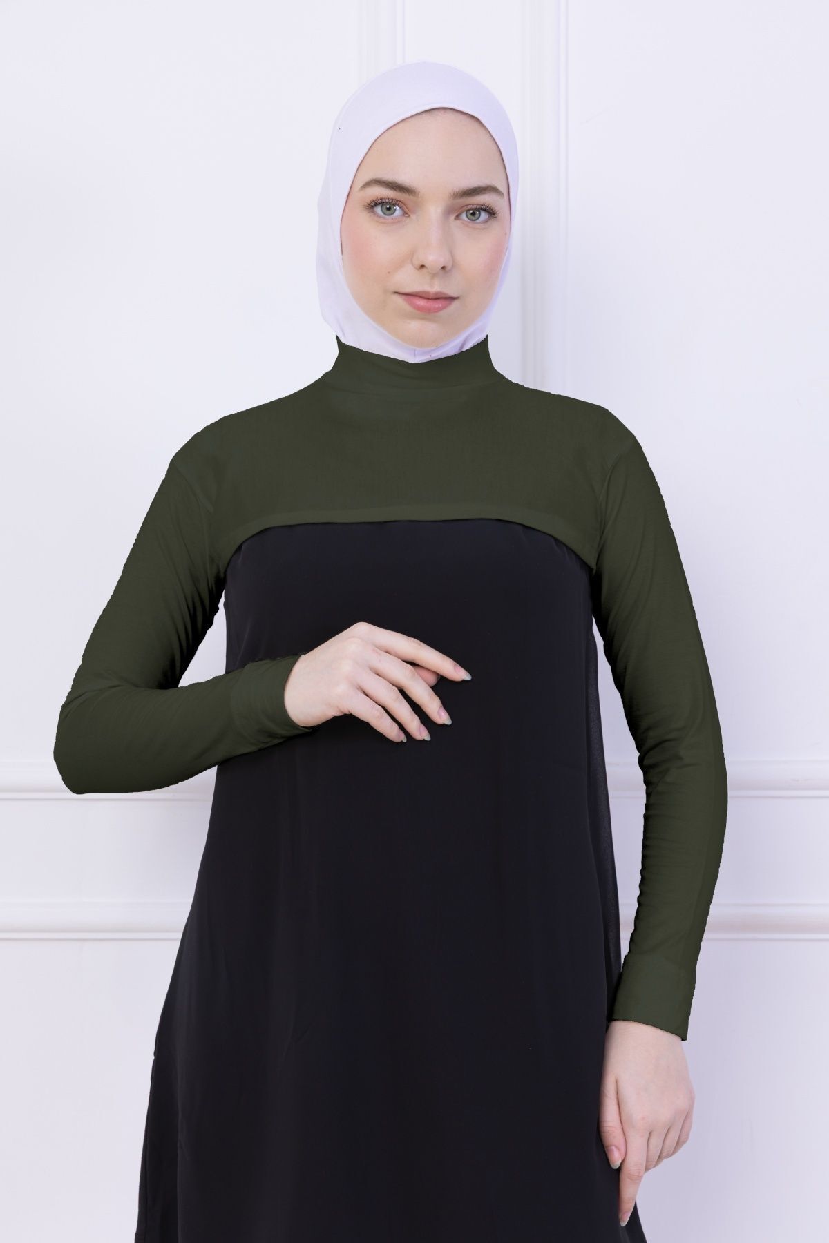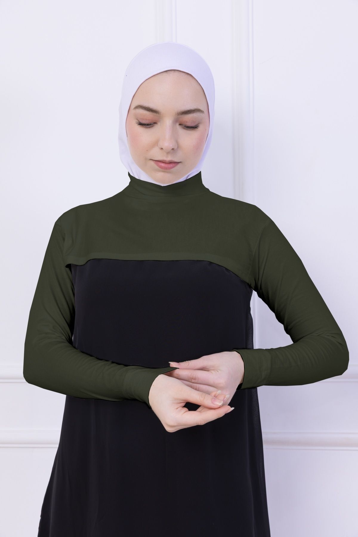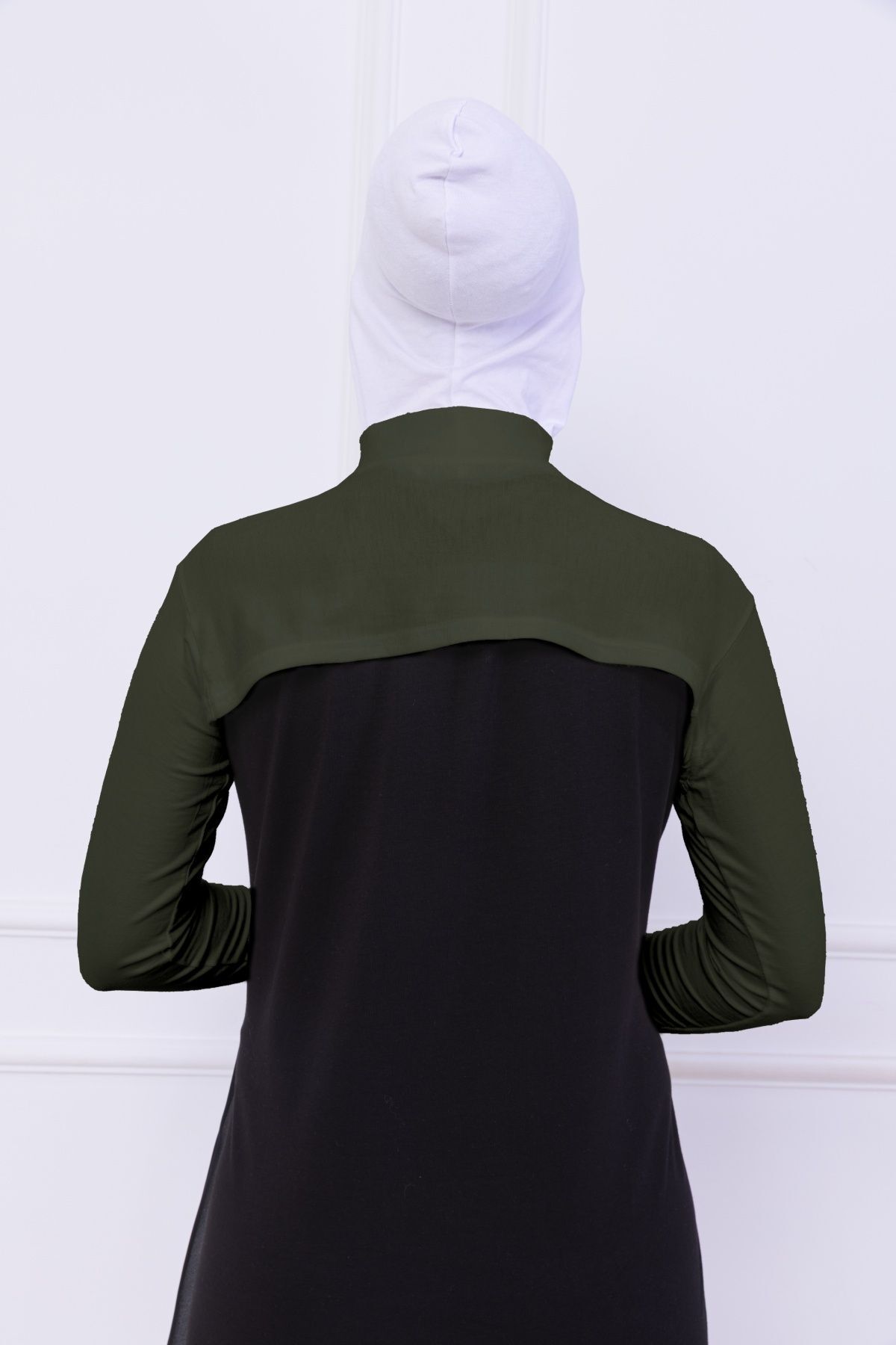 Balıkçı Yaka Boyunluklu Kolluk - Likralı Kadın Body Tesettür Crop Bolero Haki