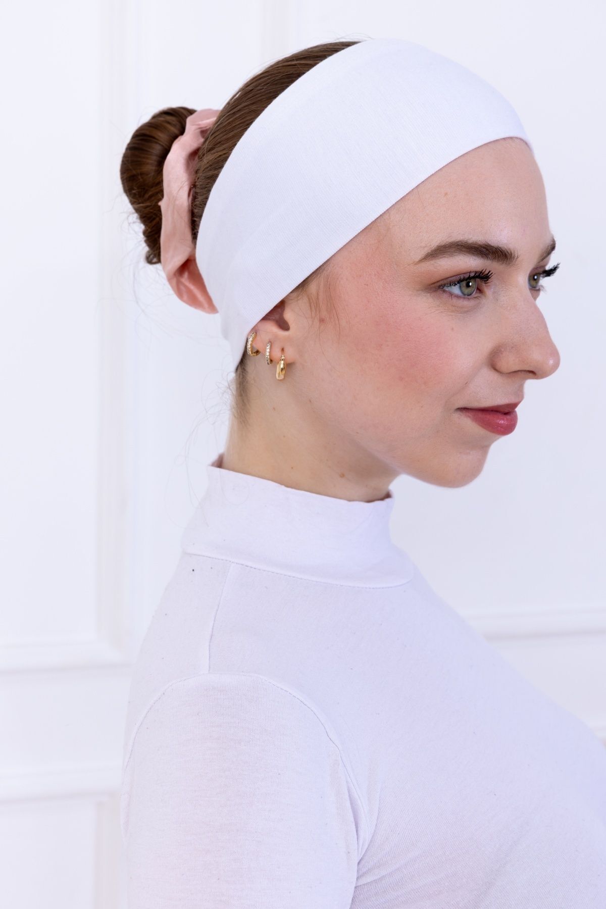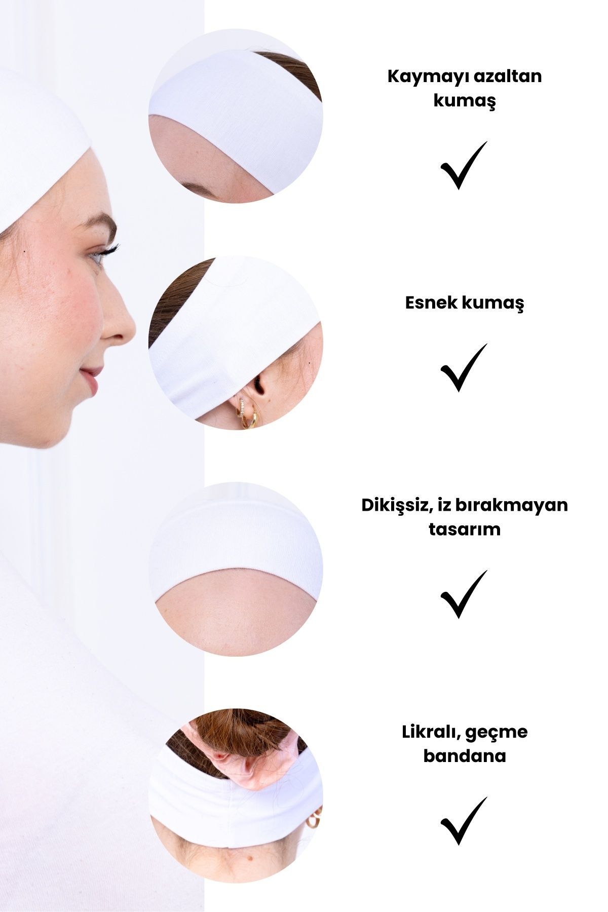 Bandana Şeklinde Bone - Kadın Tesettür Dikişsiz Geçme İç Bone - Sportif Spor Saç Bandı Beyaz