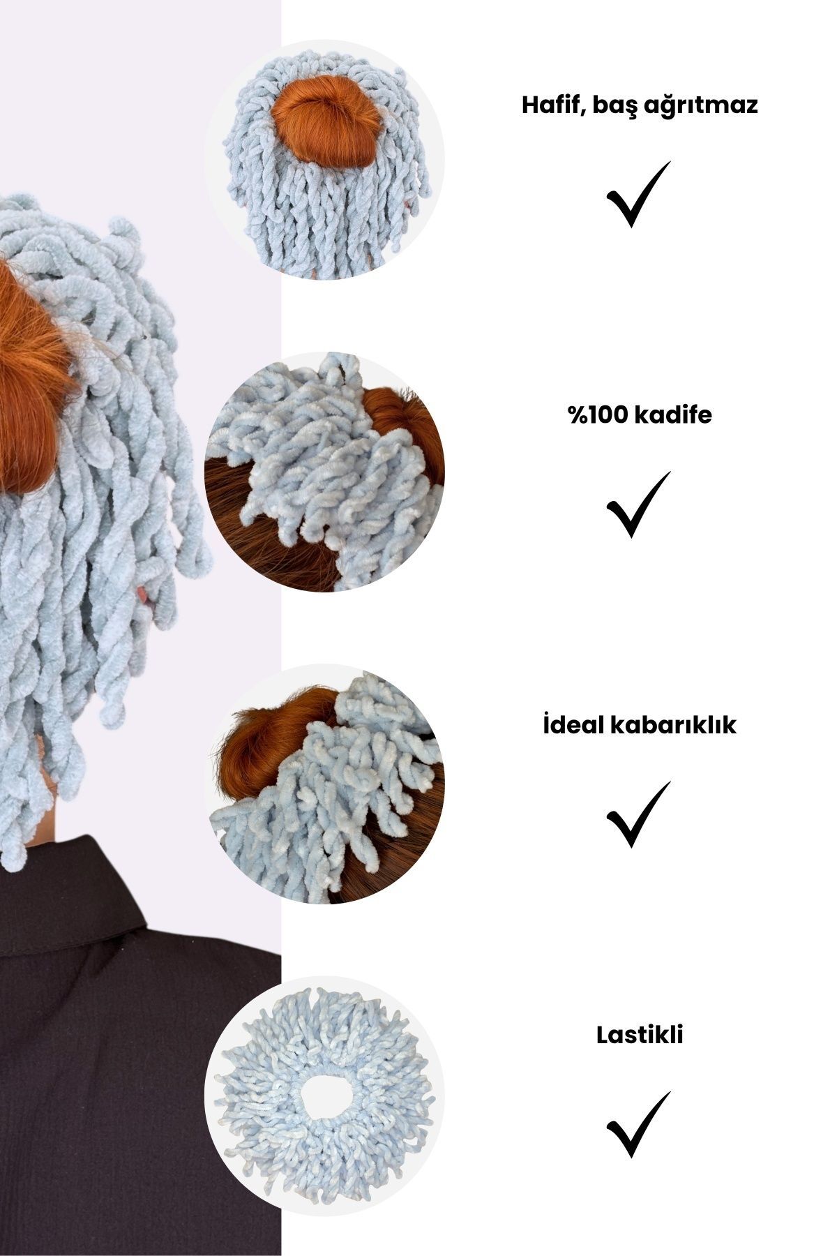 Kadife Topuz Tokası Dolgun Lastikli Tesettür Kadın Aksesuar Toka Bebe Mavasi