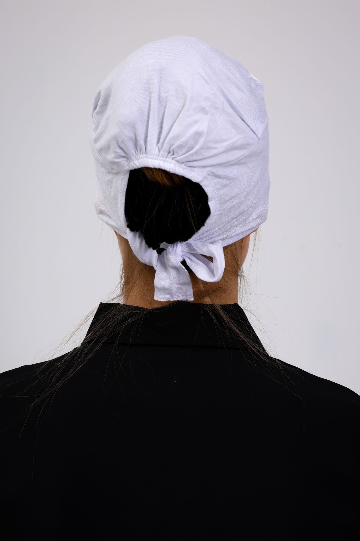 Düz Dikişsiz Penye Bone - Kadın Tesettür Bağlamalı İç Bone Beyaz