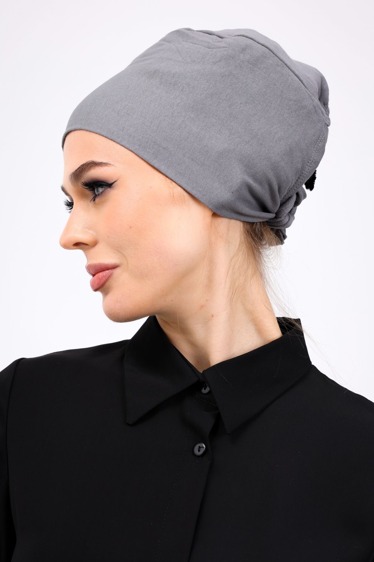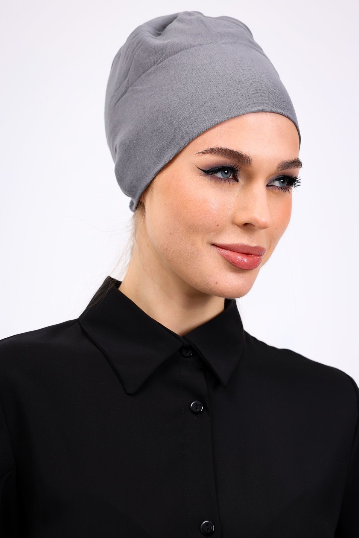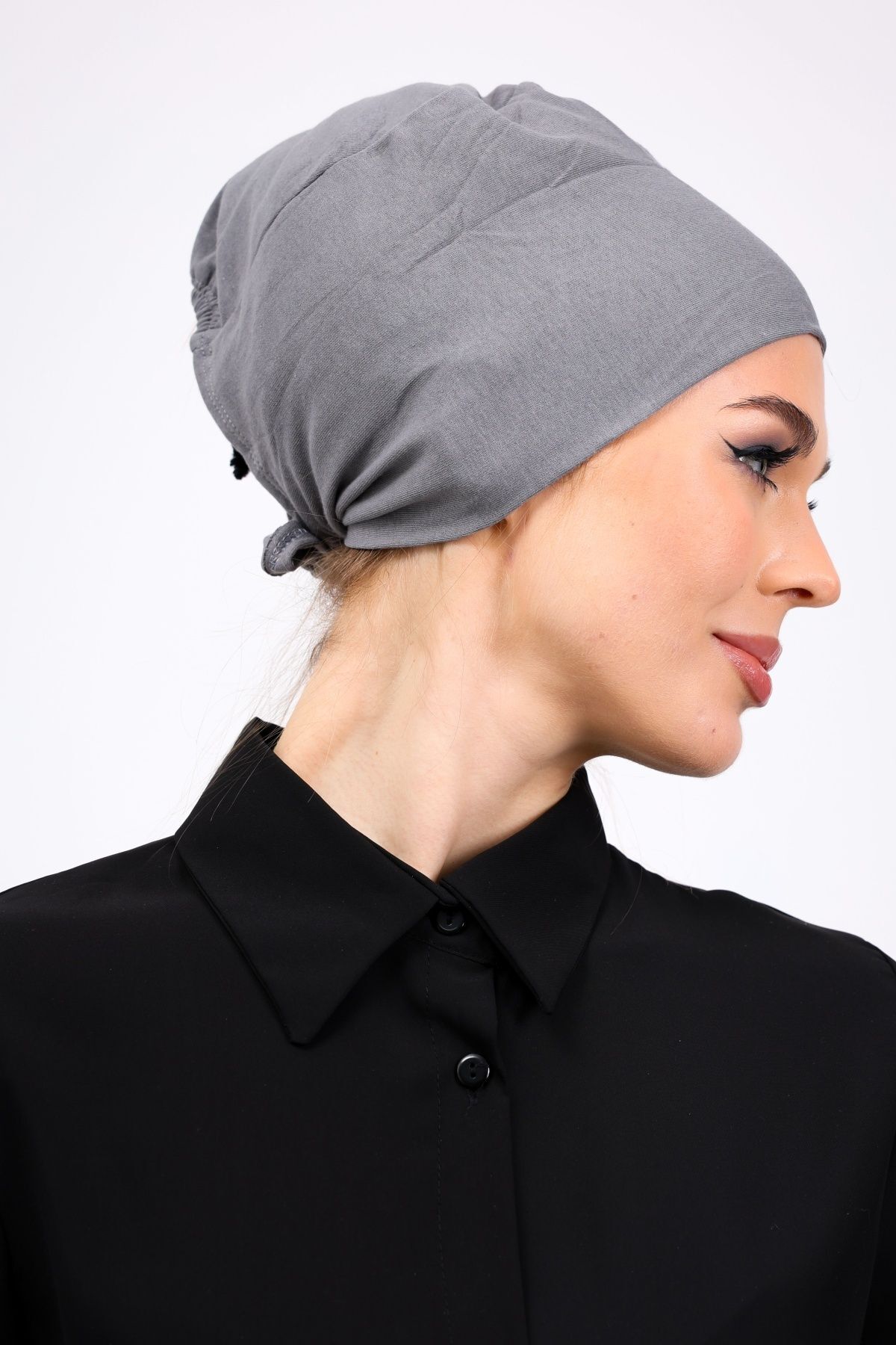 Düz Dikişsiz Penye Bone - Kadın Tesettür Bağlamalı İç Bone Gri