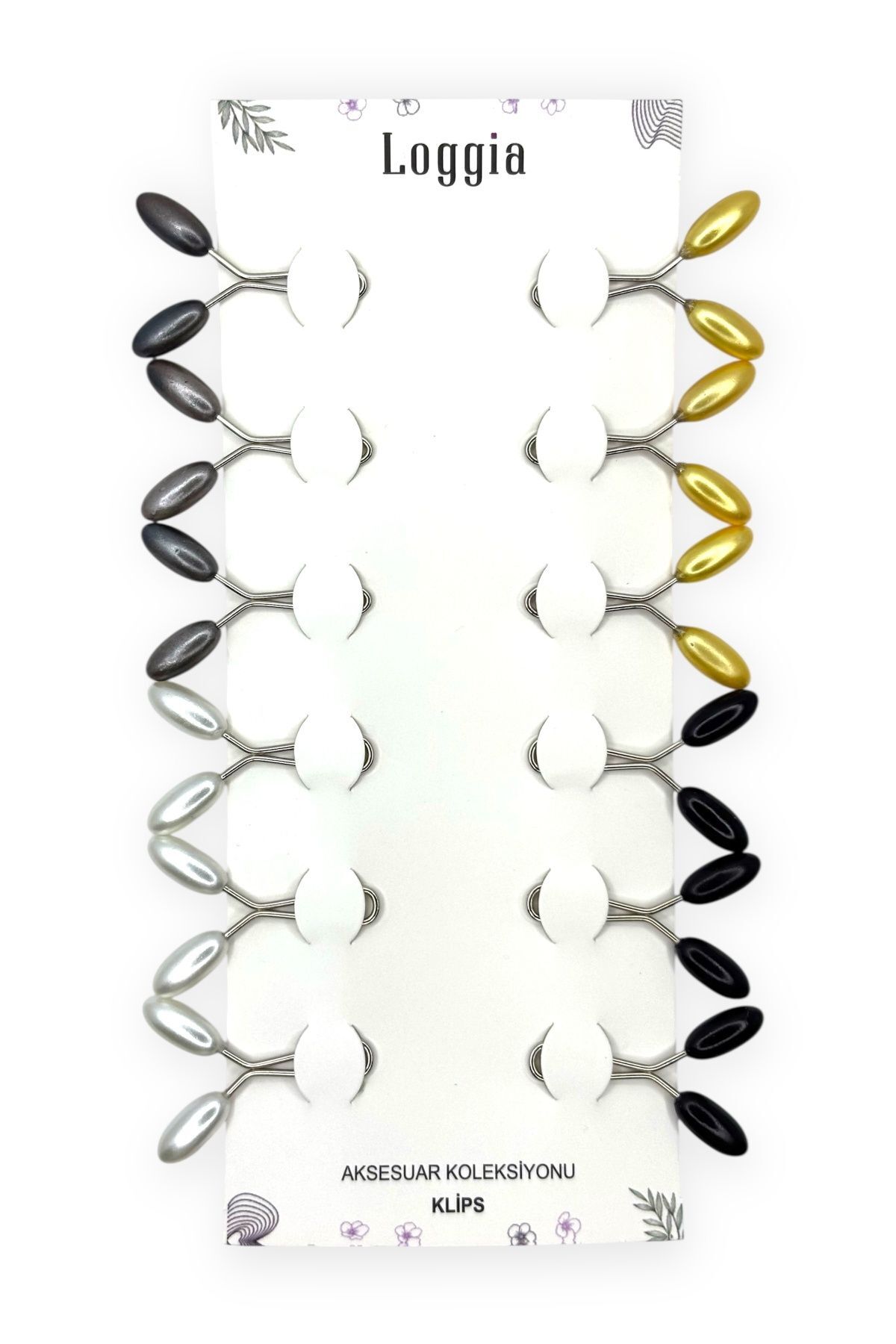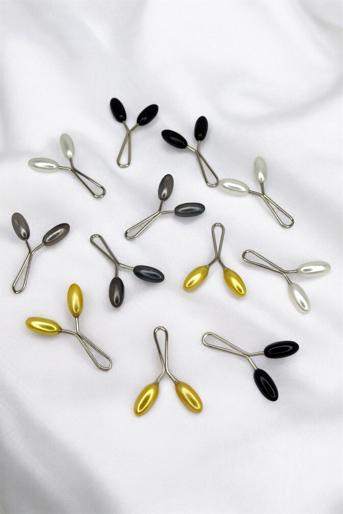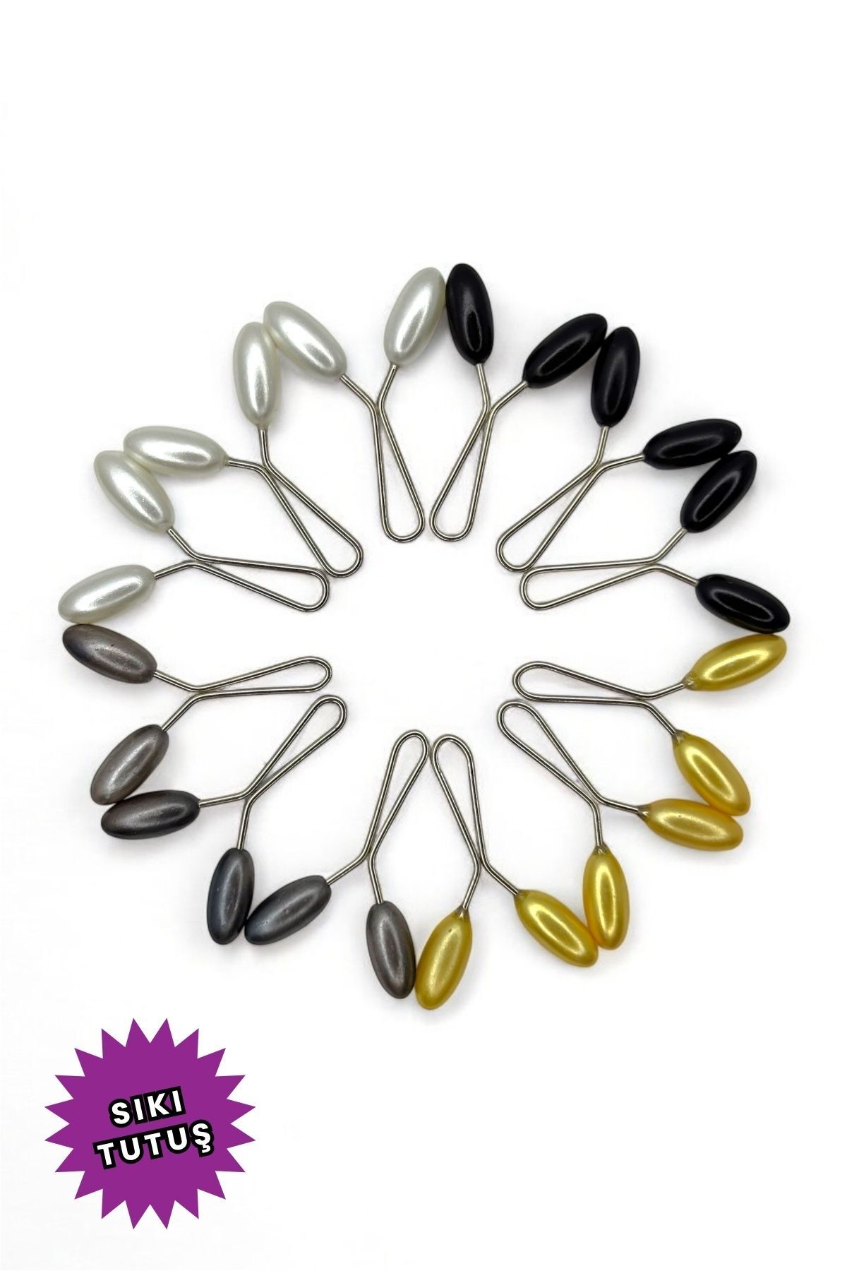 Eşarp Şal Klipsi 12 Adet Arpa Model Klips - Kadın Tesettür Aksesuar İğne Ana Renkler