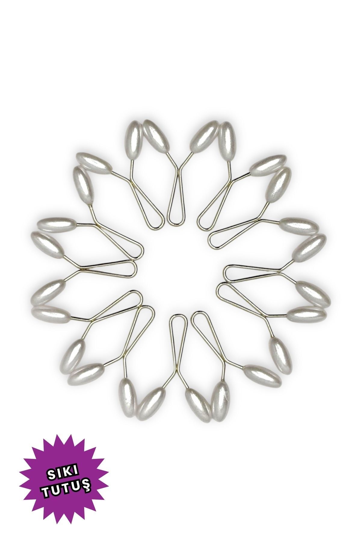 Eşarp Şal Klipsi 12 Adet Arpa Model Klips - Kadın Tesettür Aksesuar İğne Beyaz
