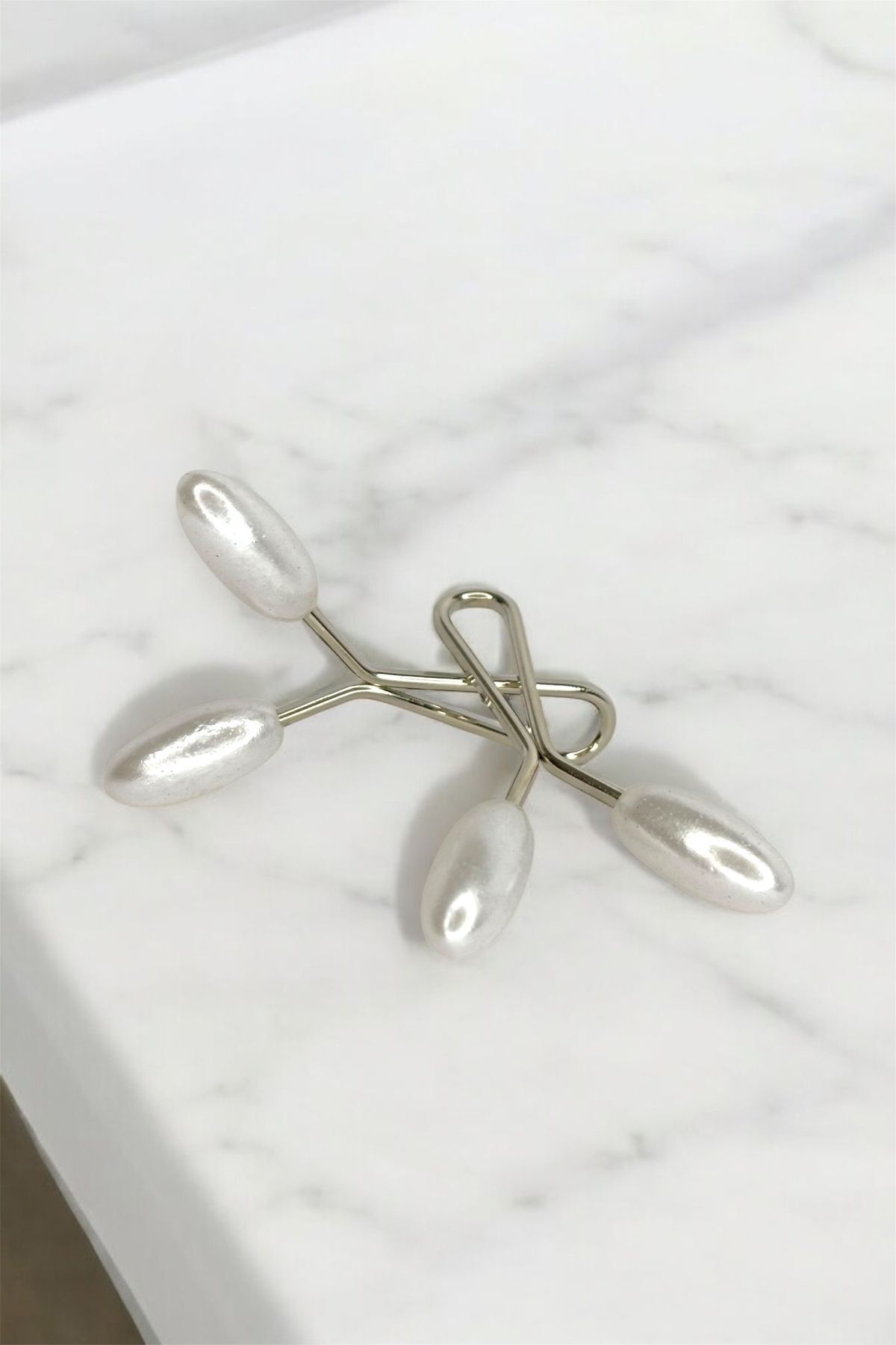 Eşarp Şal Klipsi 1 Adet - Kadın Tesettür Aksesuar Beyaz Arpa
