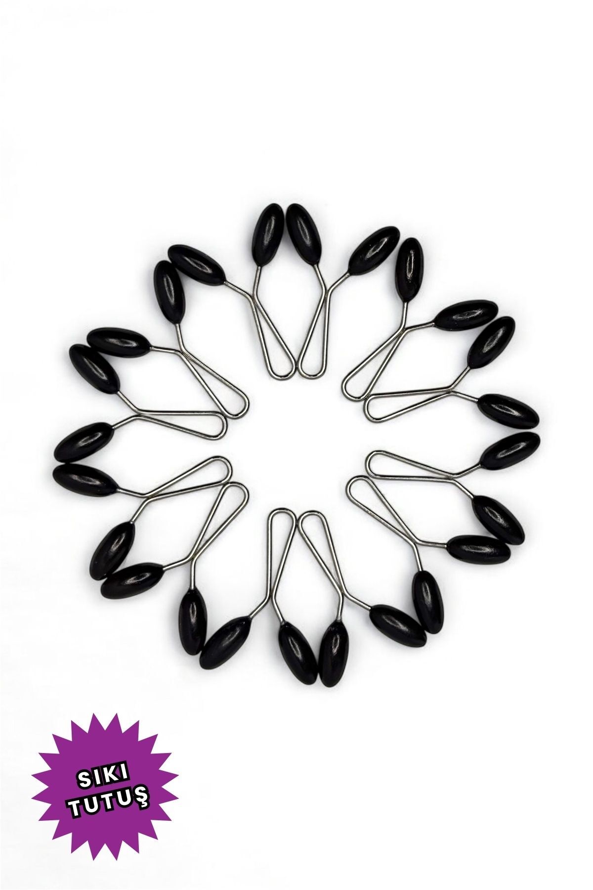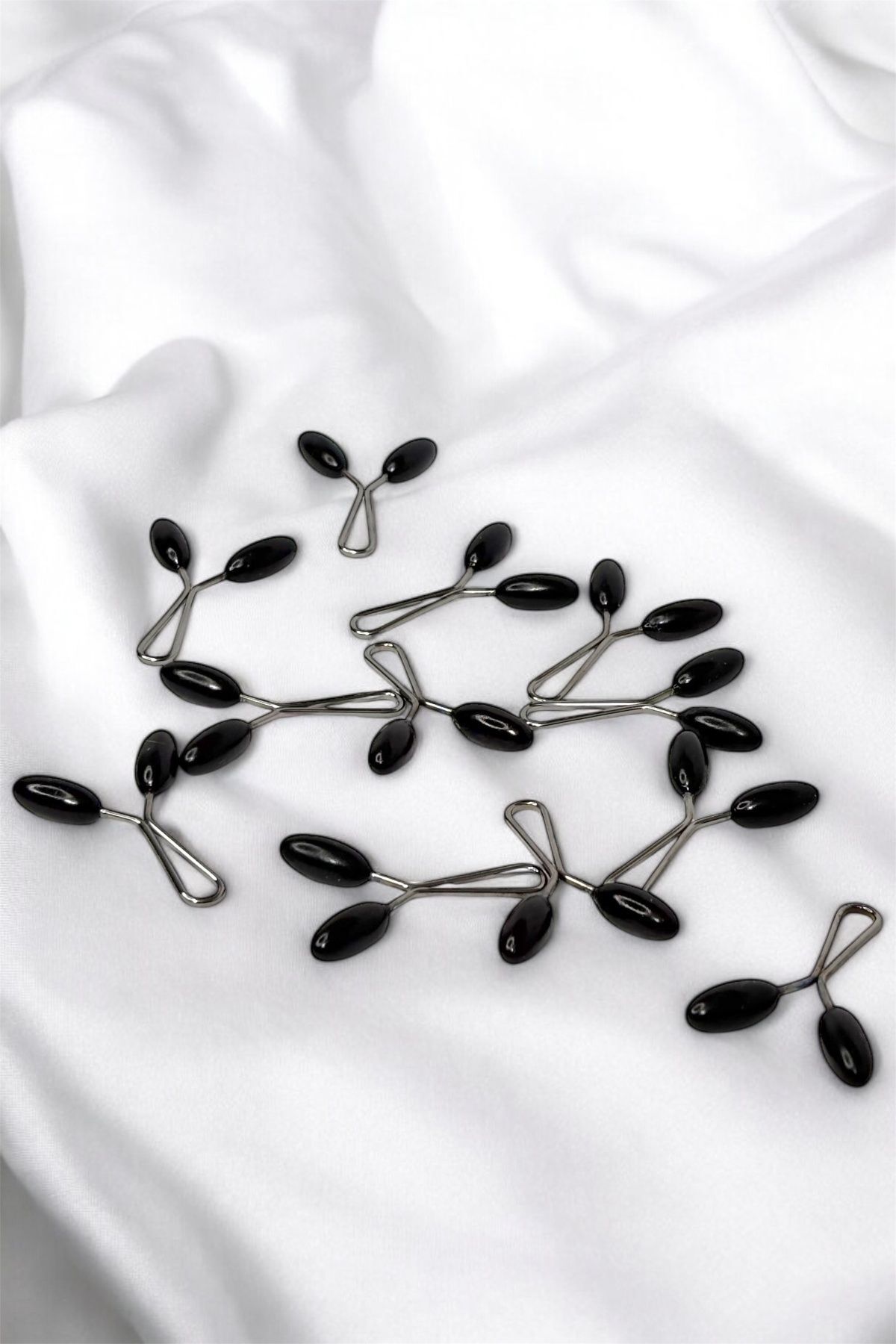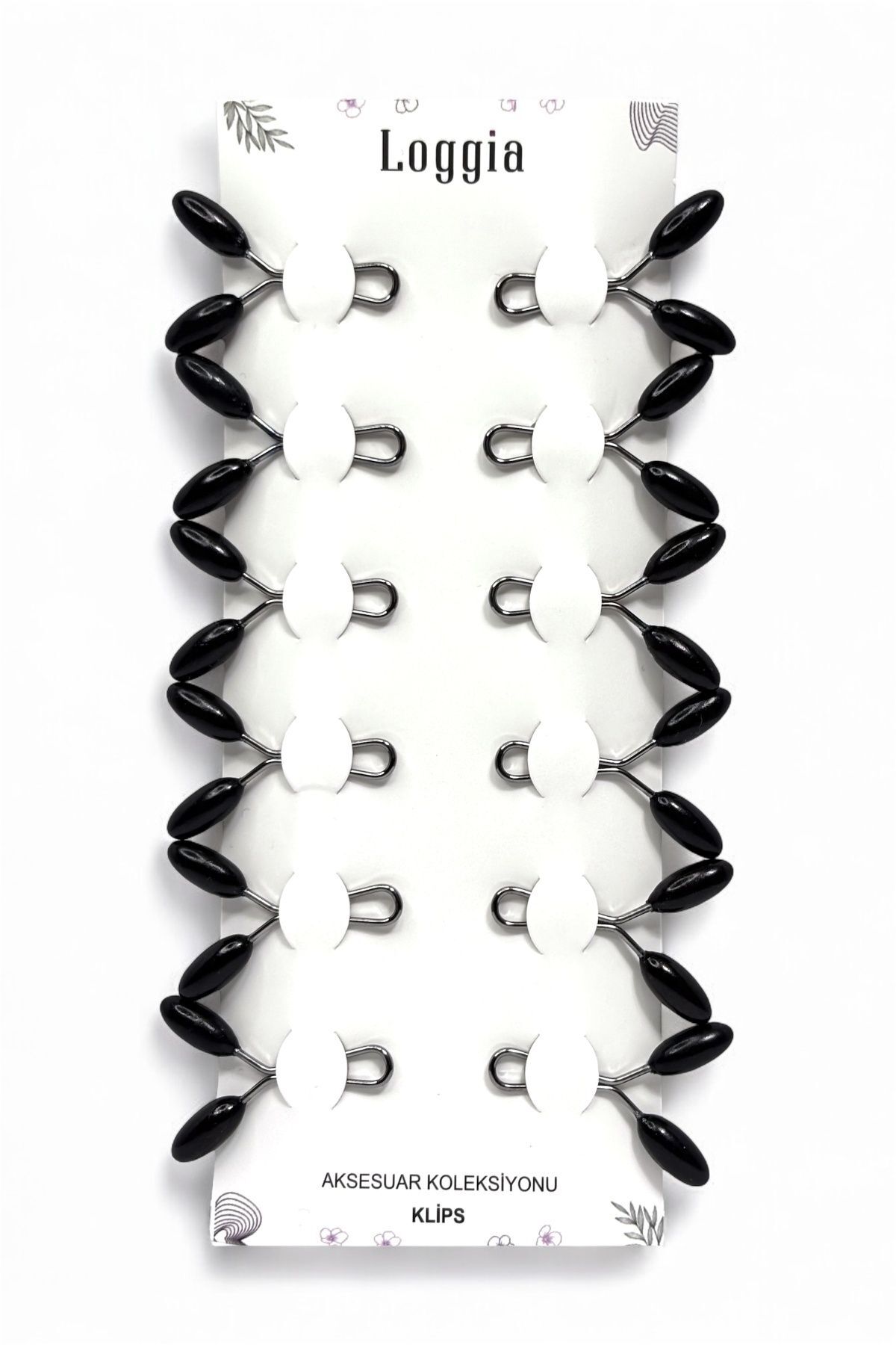 Eşarp Şal Klipsi 12 Adet Arpa Model Klips - Kadın Tesettür Aksesuar İğne Siyah