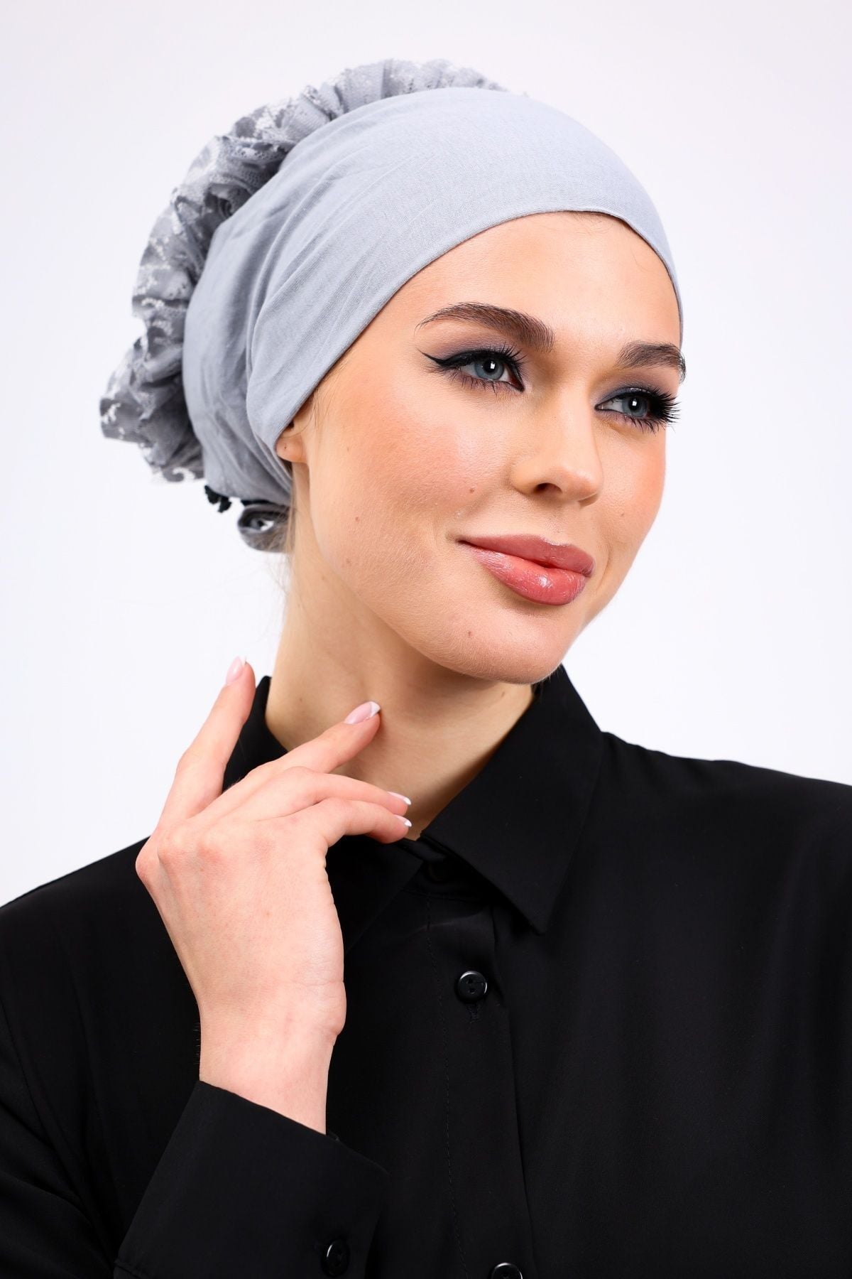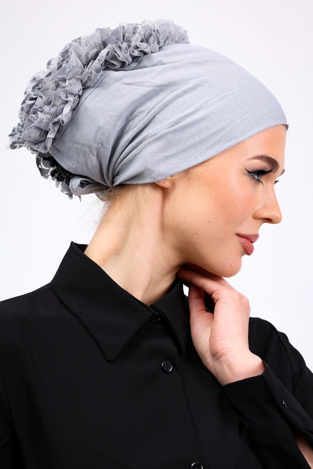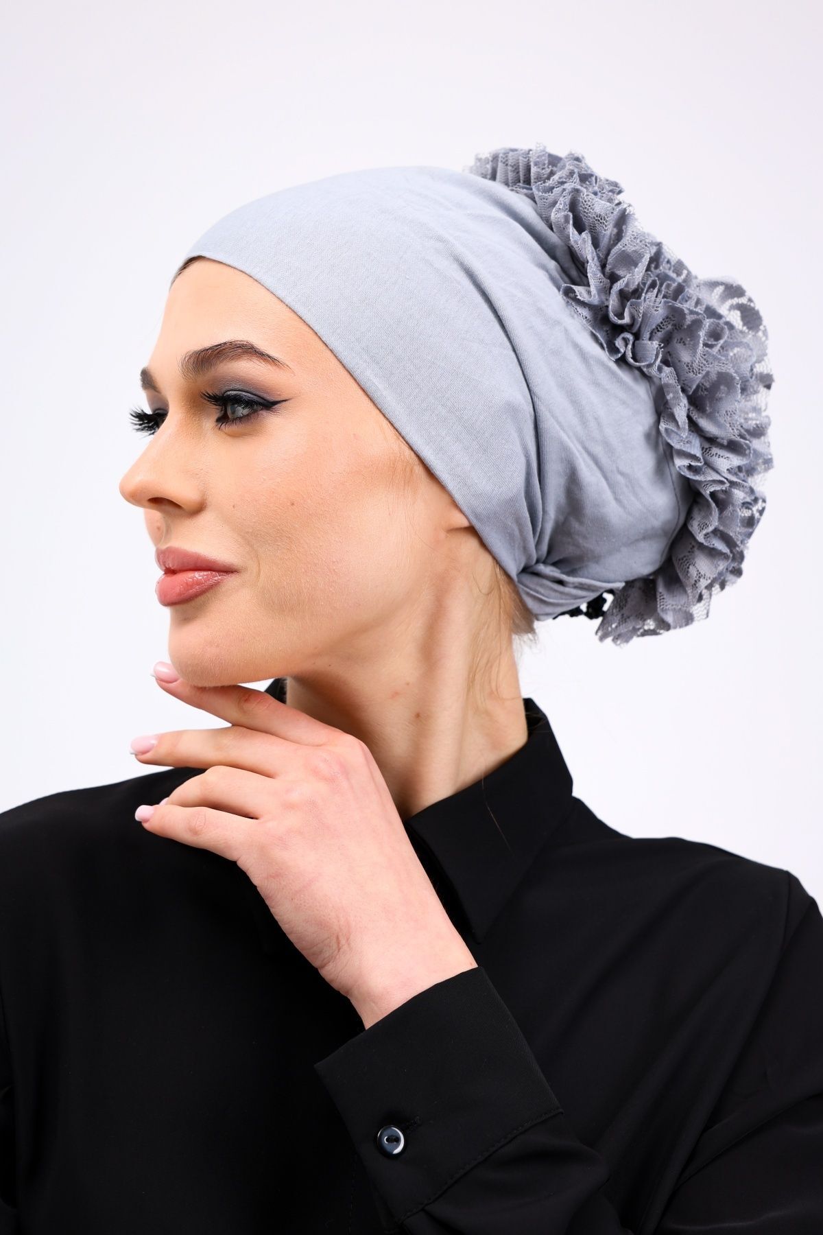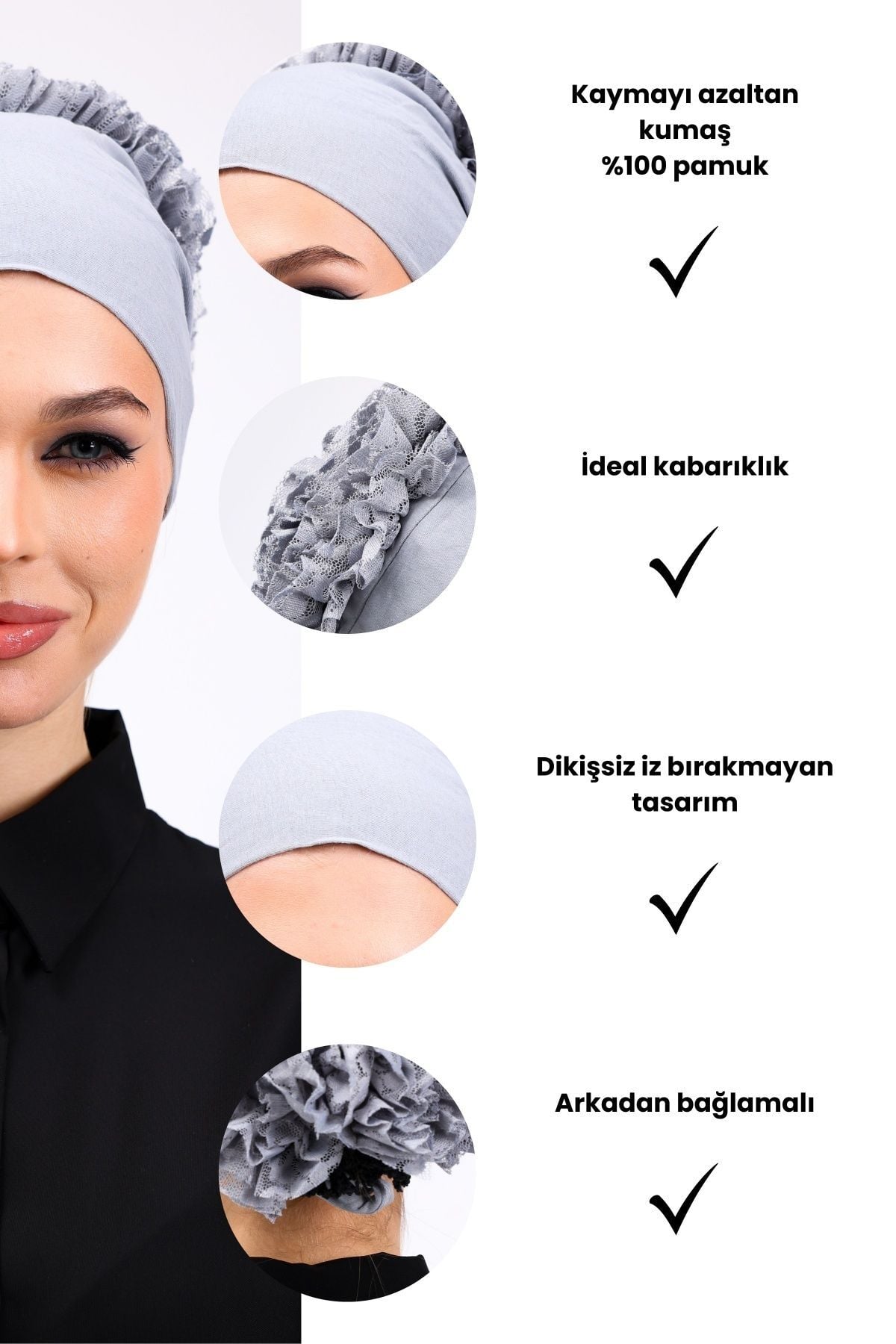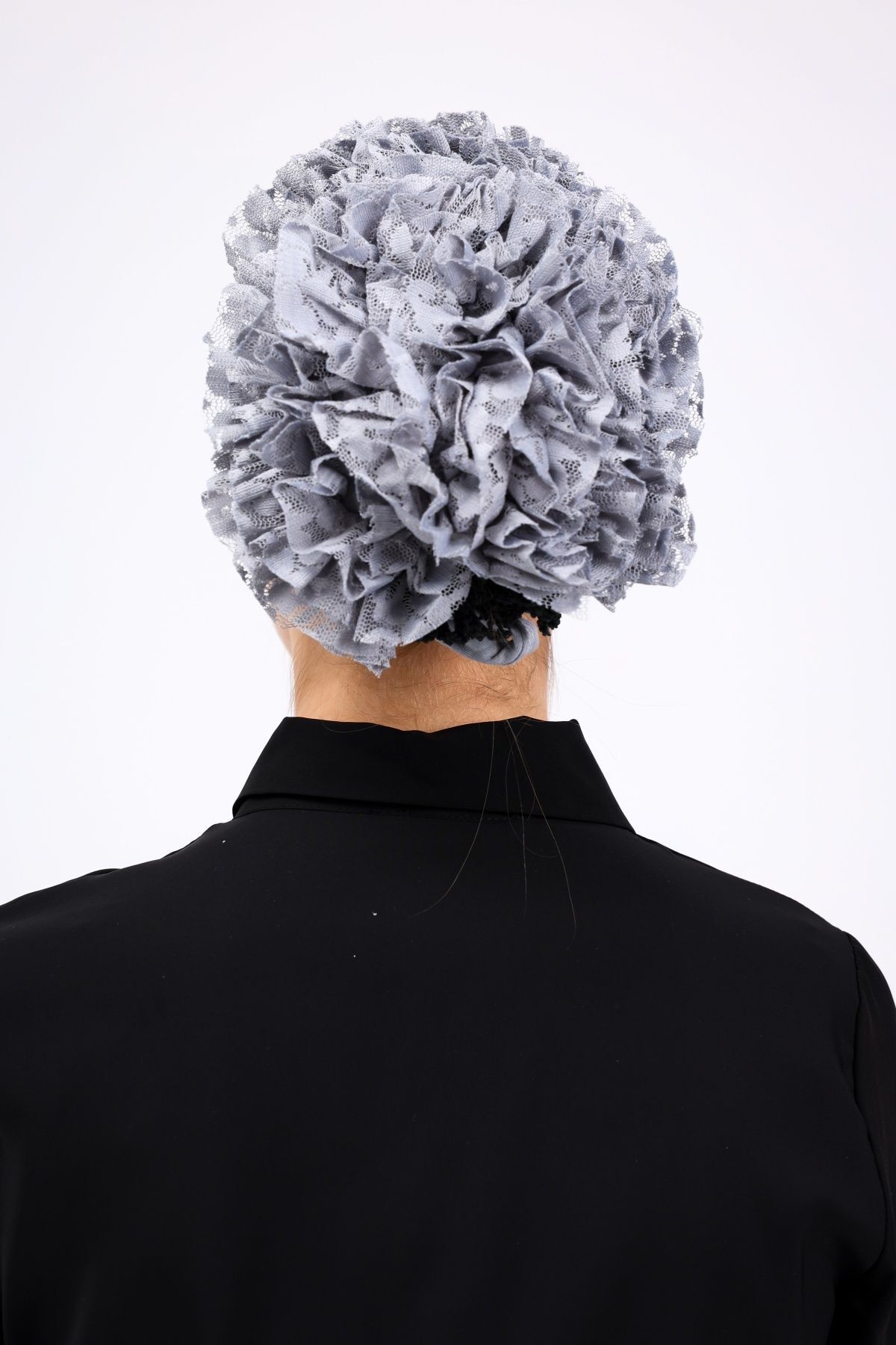 Fırfırlı Dikişsiz Penye Bone - Kadın Tesettür Bağlamalı Topuz İç Bone Açık Gri