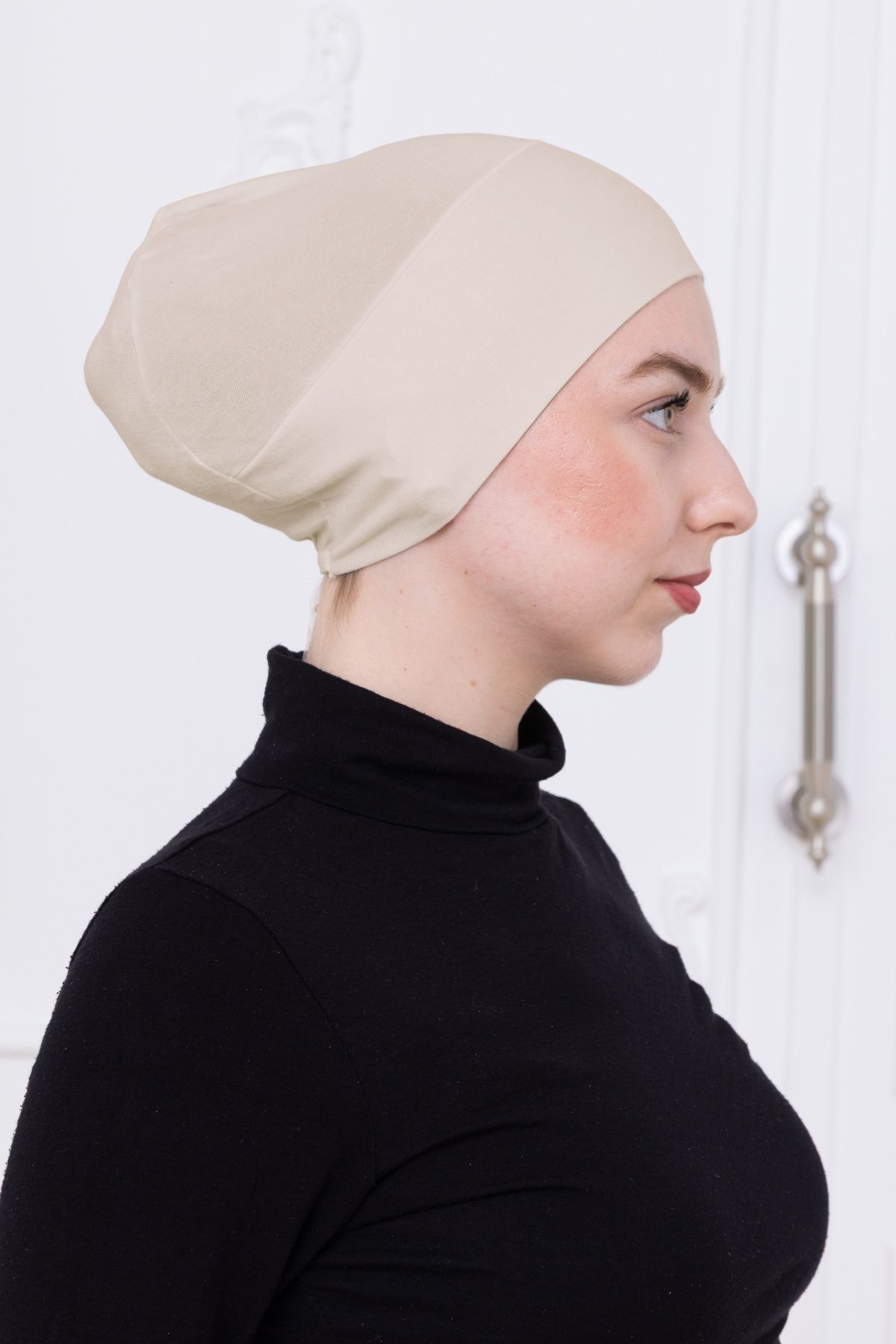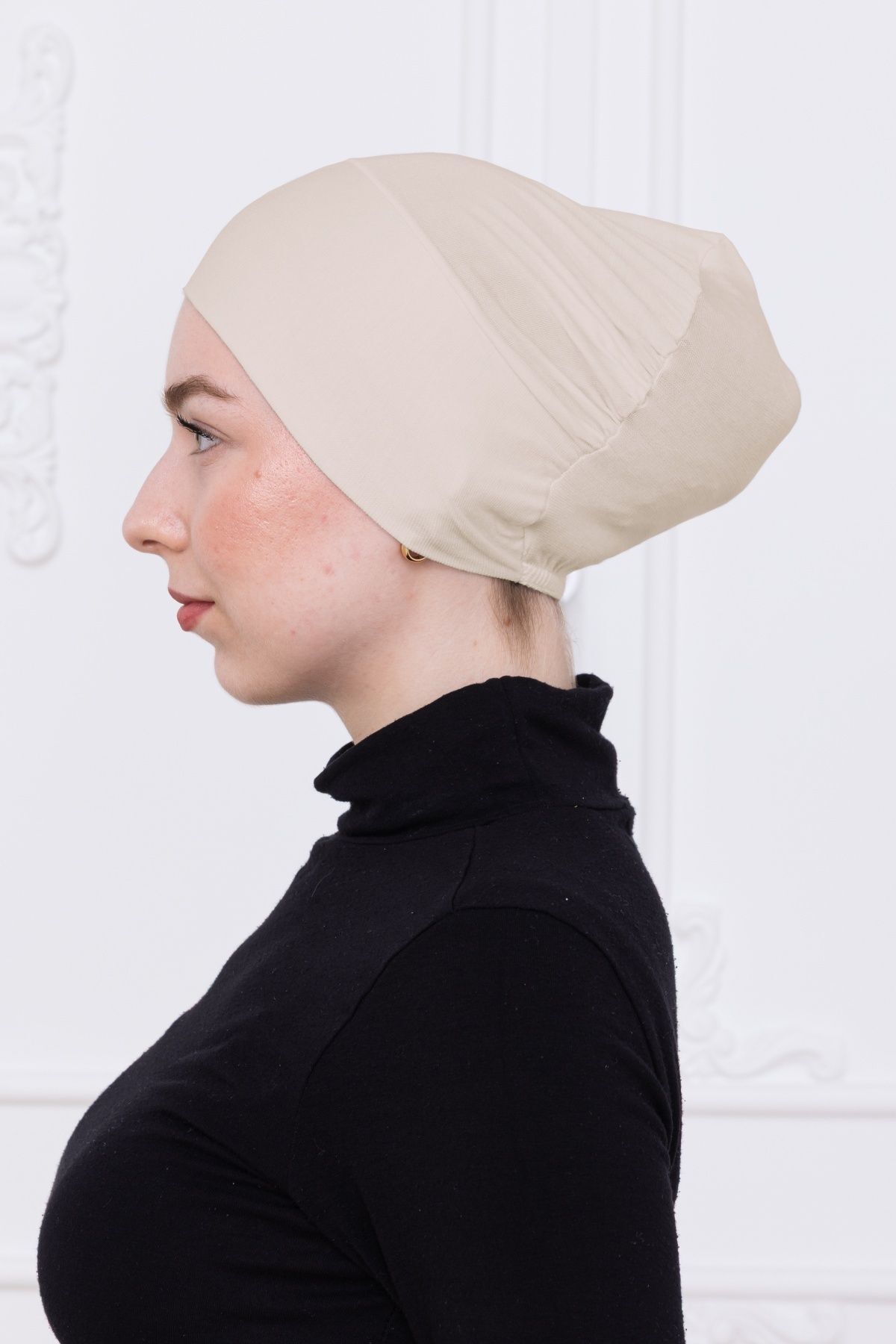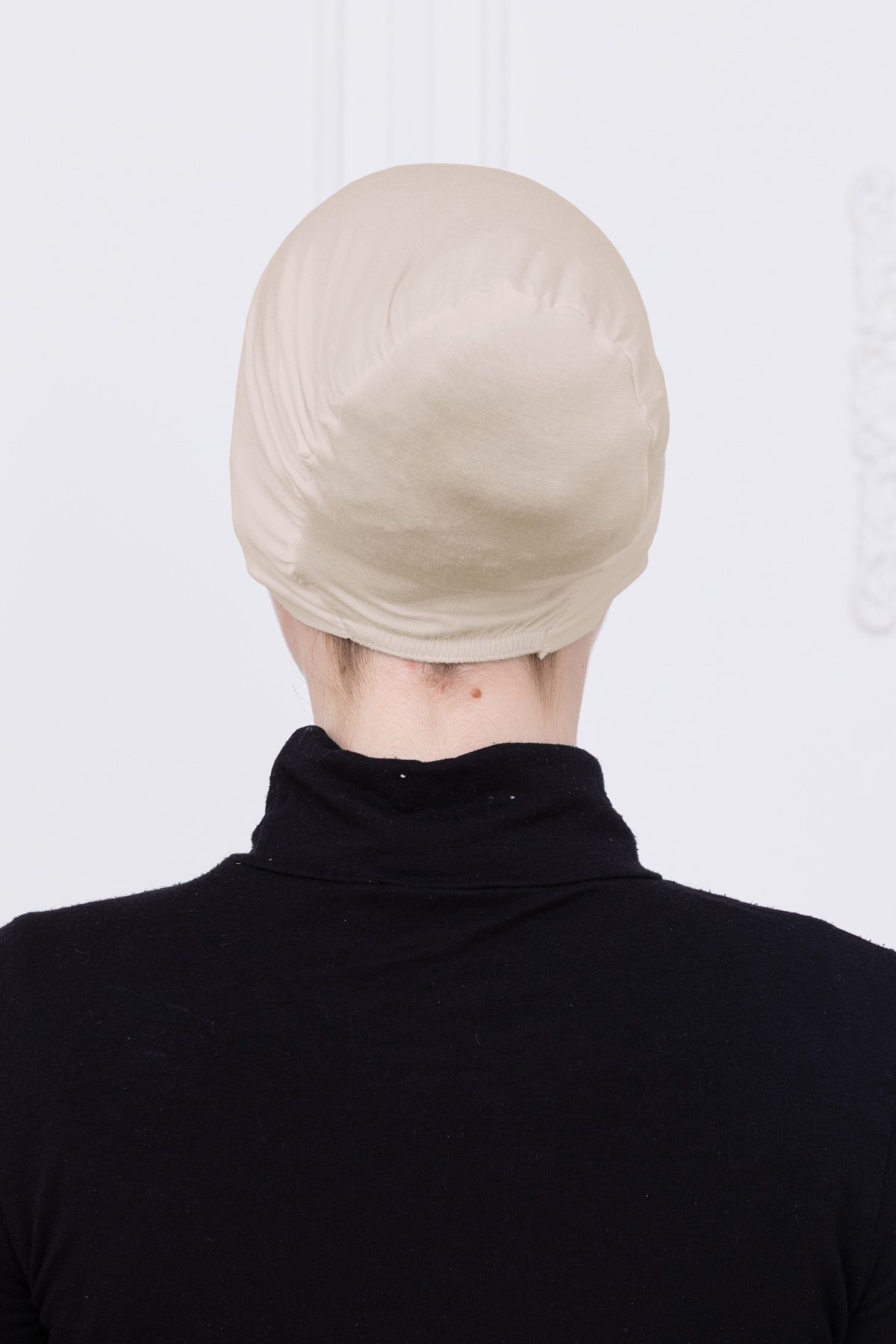 Geçmeli Bone Önü Dikişsiz Kaymaz Lastikli Kadın Tesettür Pratik Geçme İç Bone Bej