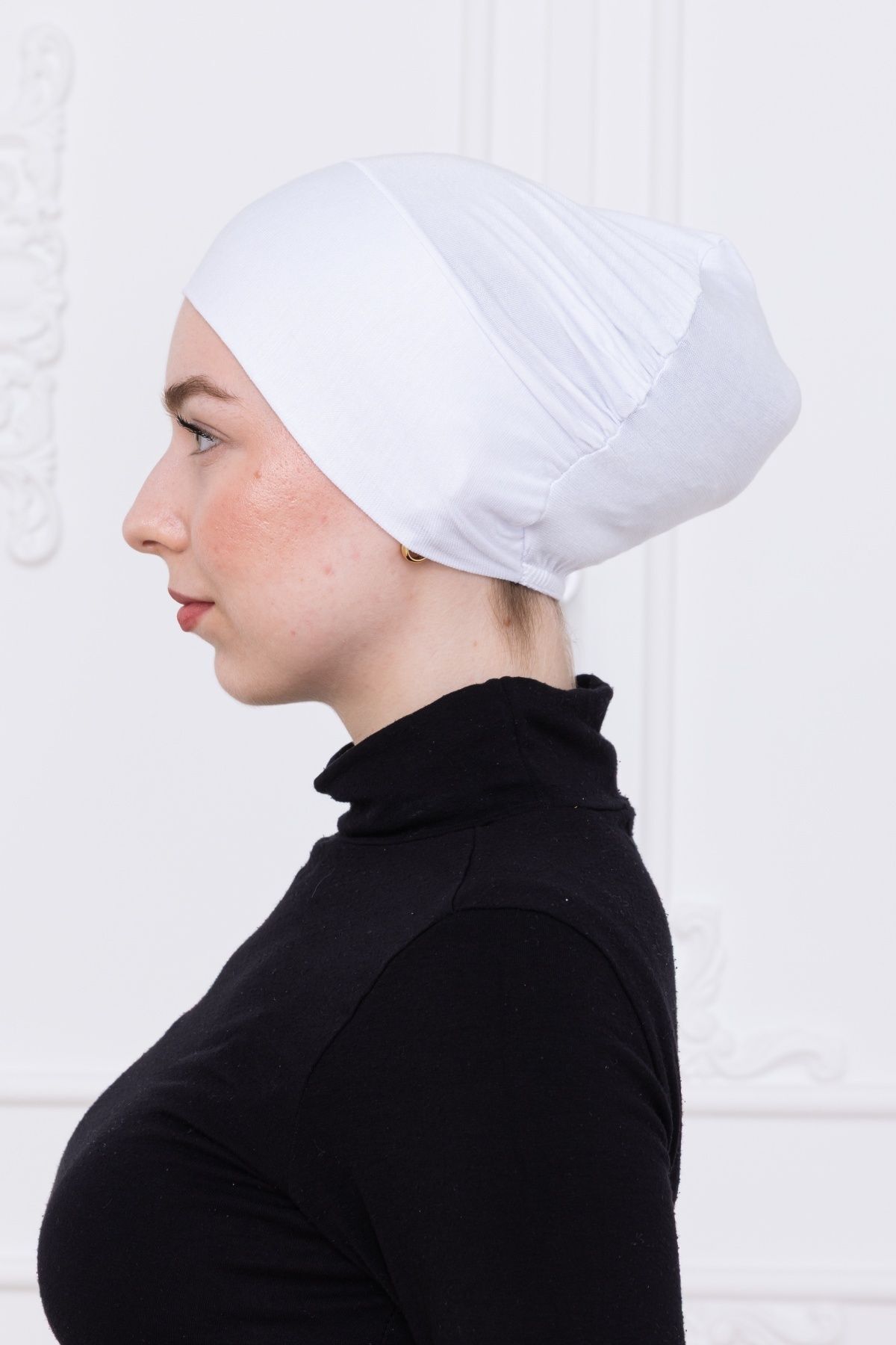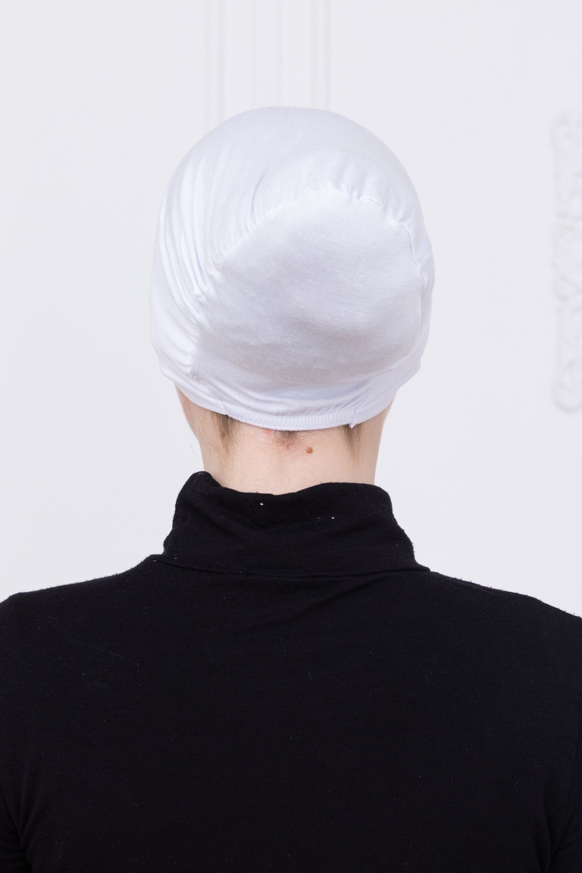 Geçmeli Bone Önü Dikişsiz Kaymaz Lastikli Kadın Tesettür Pratik Geçme İç Bone Beyaz