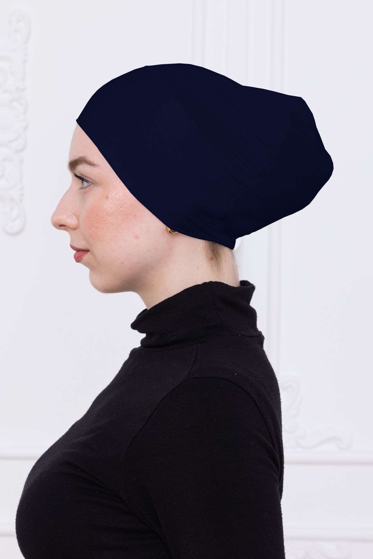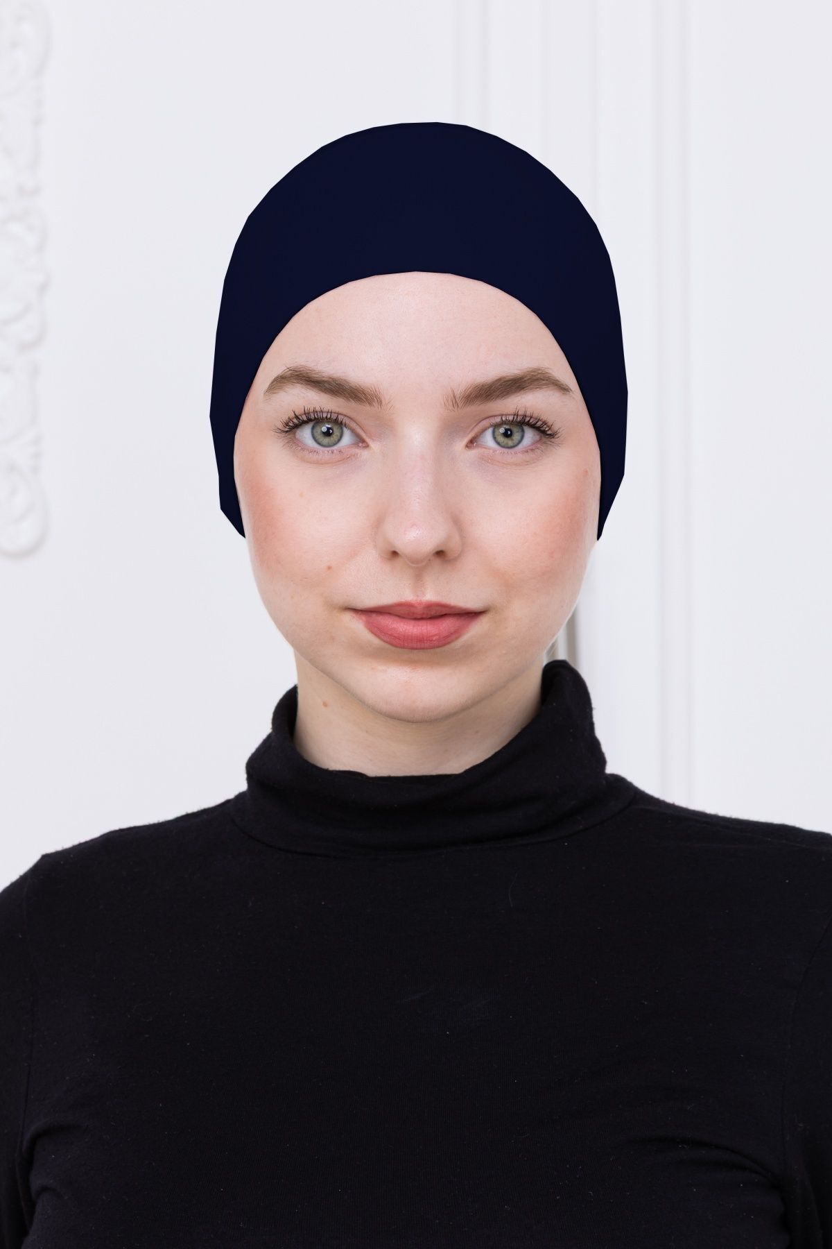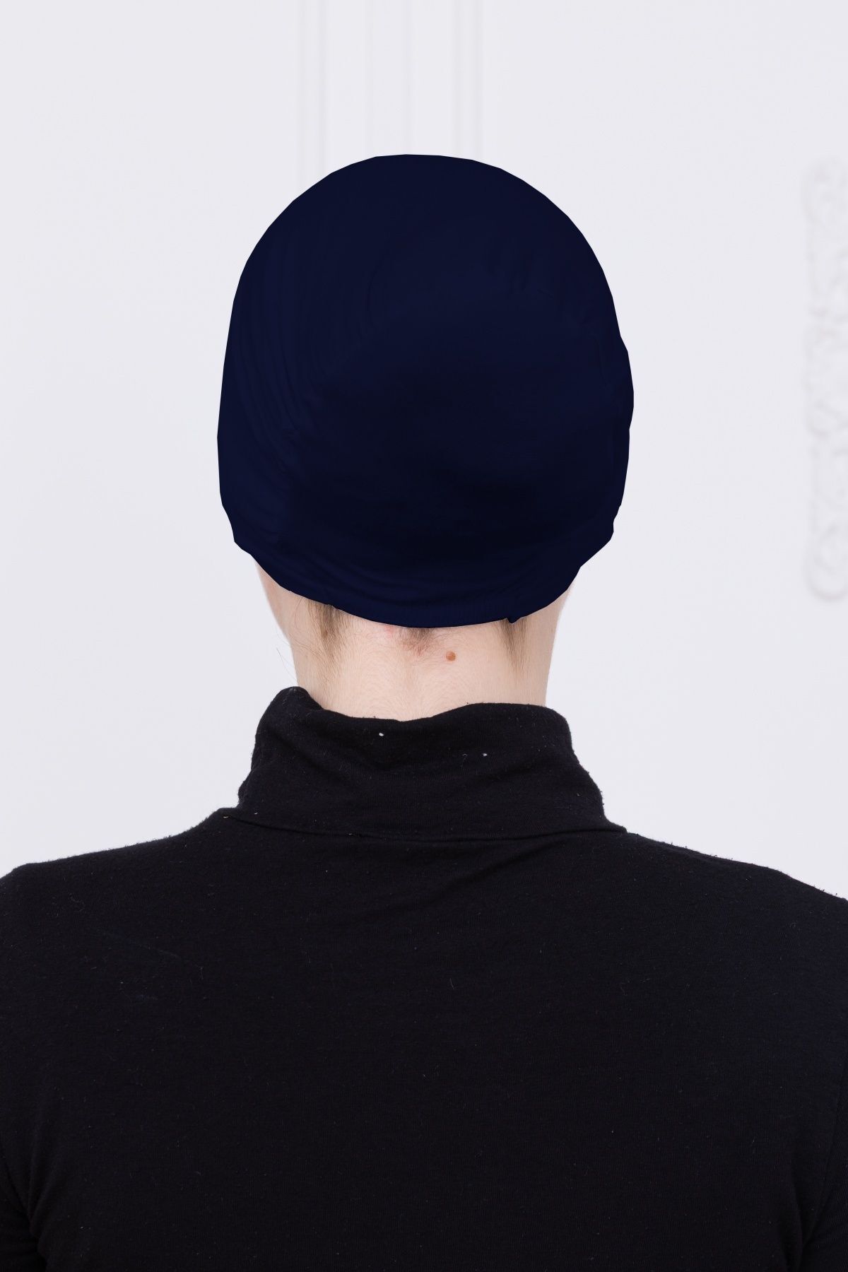 Geçmeli Bone Önü Dikişsiz Kaymaz Lastikli Kadın Tesettür Pratik Geçme İç Bone Lacivert