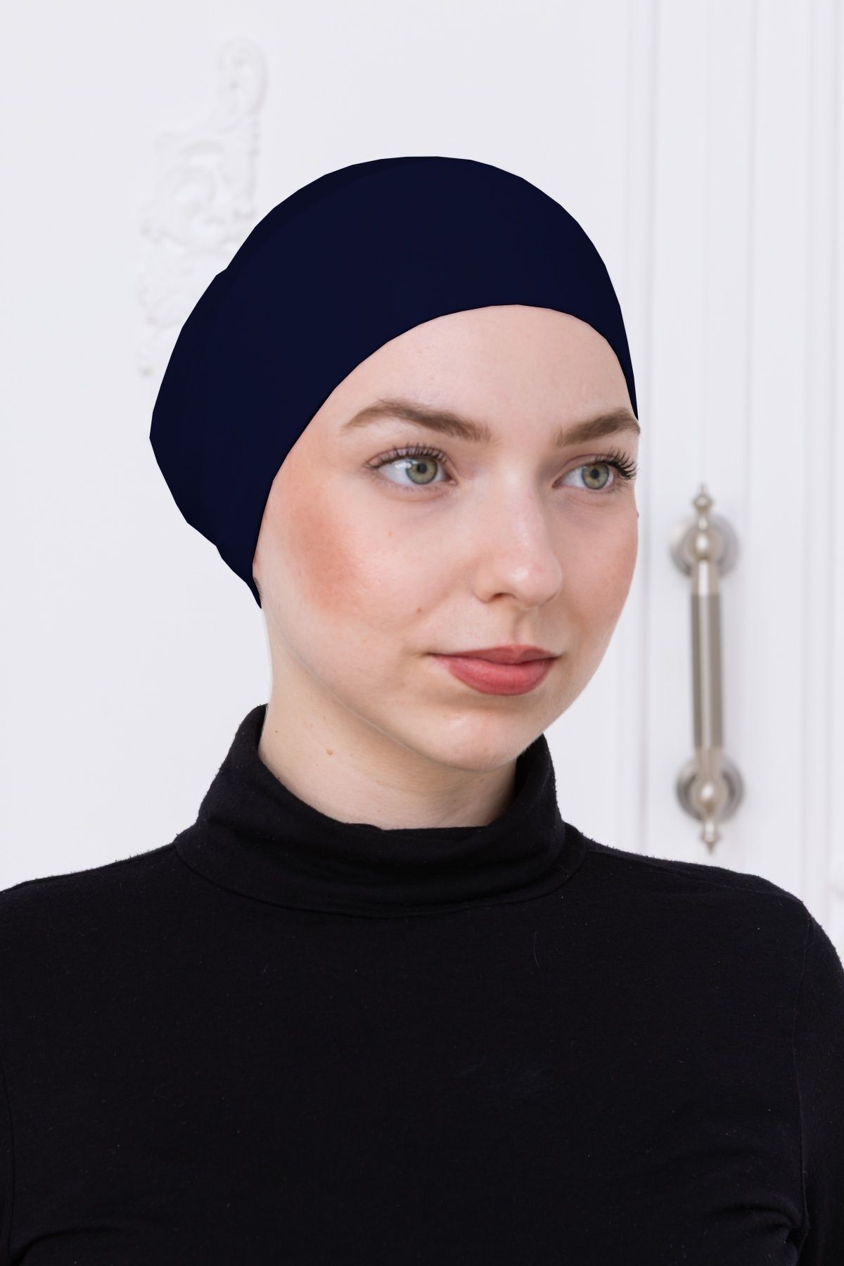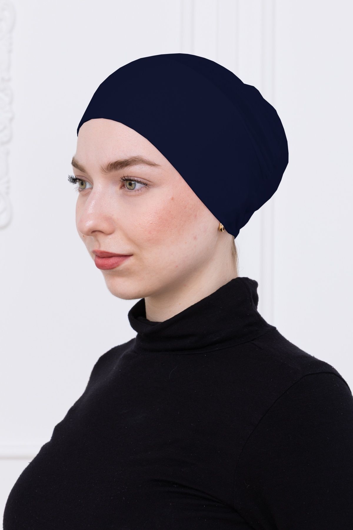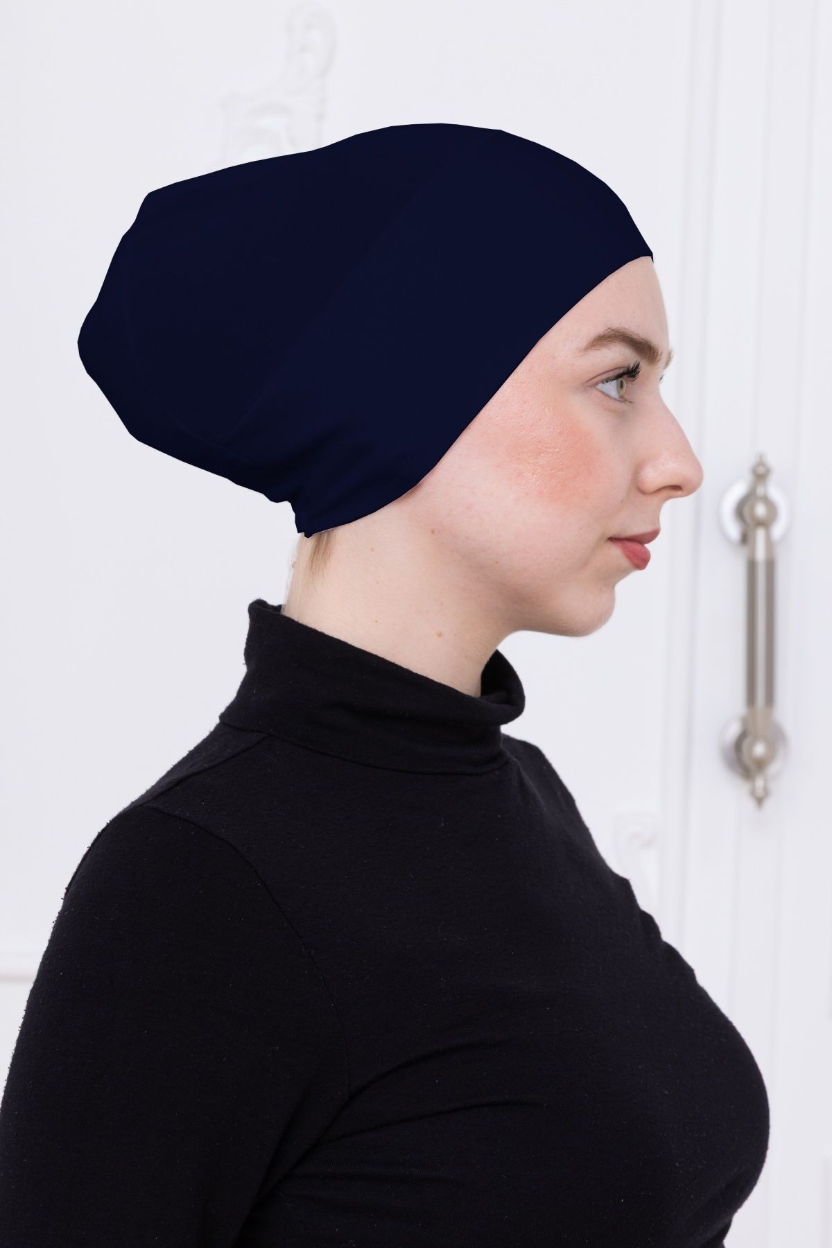 Geçmeli Bone Önü Dikişsiz Kaymaz Lastikli Kadın Tesettür Pratik Geçme İç Bone Lacivert
