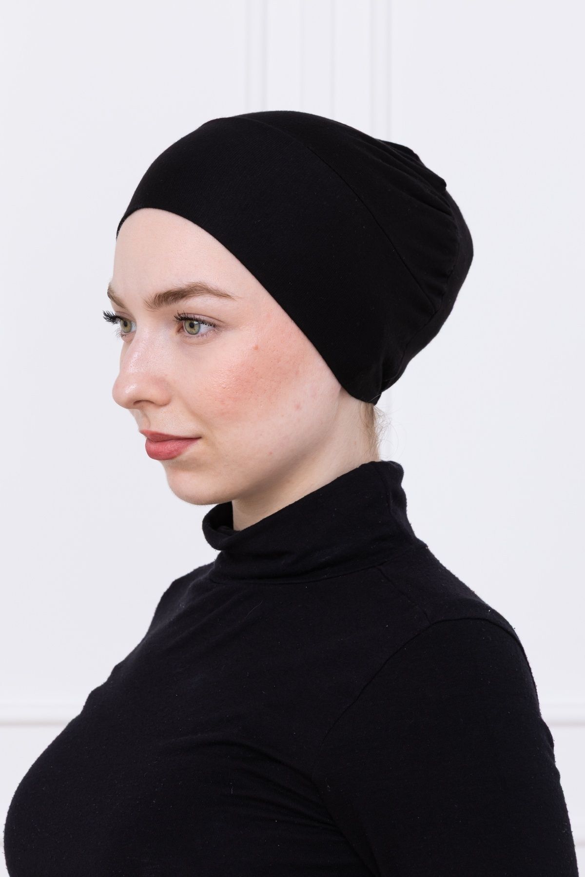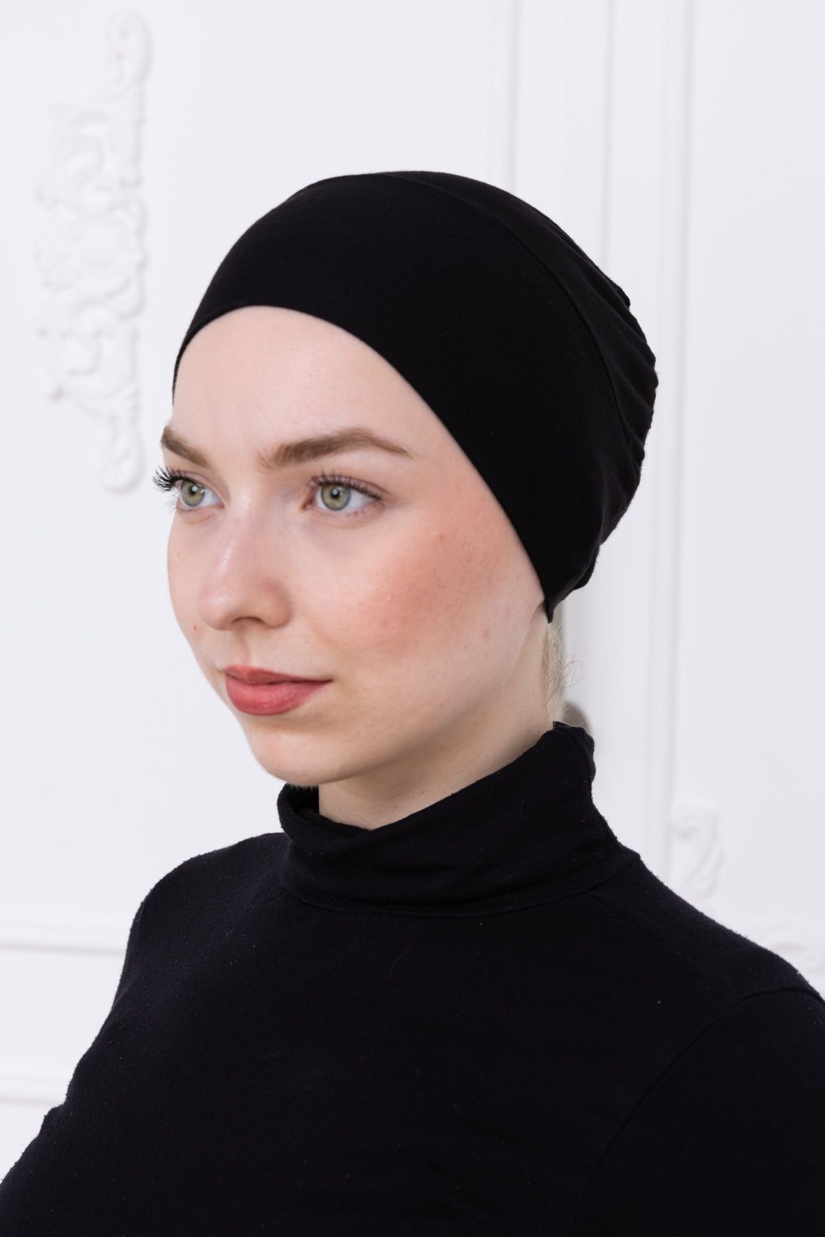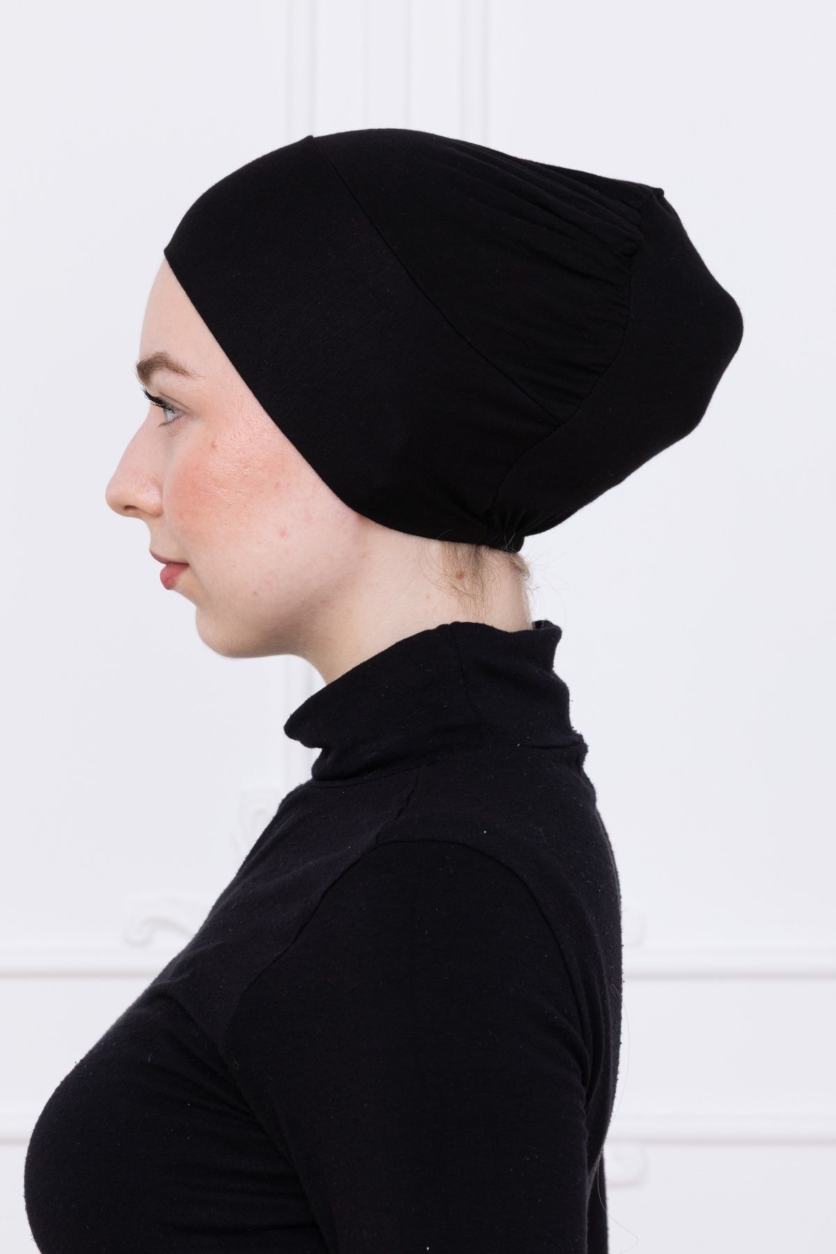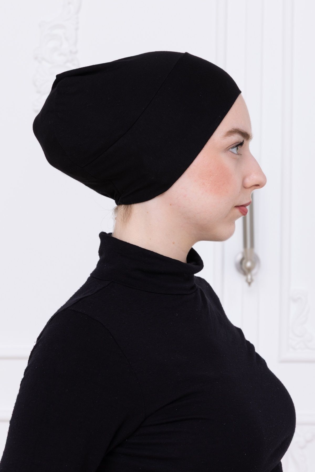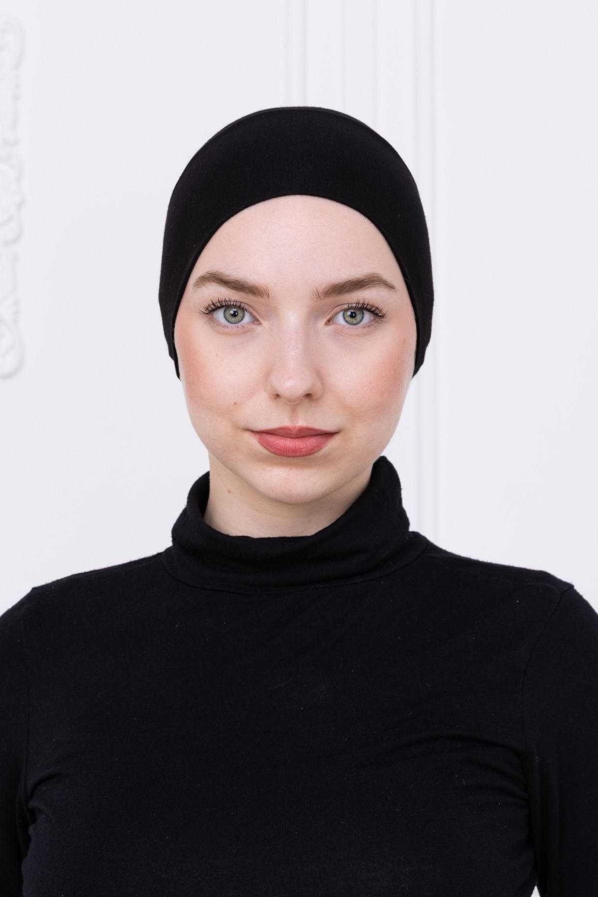 Geçmeli Bone Önü Dikişsiz Kaymaz Lastikli Kadın Tesettür Pratik Geçme İç Bone Siyah