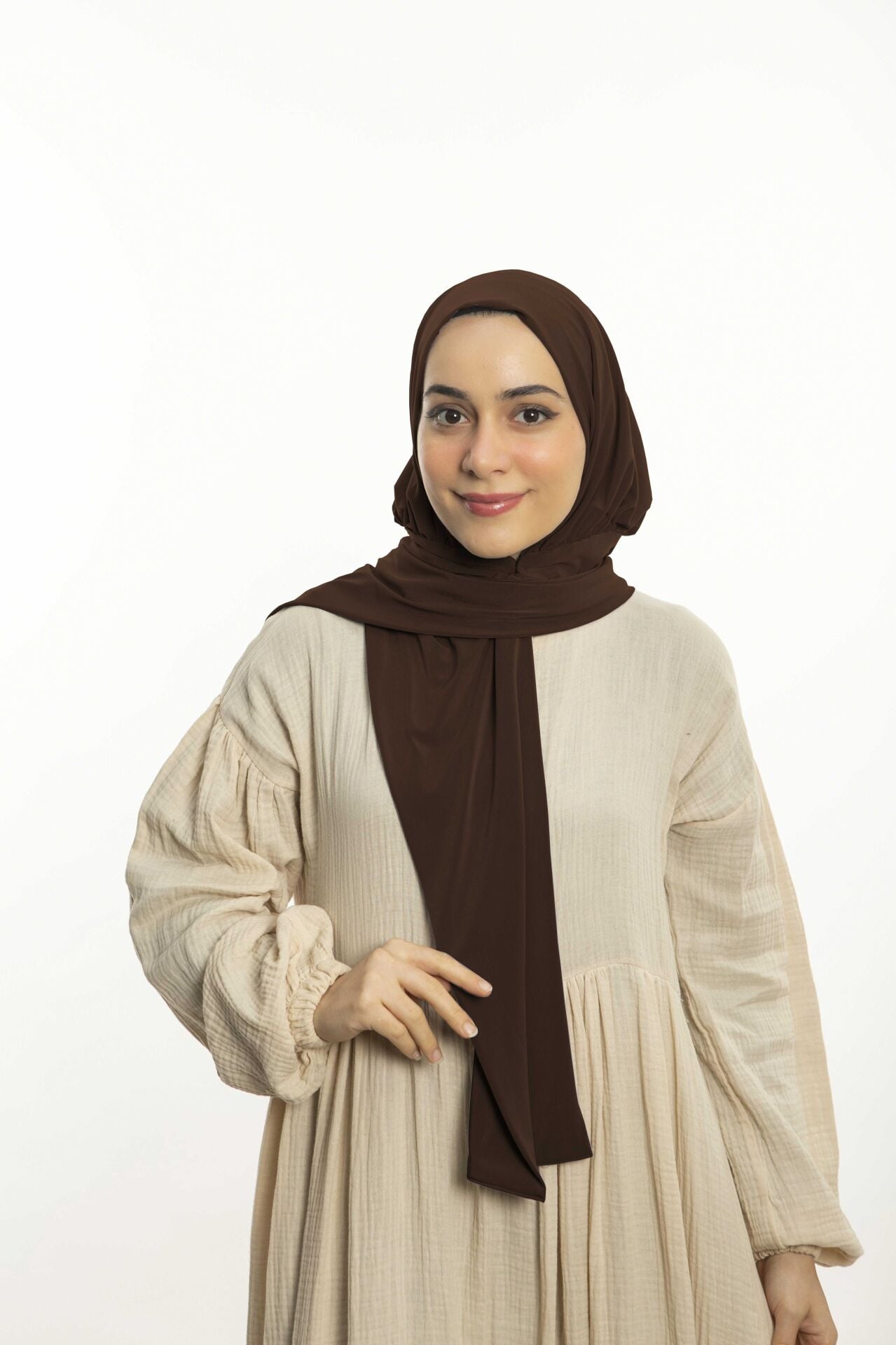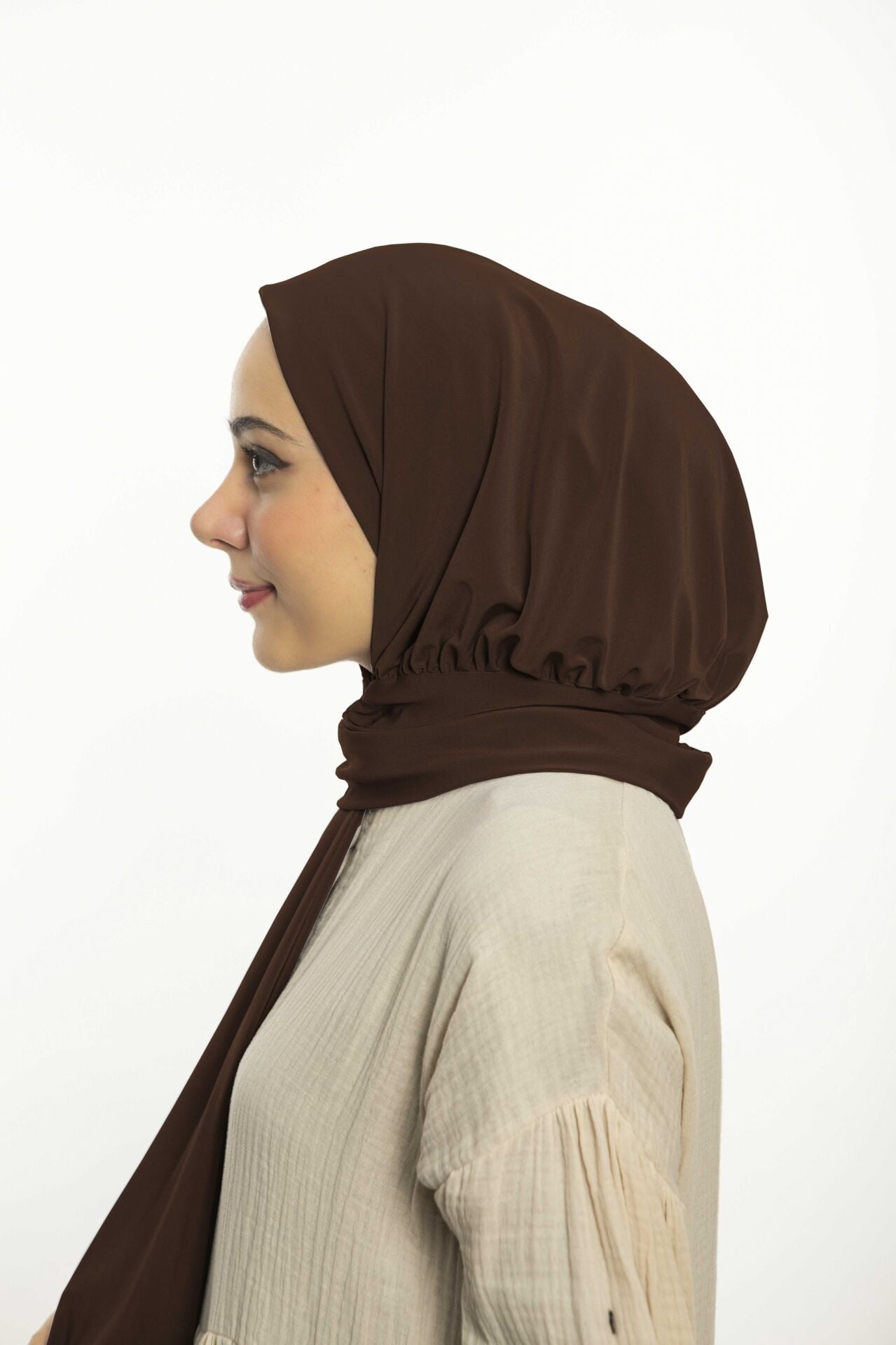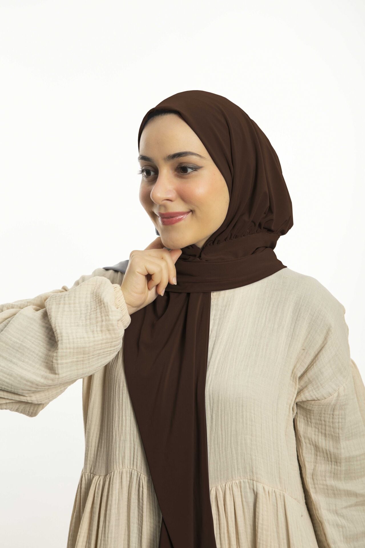 Hazır Pratik Çıtçıtlı Şal Sandy - Geçmeli Geçme Tesettür Kadın Shawl Kahverengi