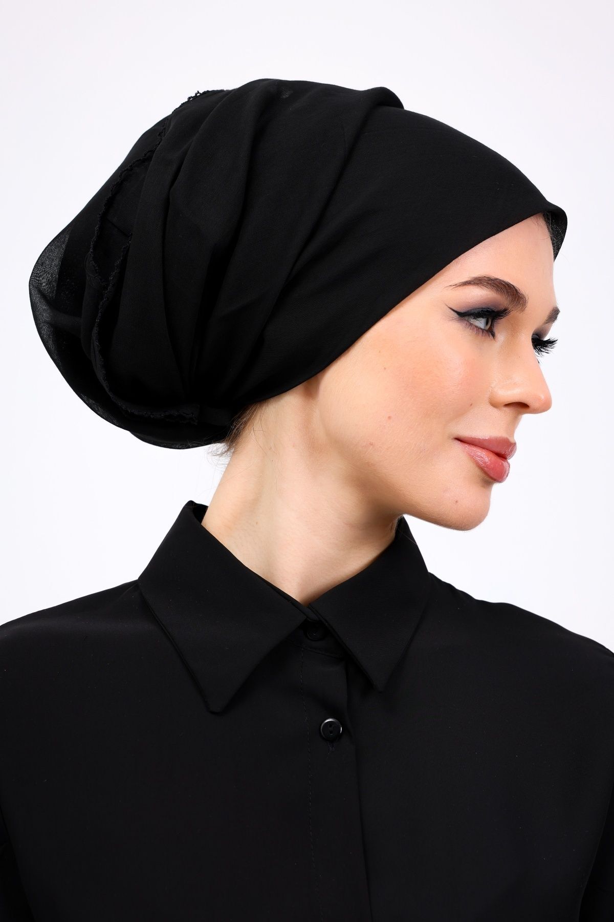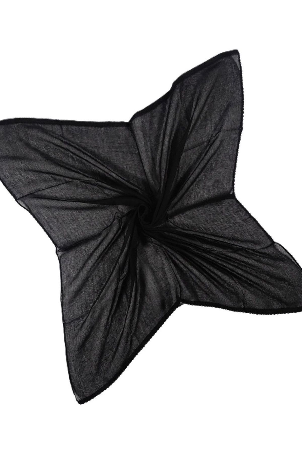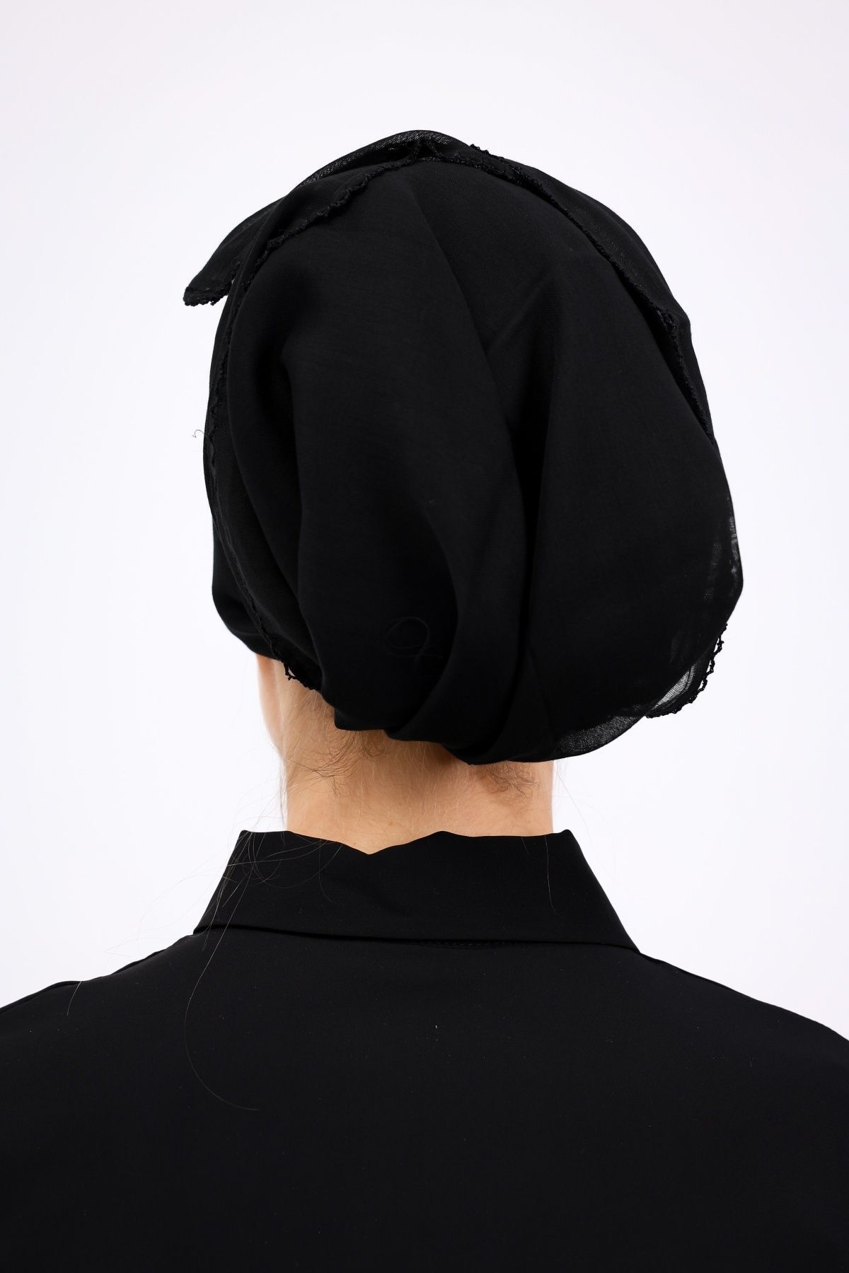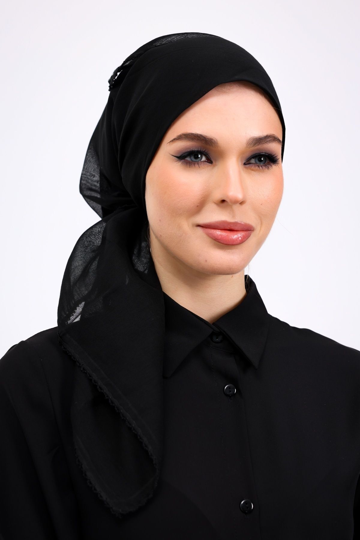 İç Başörtüsü %100 Pamuklu Tülbent - Kenarları Oyalı 90x90 Cm Kadın Tesettür Yazma Başörtü Siyah