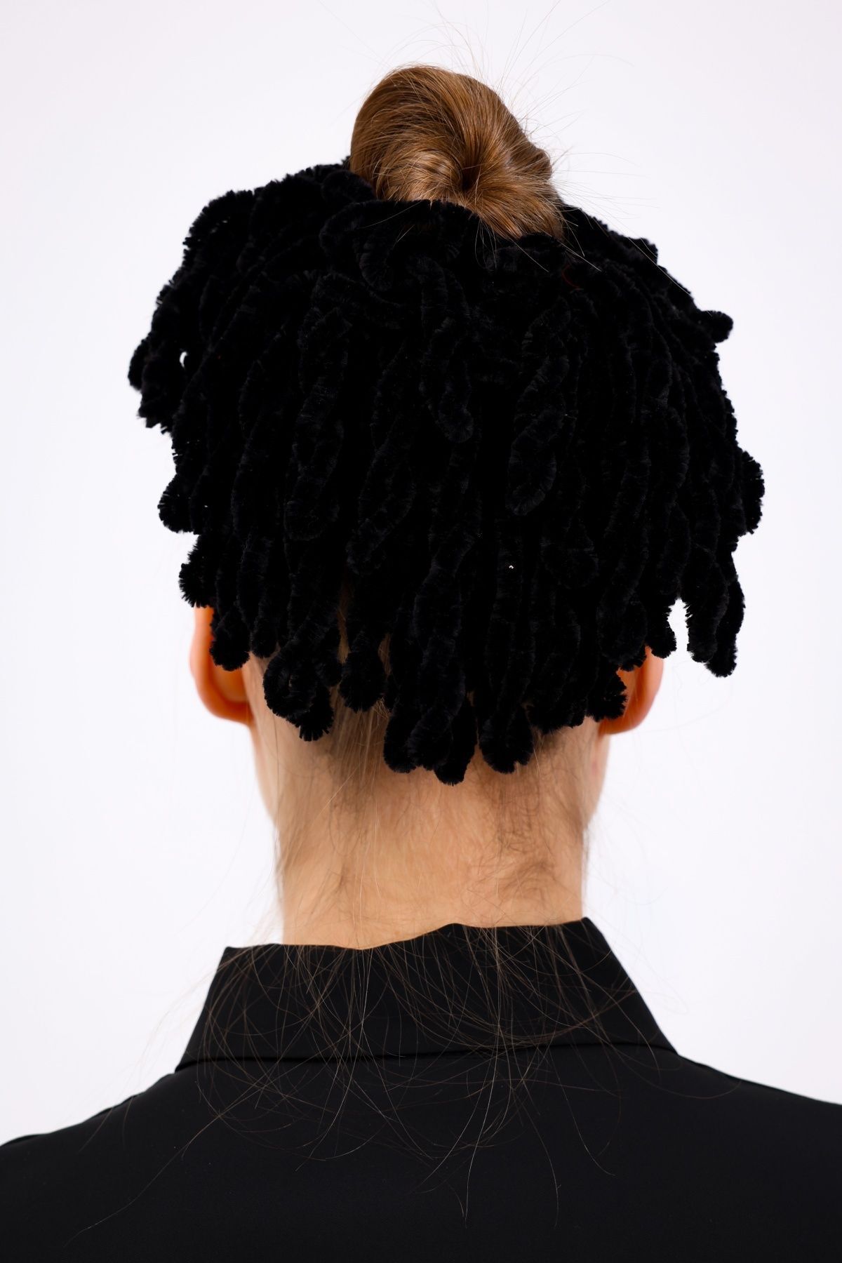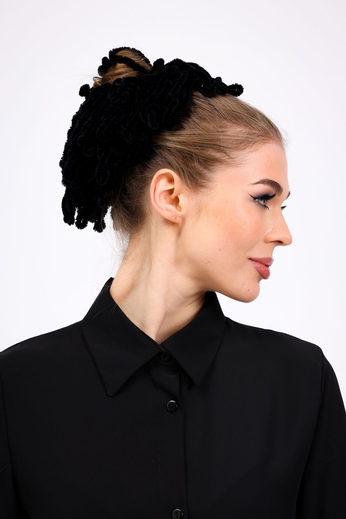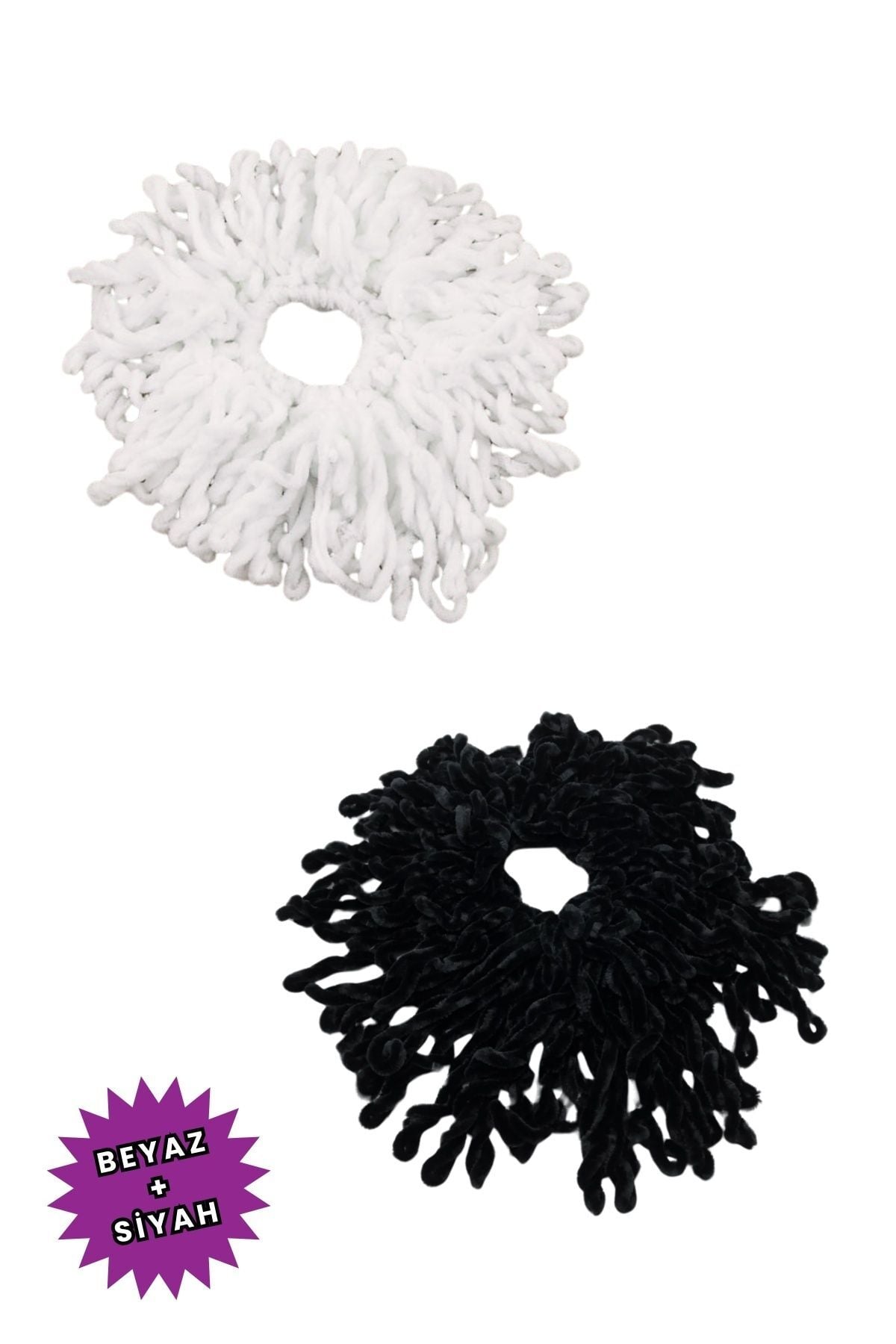 2li Topuz Tokası Seti Dolgun Lastikli Tesettür Kadın Toka 2 Adet Siyah Beyaz Kadife