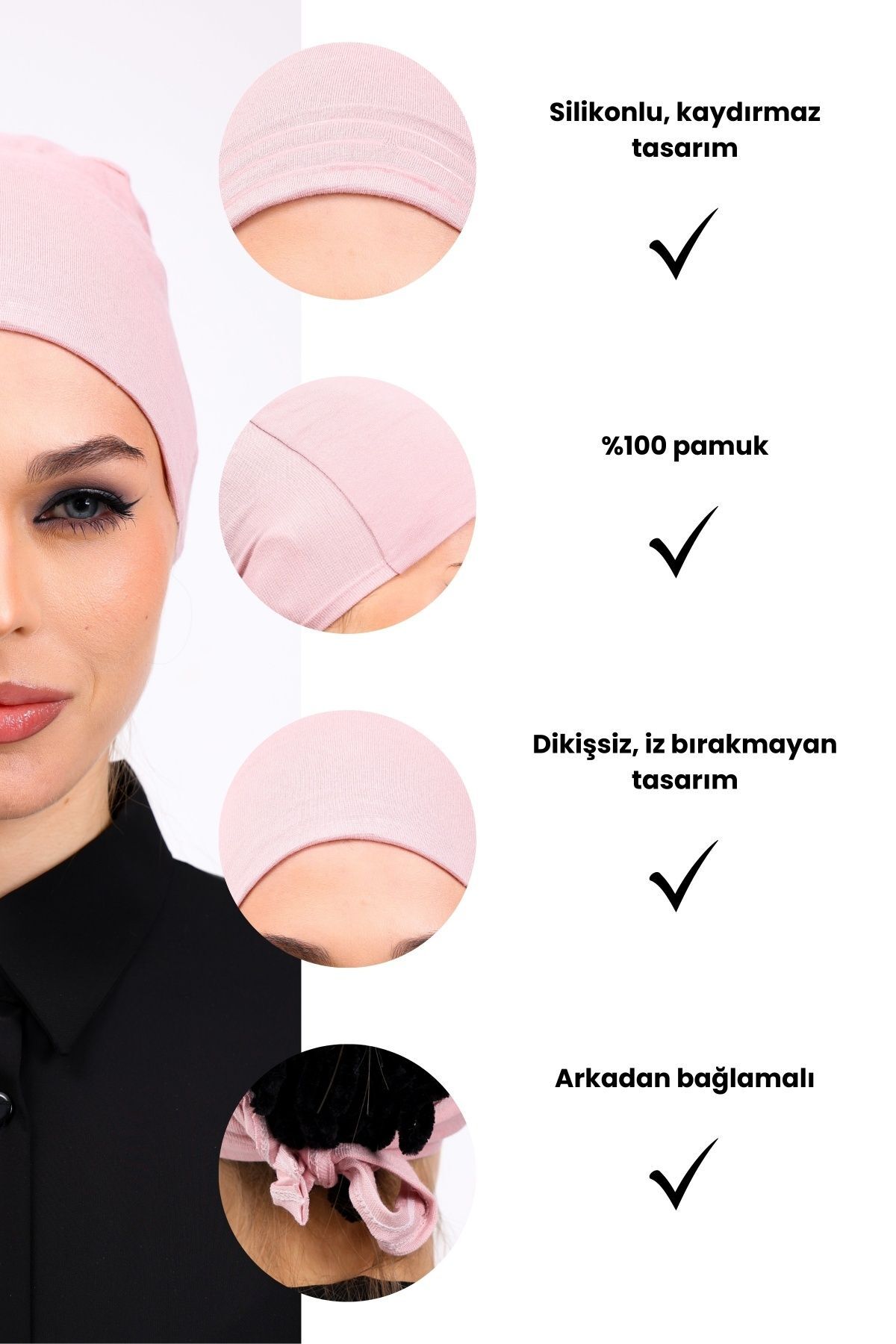 Kaymayan Silikonlu Dikişsiz Bone - Kaymaz Kadın Tesettür Bağlamalı İç Bone Pembe