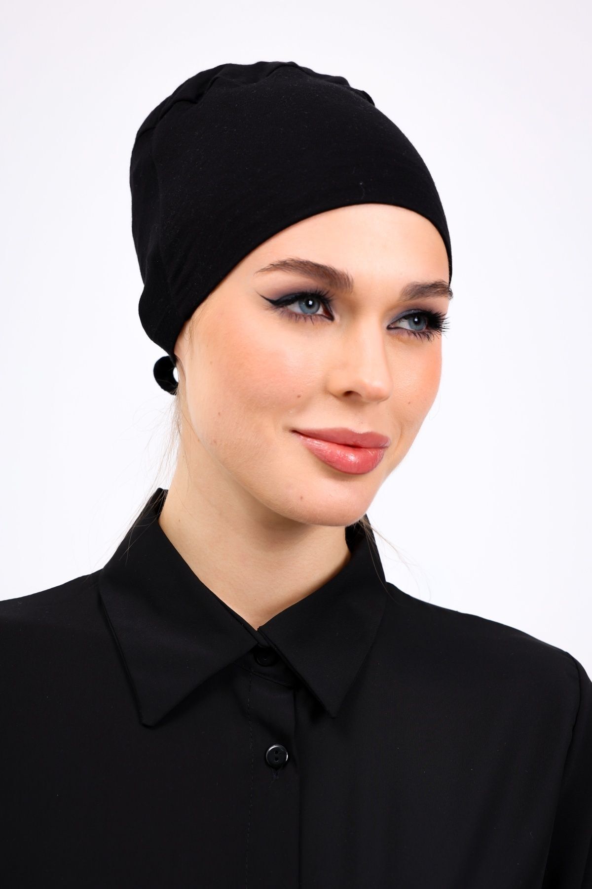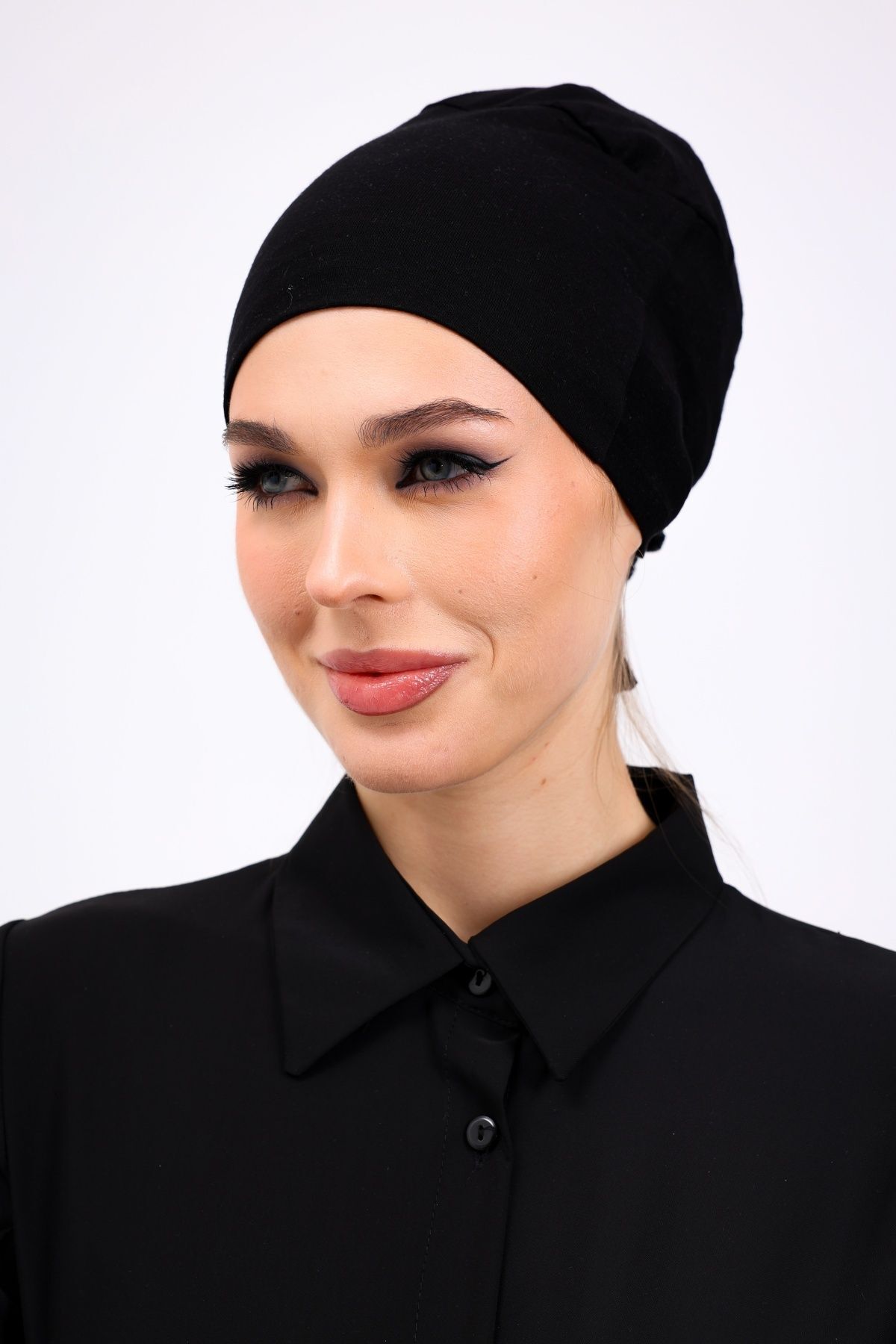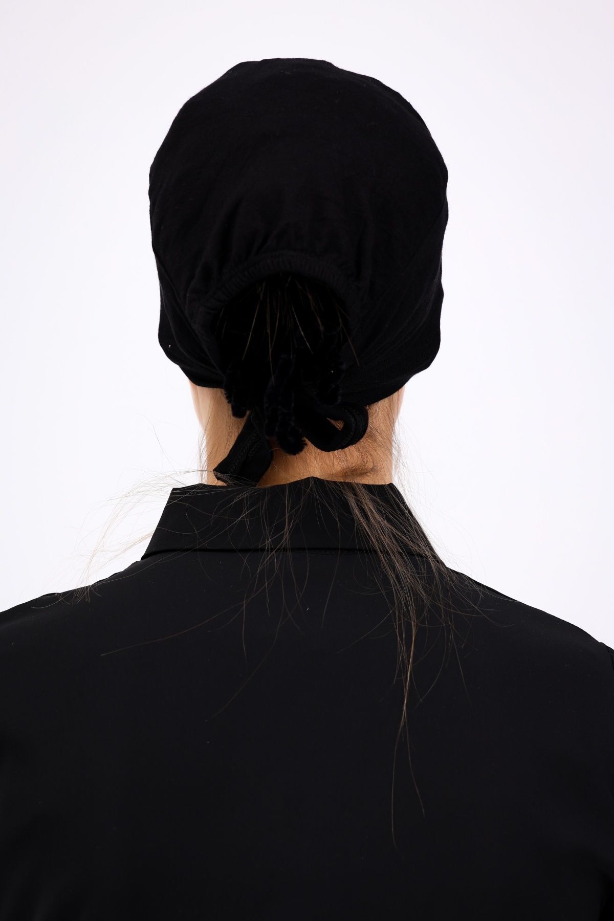 Kaymayan Silikonlu Dikişsiz Bone - Kaymaz Kadın Tesettür Bağlamalı İç Bone Siyah