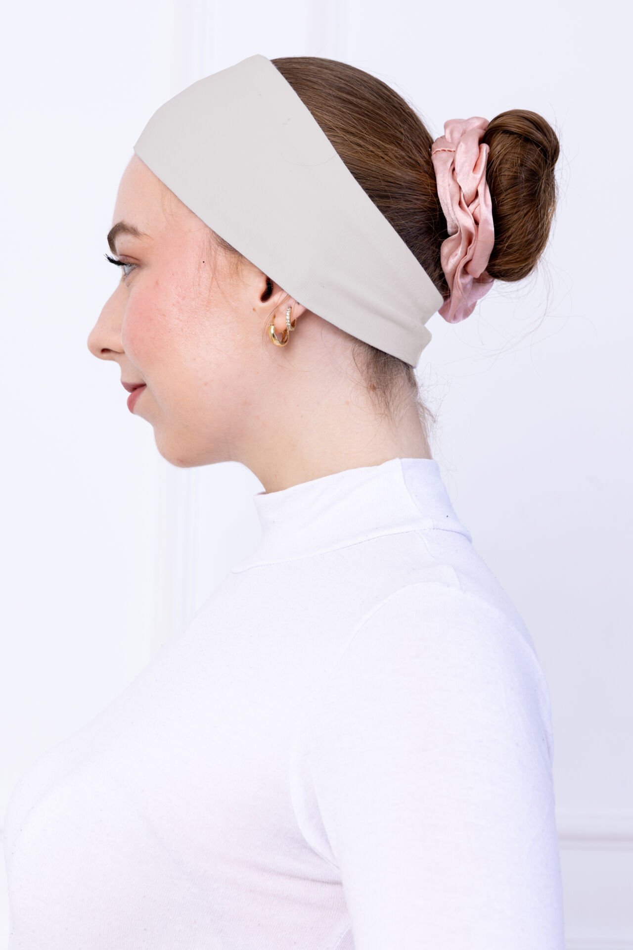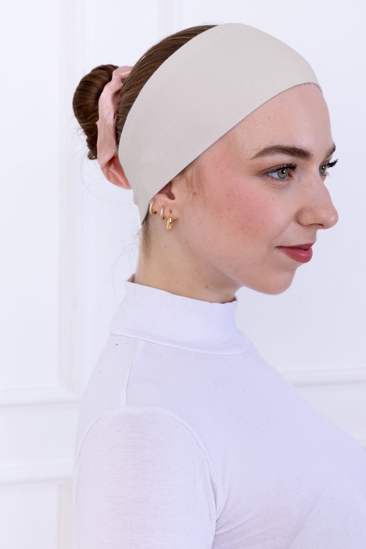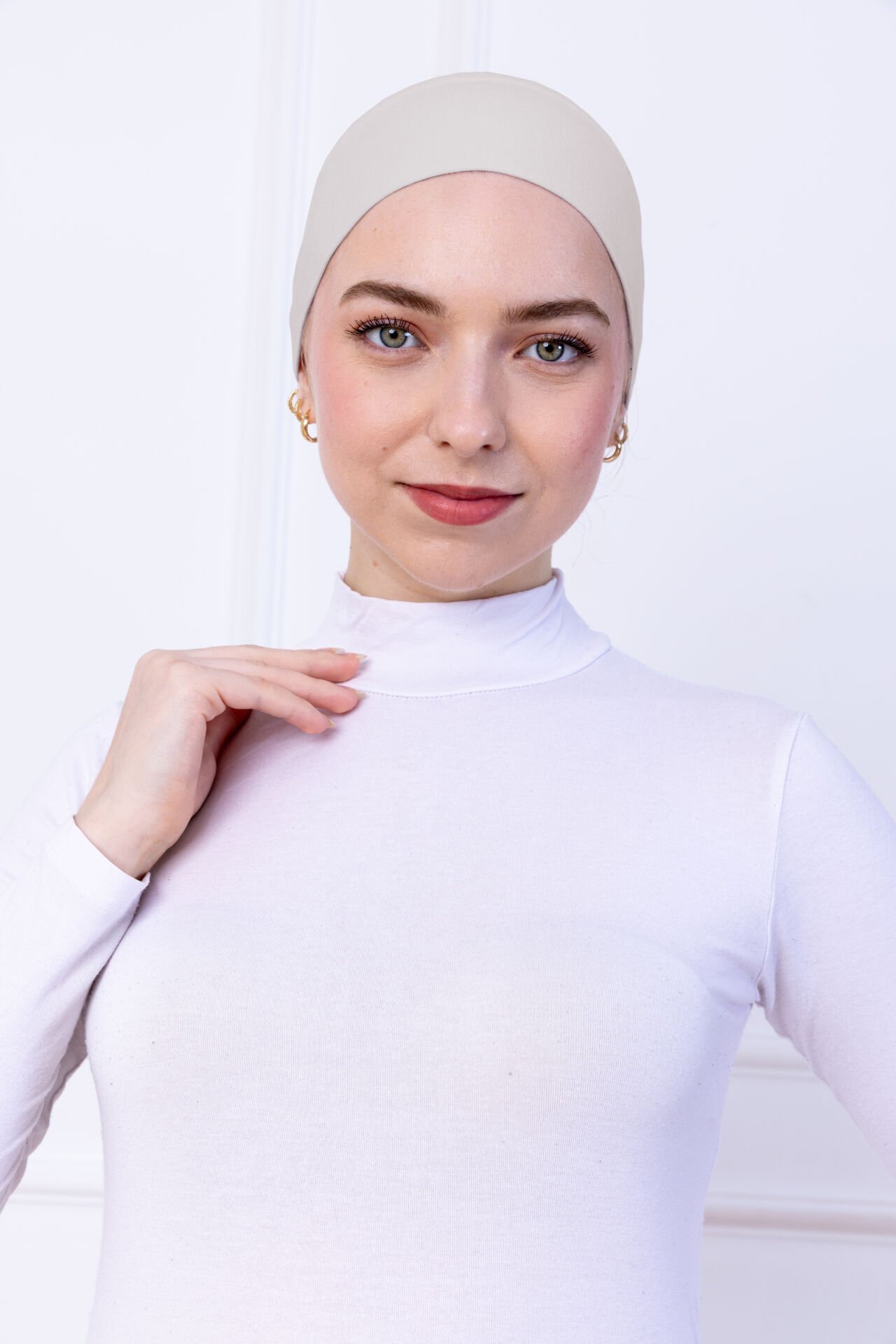 Kaymayan Silikonlu Bandana Bone - Sportif Saç Bandı Açık Bej
