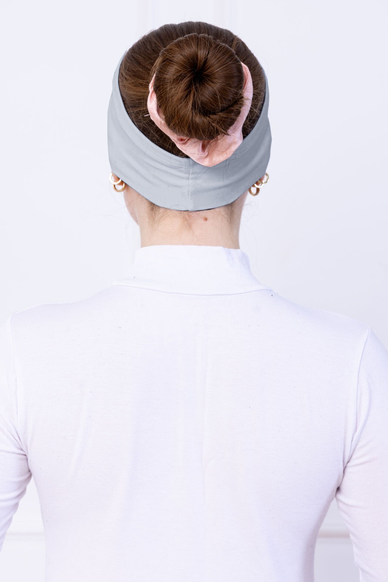 Kaymayan Silikonlu Bandana Bone - Sportif Saç Bandı Açık Gri