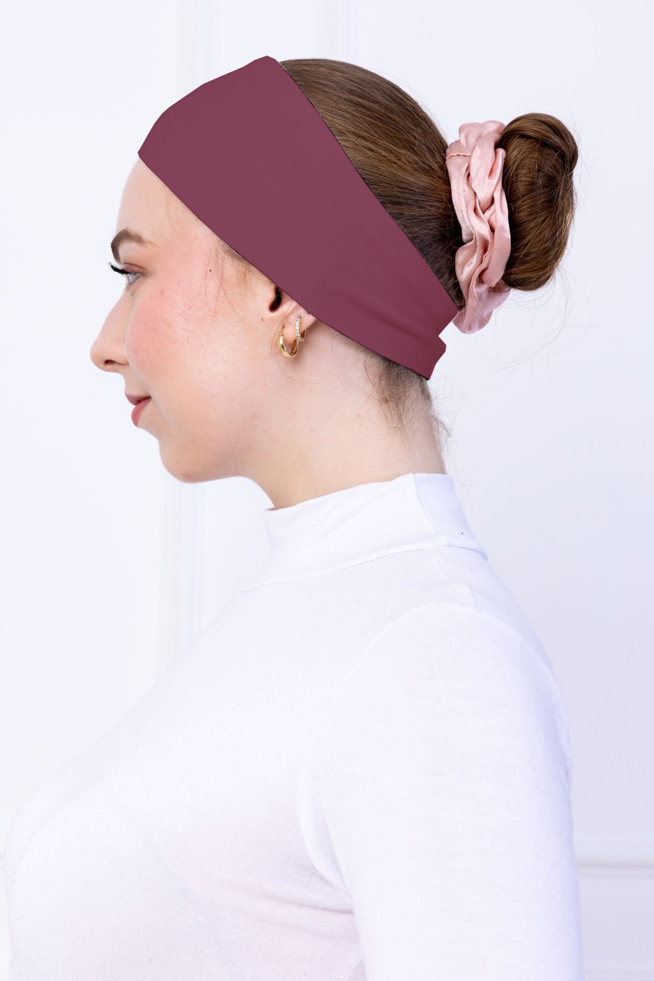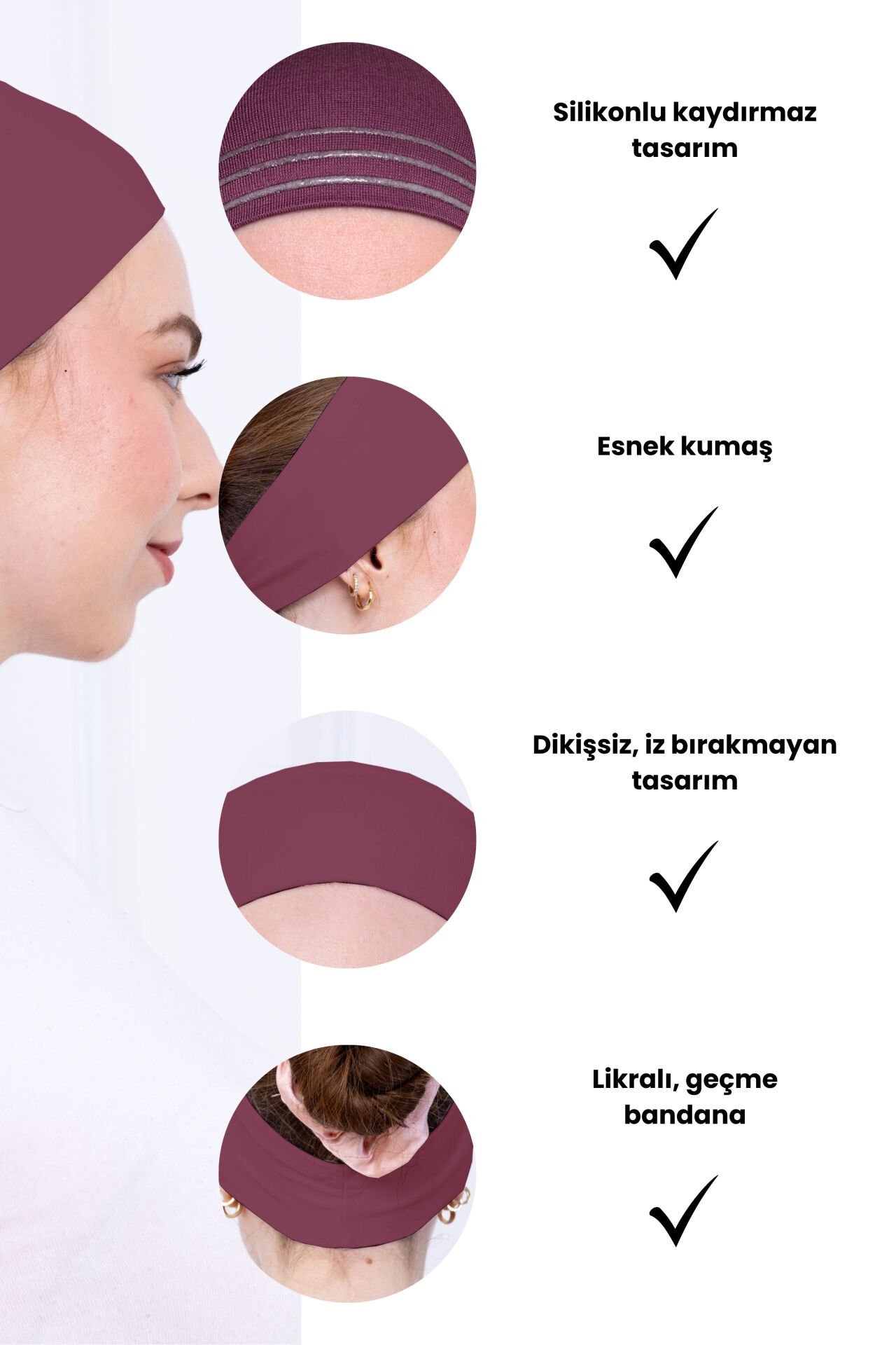 Kaymayan Silikonlu Bandana Bone - Sportif Saç Bandı Gül Kurusu