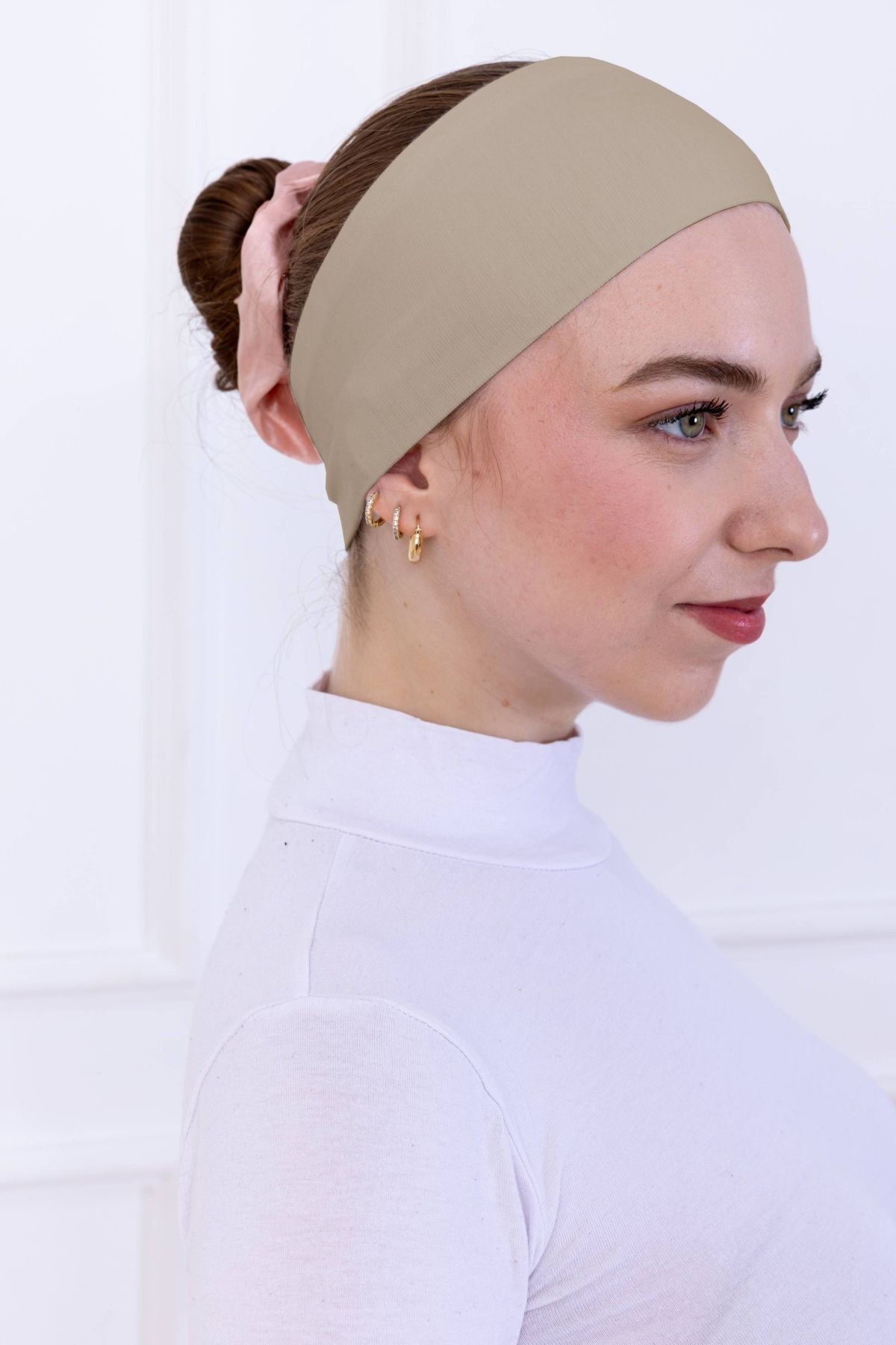 Kaymayan Silikonlu Bandana Bone - Sportif Saç Bandı Krem