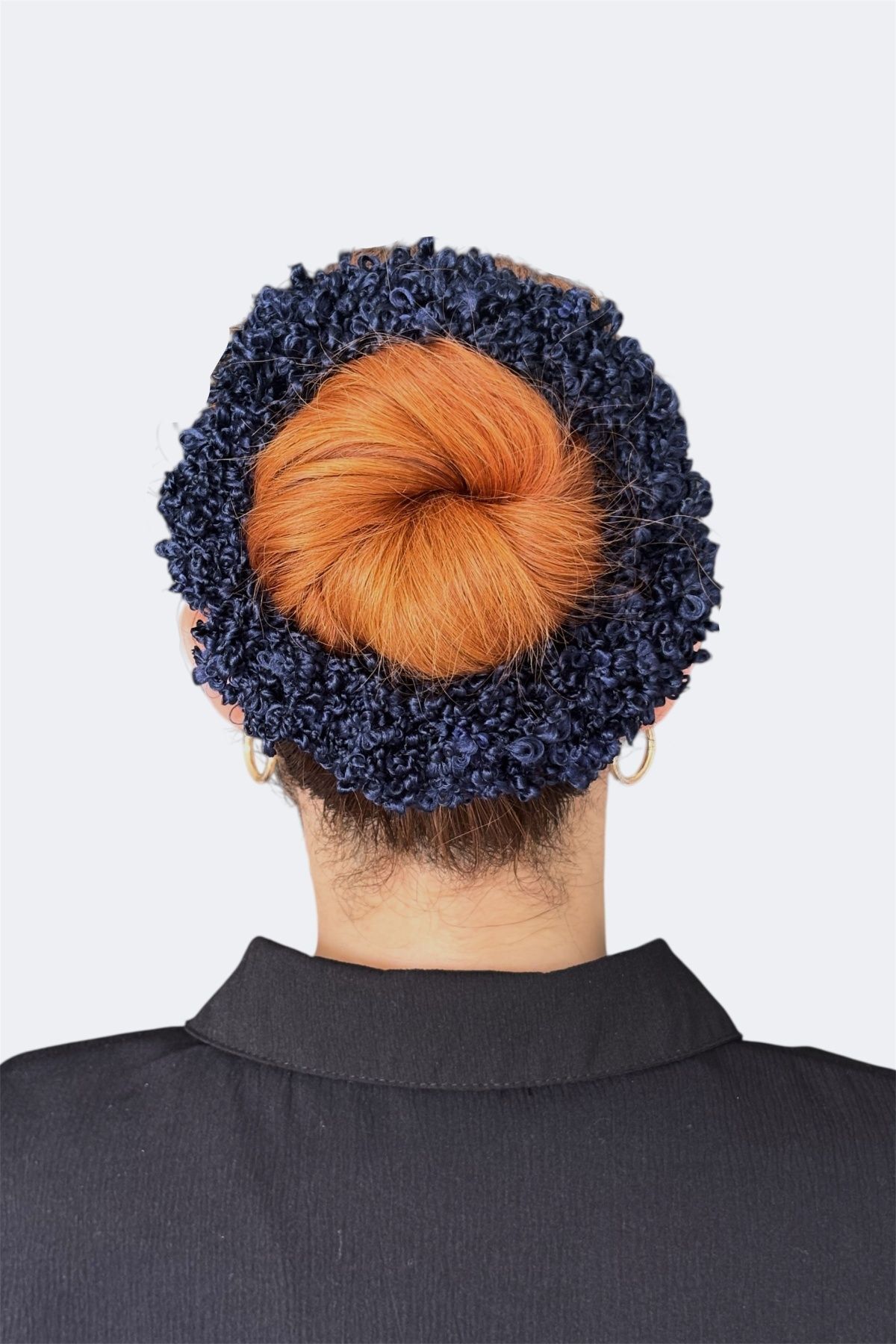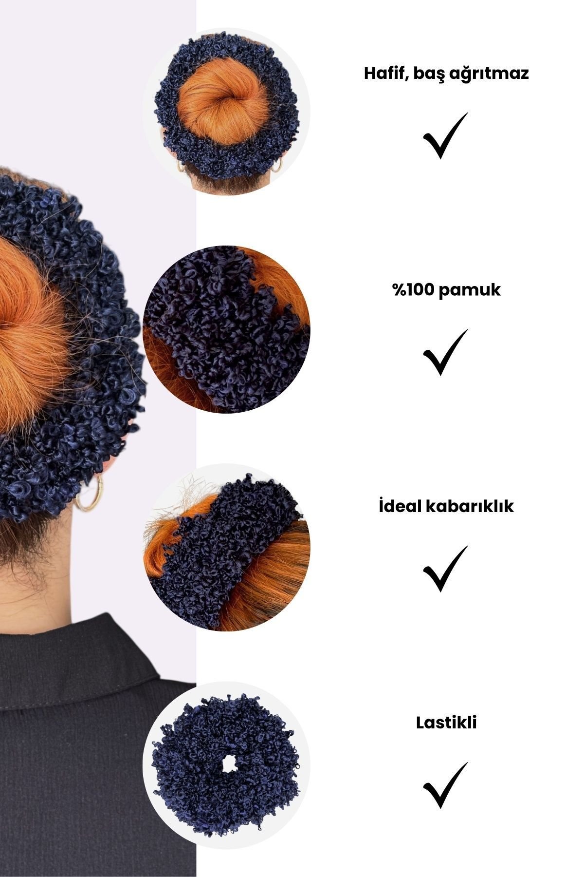 Arap Saçı Topuz Tokası Dolgun Lastikli Tesettür Kadın Aksesuar Toka Lacivert