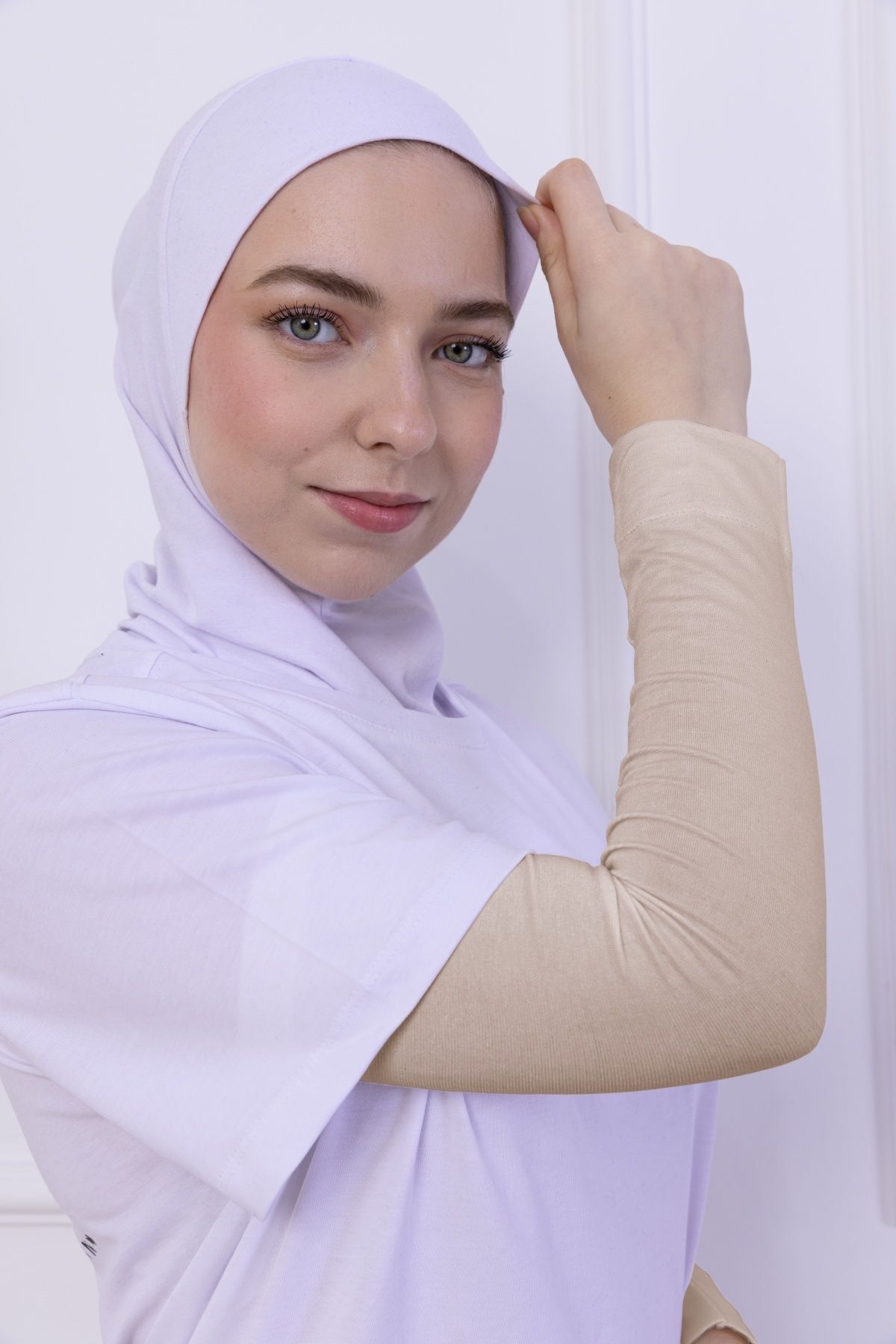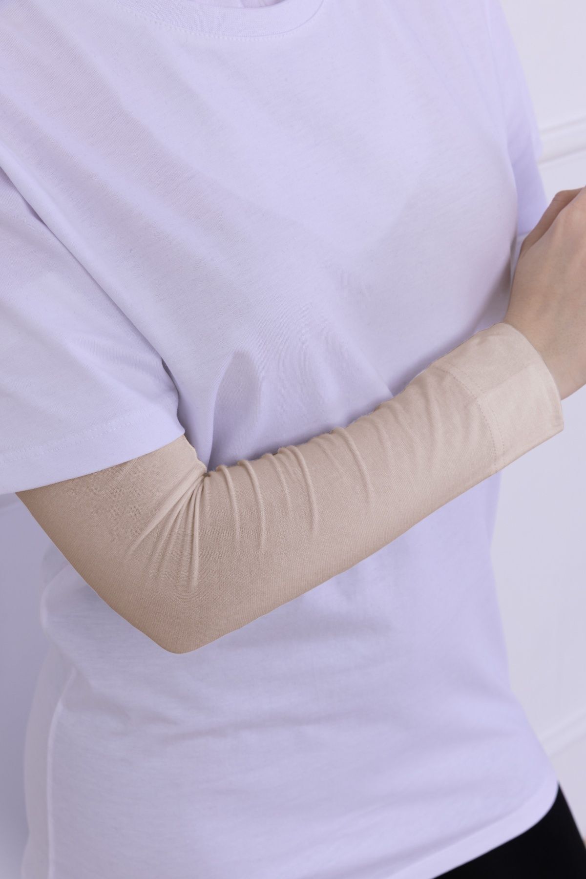 Likralı Penye Kolluk - Pratik Kadın Tesettür Düz Namaz Kolluğu 1 Çift 40cm Viskon Hijab Açık Bej