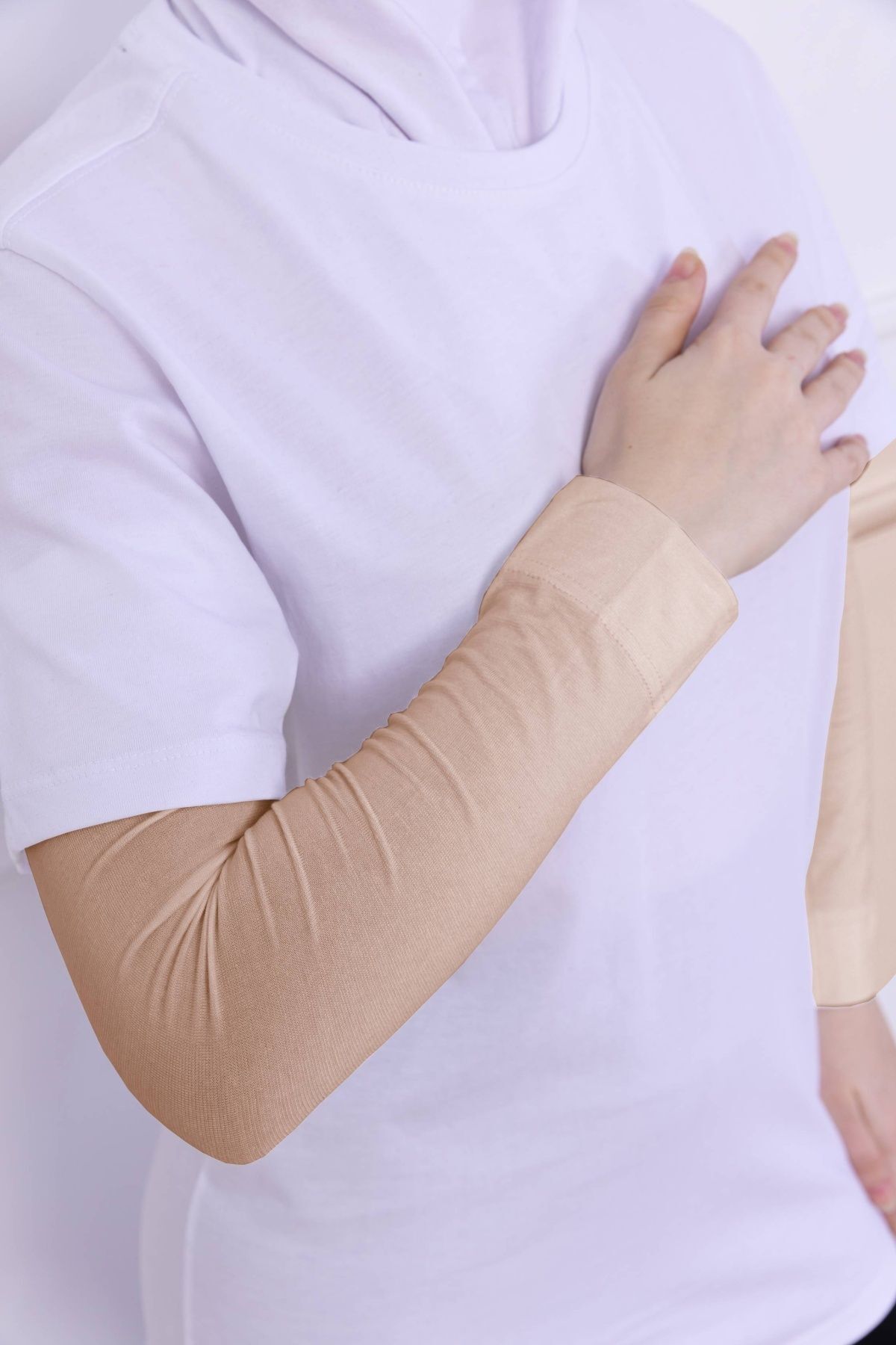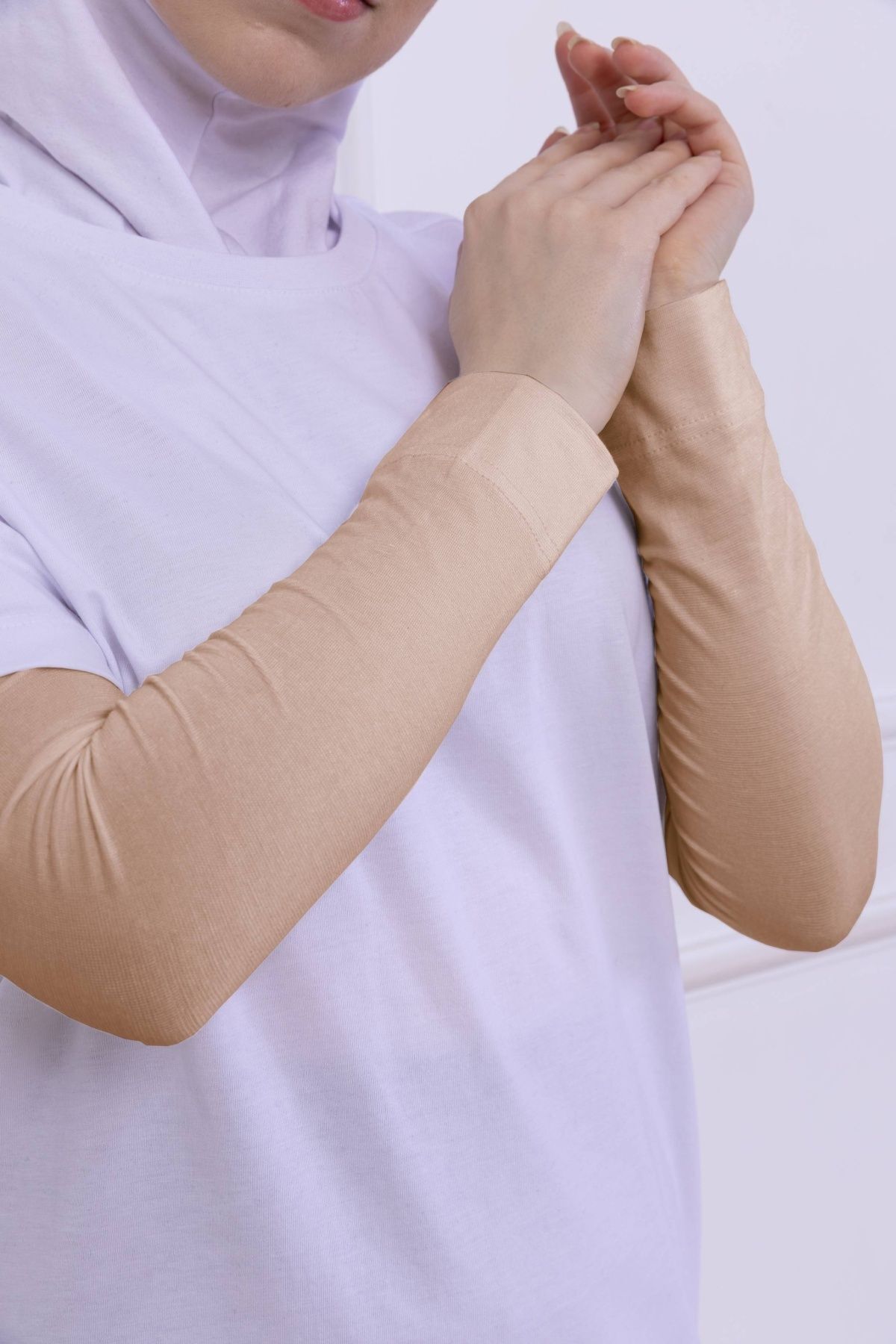 Likralı Penye Kolluk - Pratik Kadın Tesettür Düz Namaz Kolluğu 1 Çift 40cm Viskon Hijab Ten Rengi