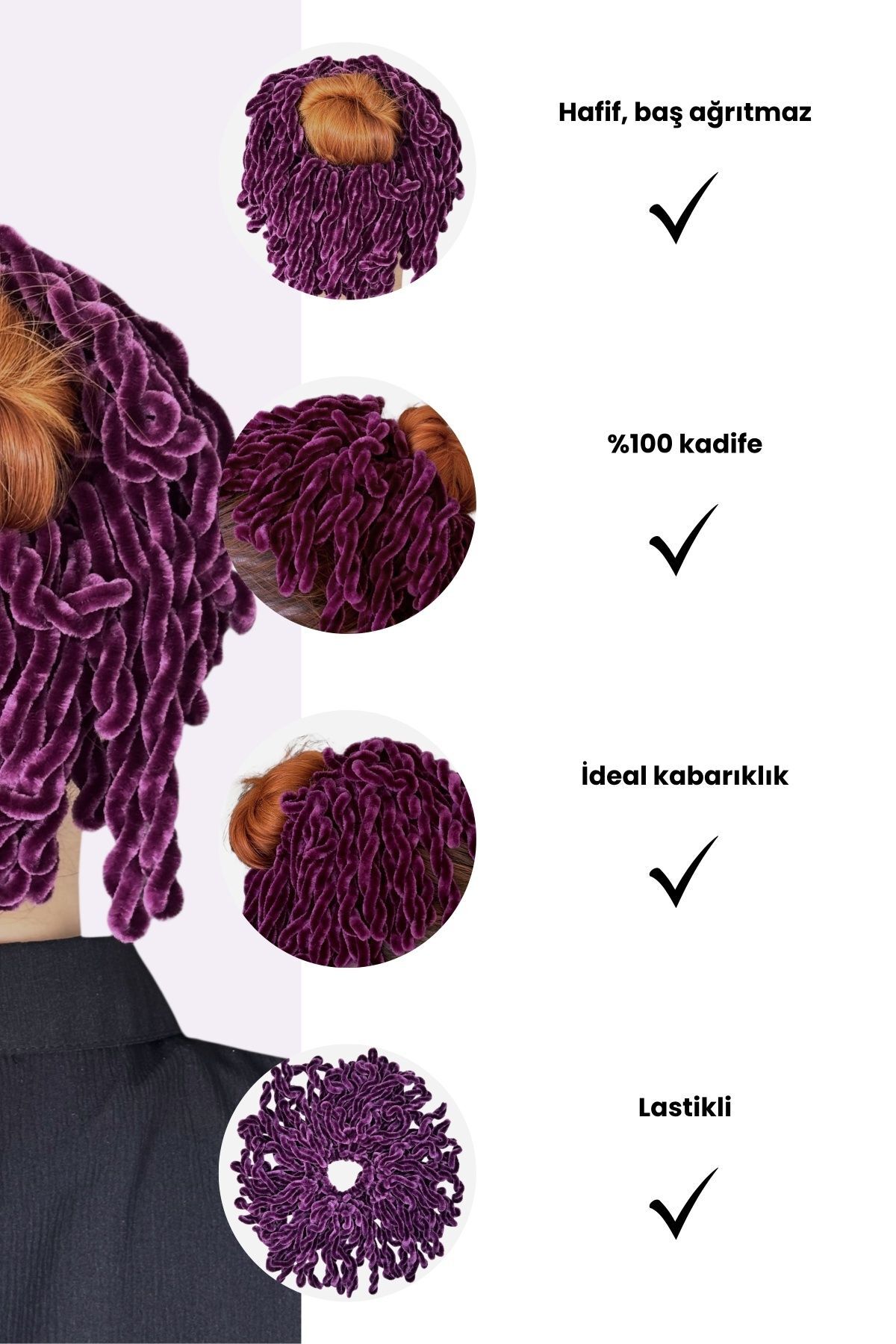 Kadife Topuz Tokası Dolgun Lastikli Tesettür Kadın Aksesuar Toka Mürdüm