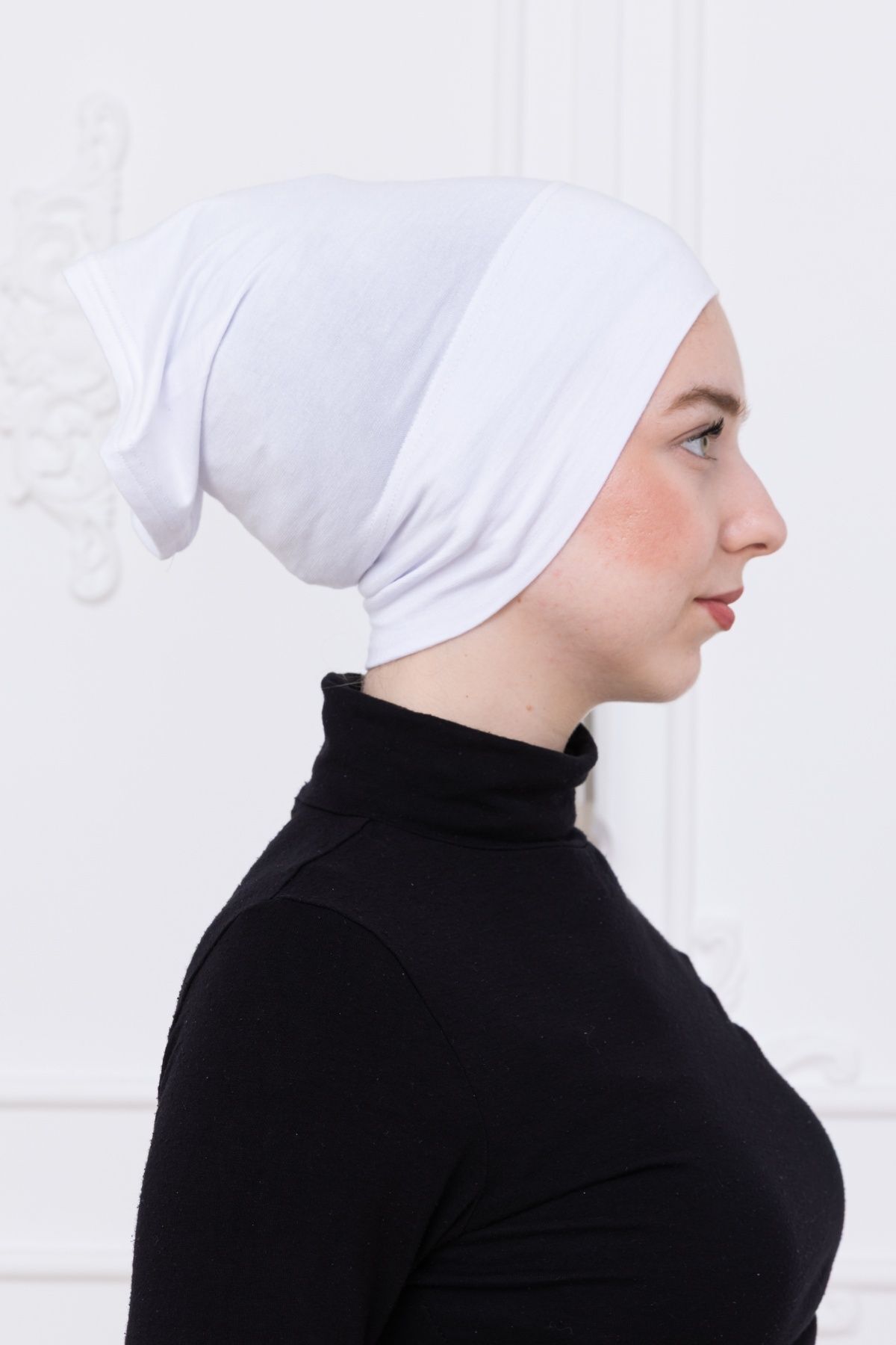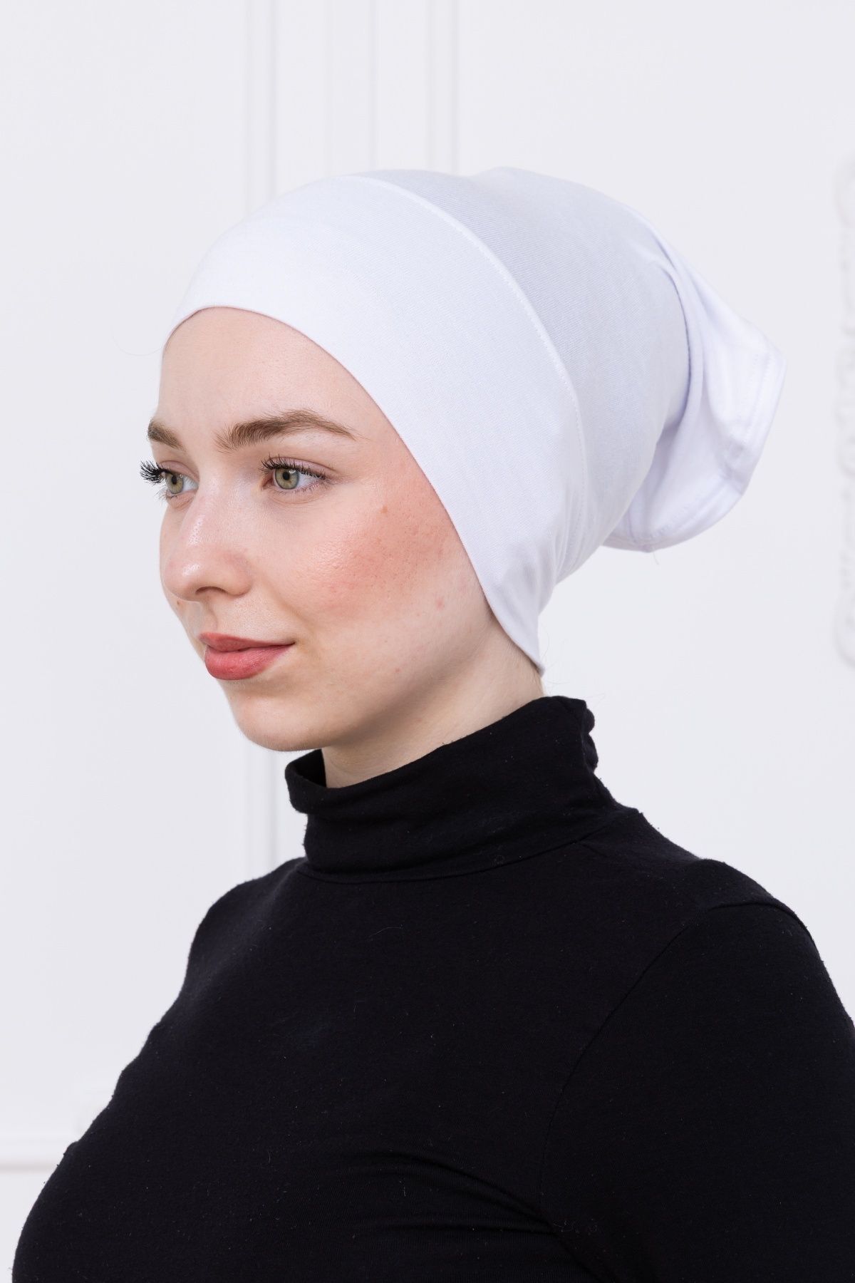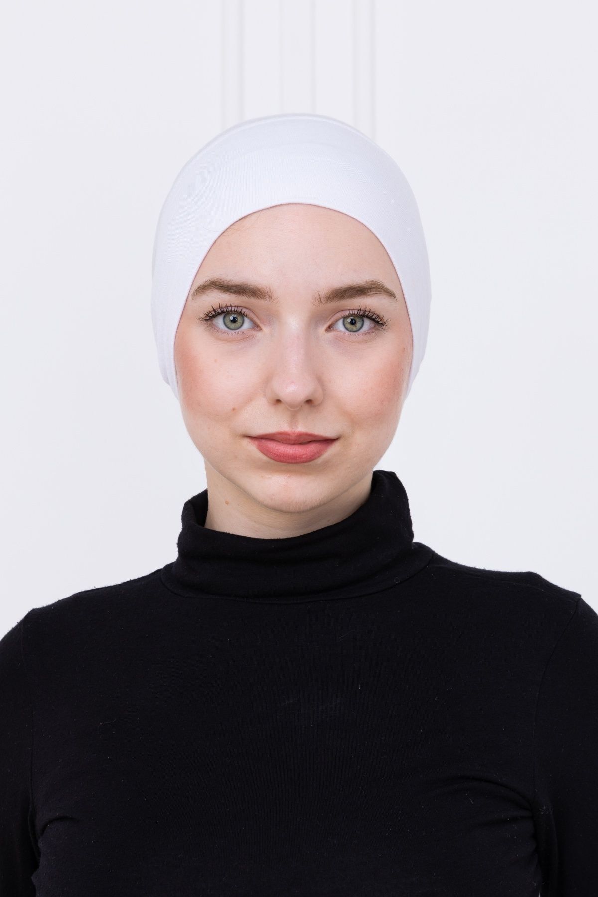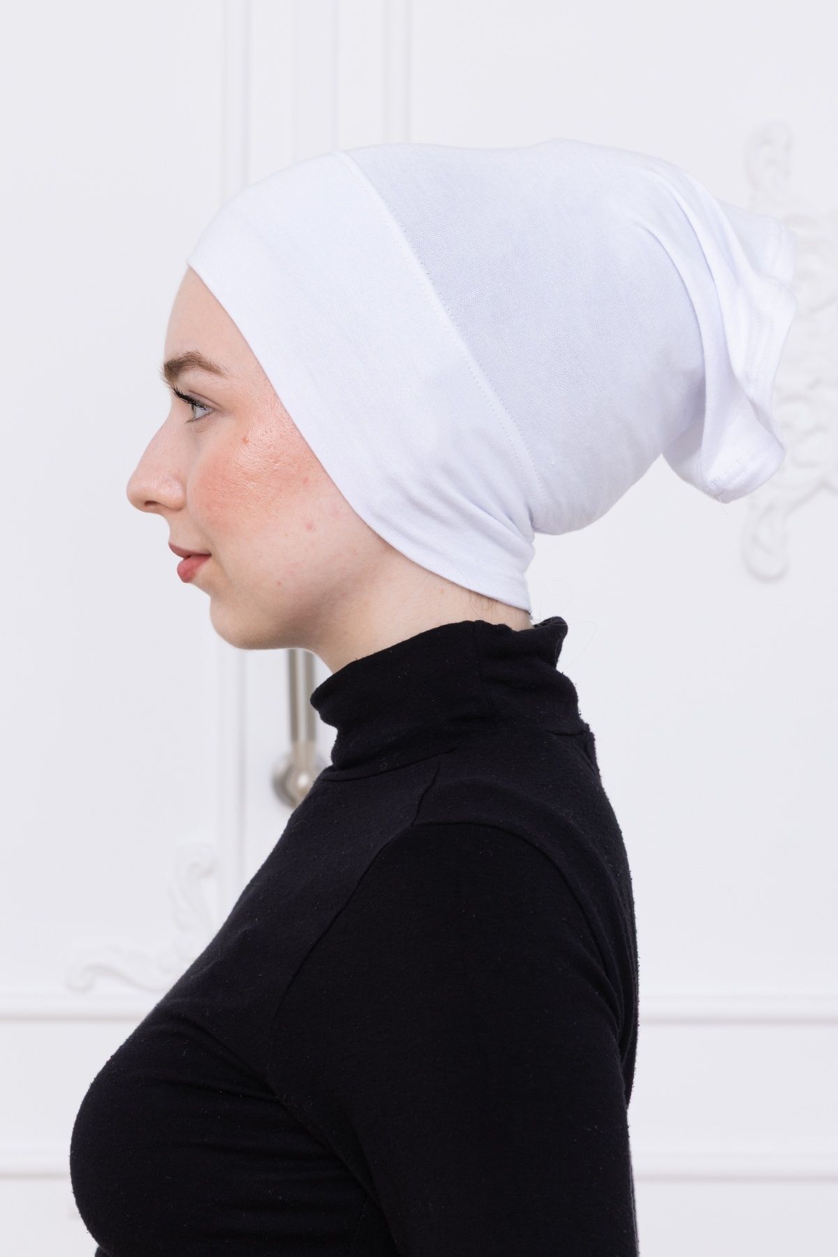 Pratik Boru Bone Geçmeli - Kaymaz Önü Dikişsiz Kadın Tesettür Hazır İç Bone Beyaz
