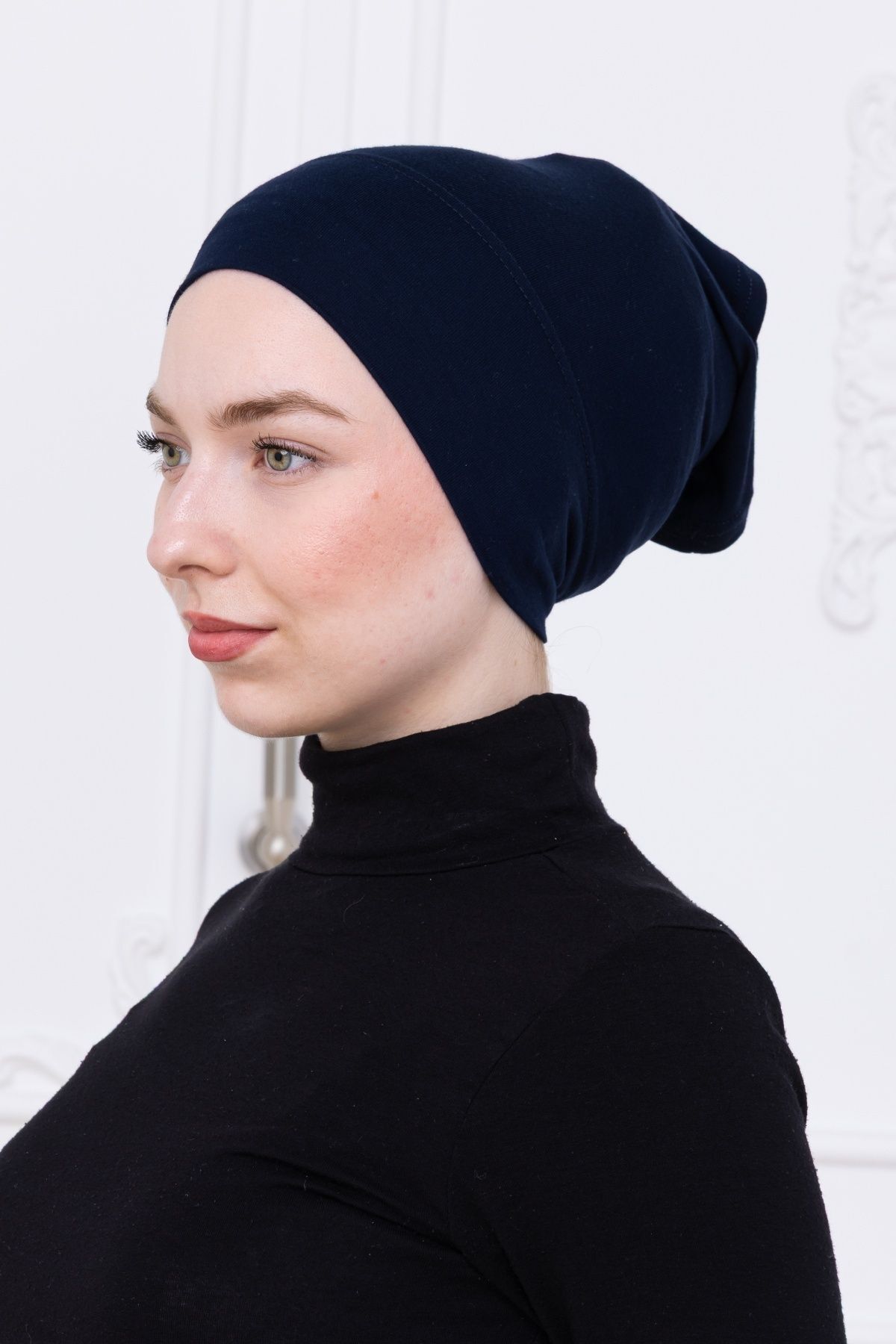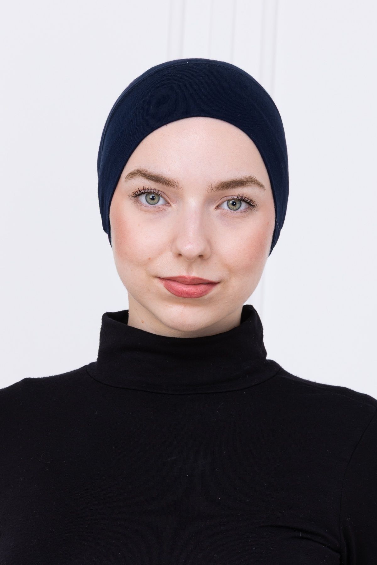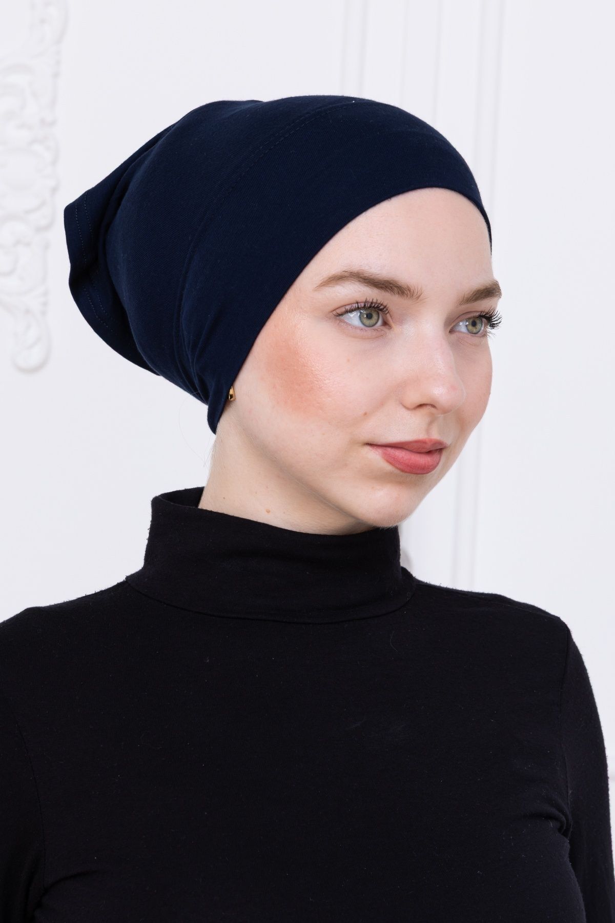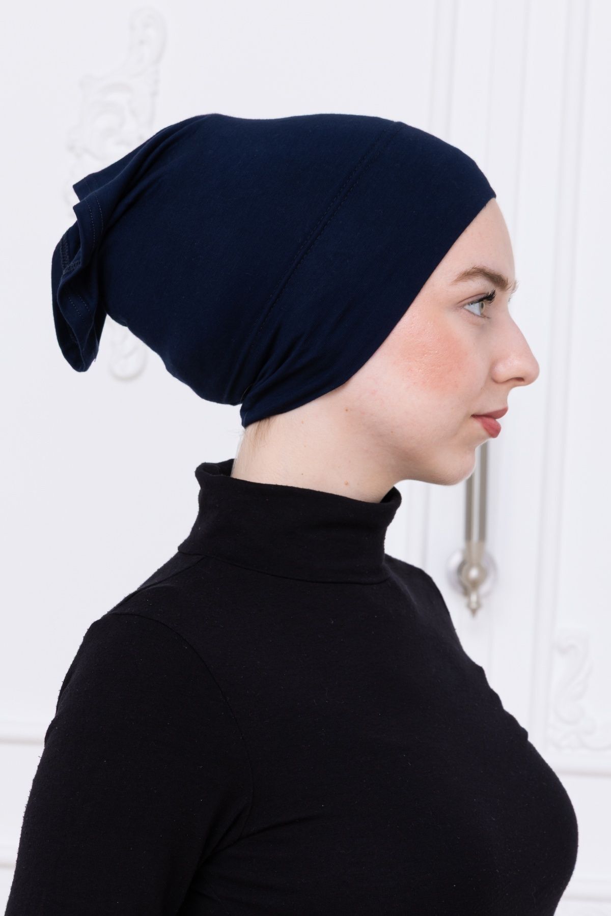 Pratik Boru Bone Geçmeli - Kaymaz Önü Dikişsiz Kadın Tesettür Hazır İç Bone Lacivert
