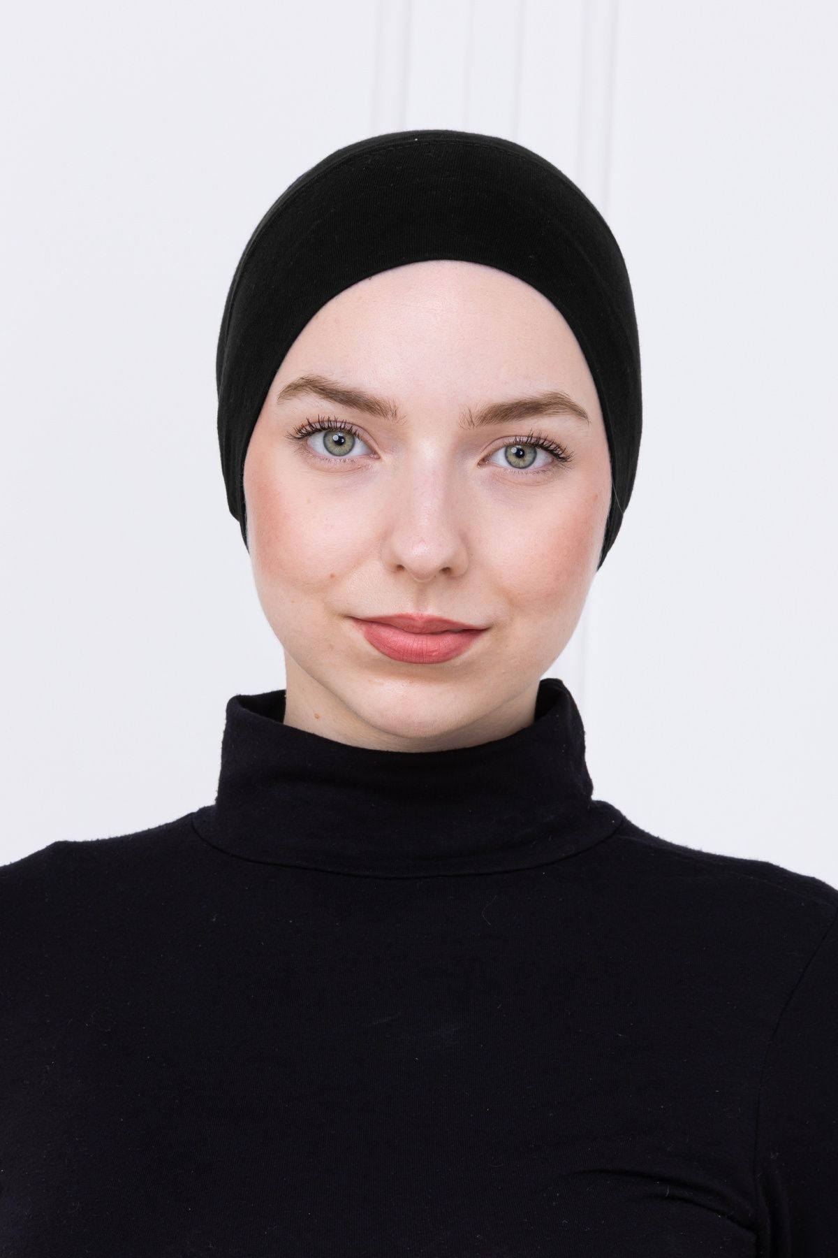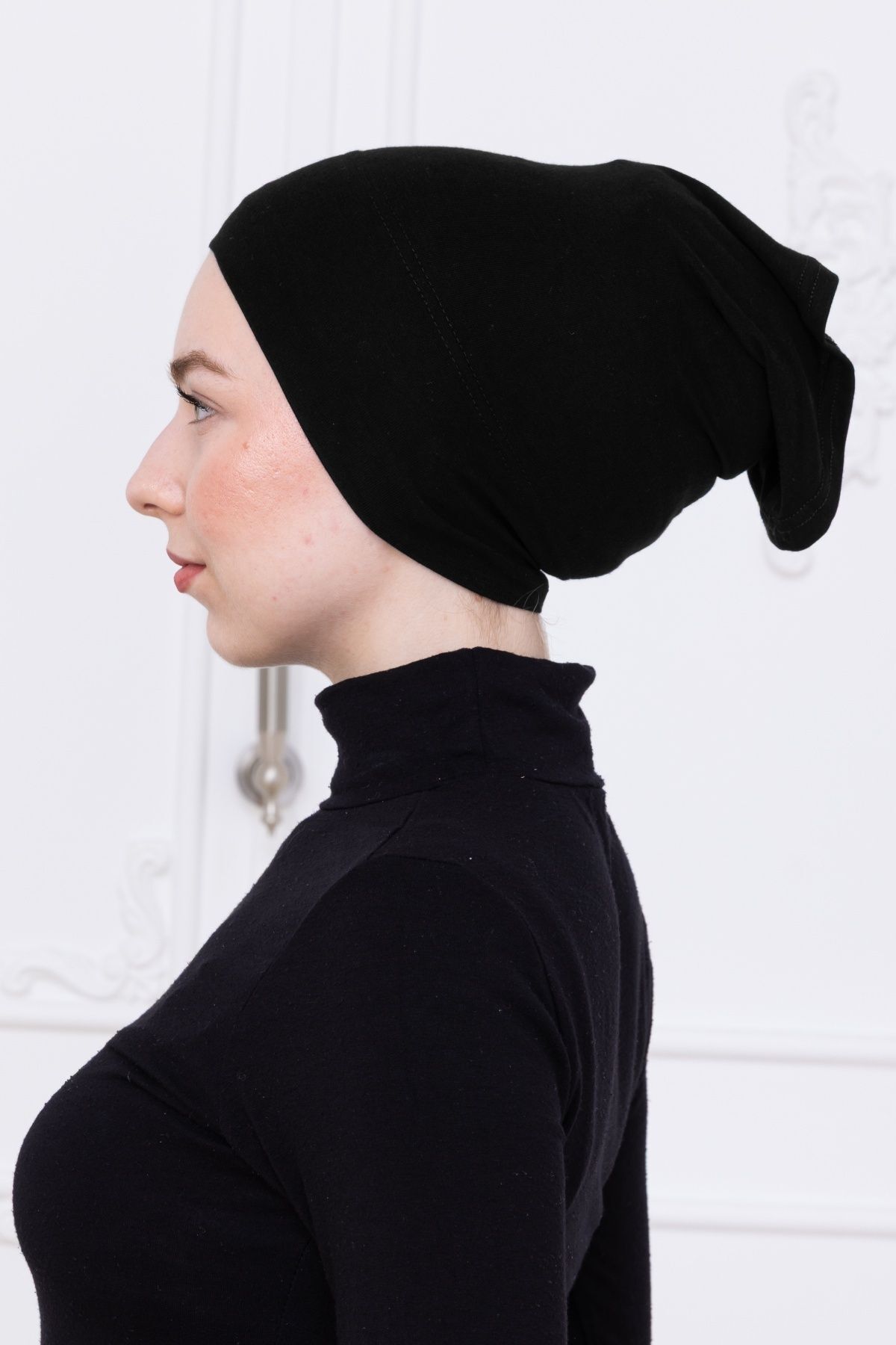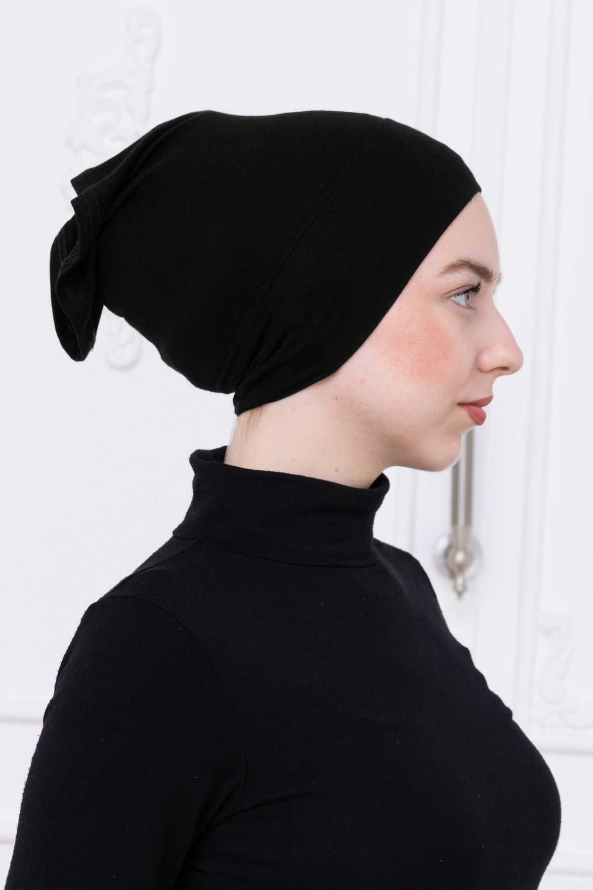 Pratik Boru Bone Geçmeli - Kaymaz Önü Dikişsiz Kadın Tesettür Hazır İç Bone Siyah