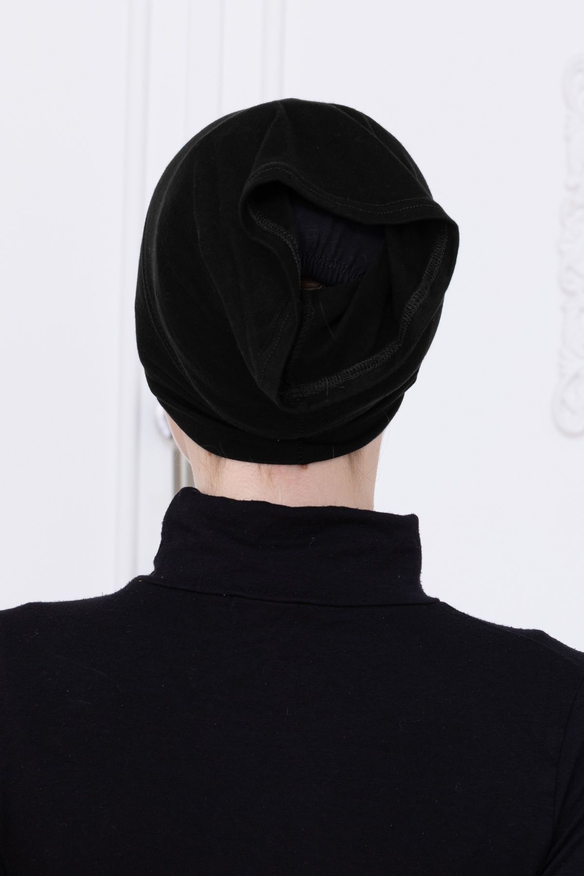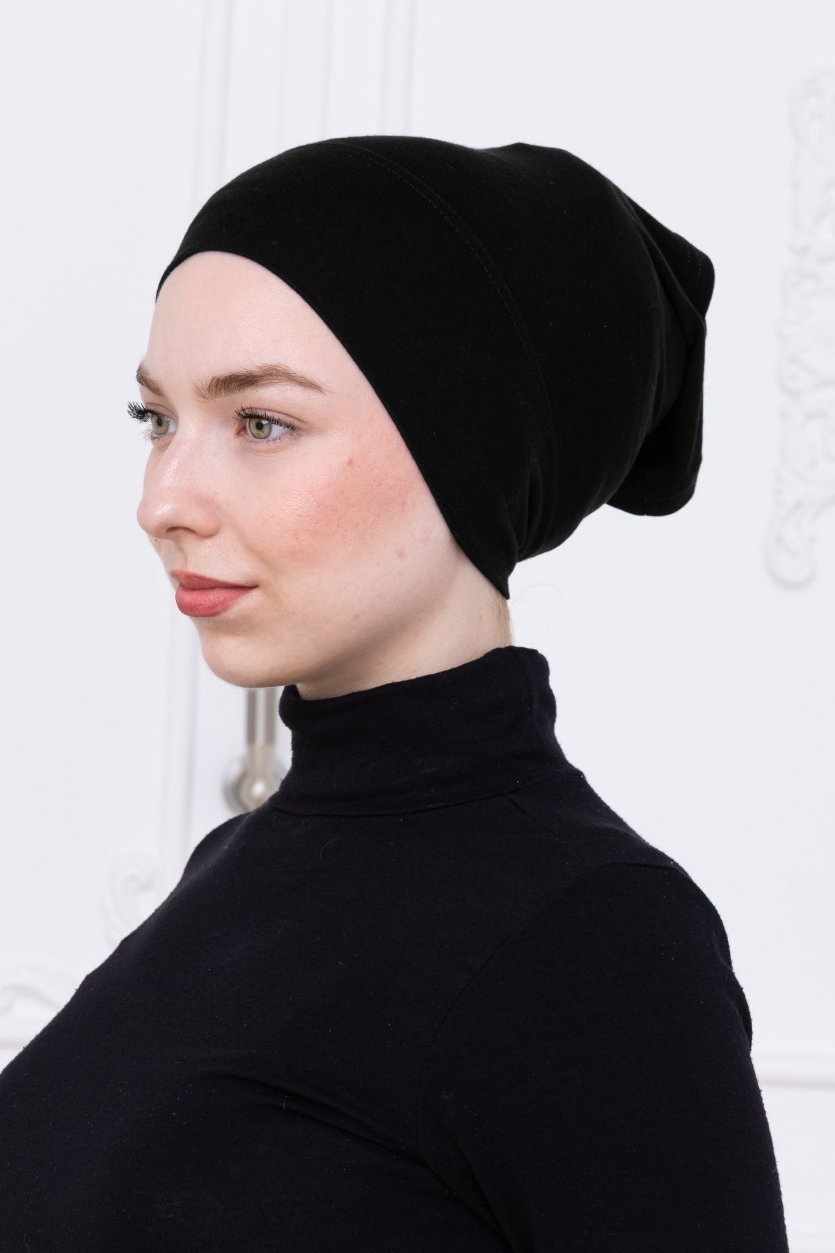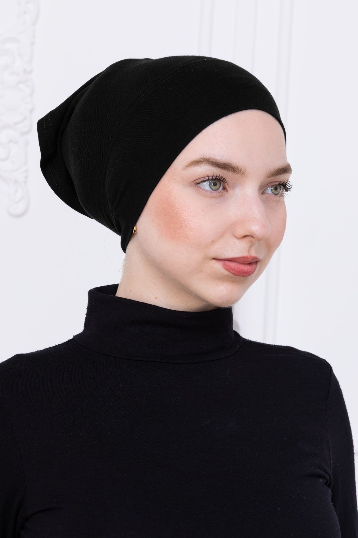 Pratik Boru Bone Geçmeli - Kaymaz Önü Dikişsiz Kadın Tesettür Hazır İç Bone Siyah