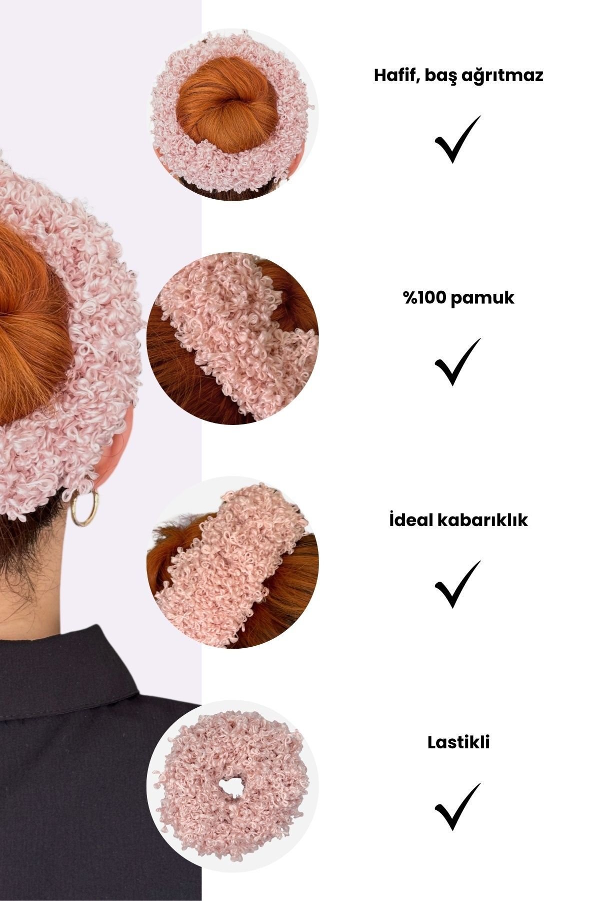Arap Saçı Topuz Tokası Dolgun Lastikli Tesettür Kadın Aksesuar Toka Pudra