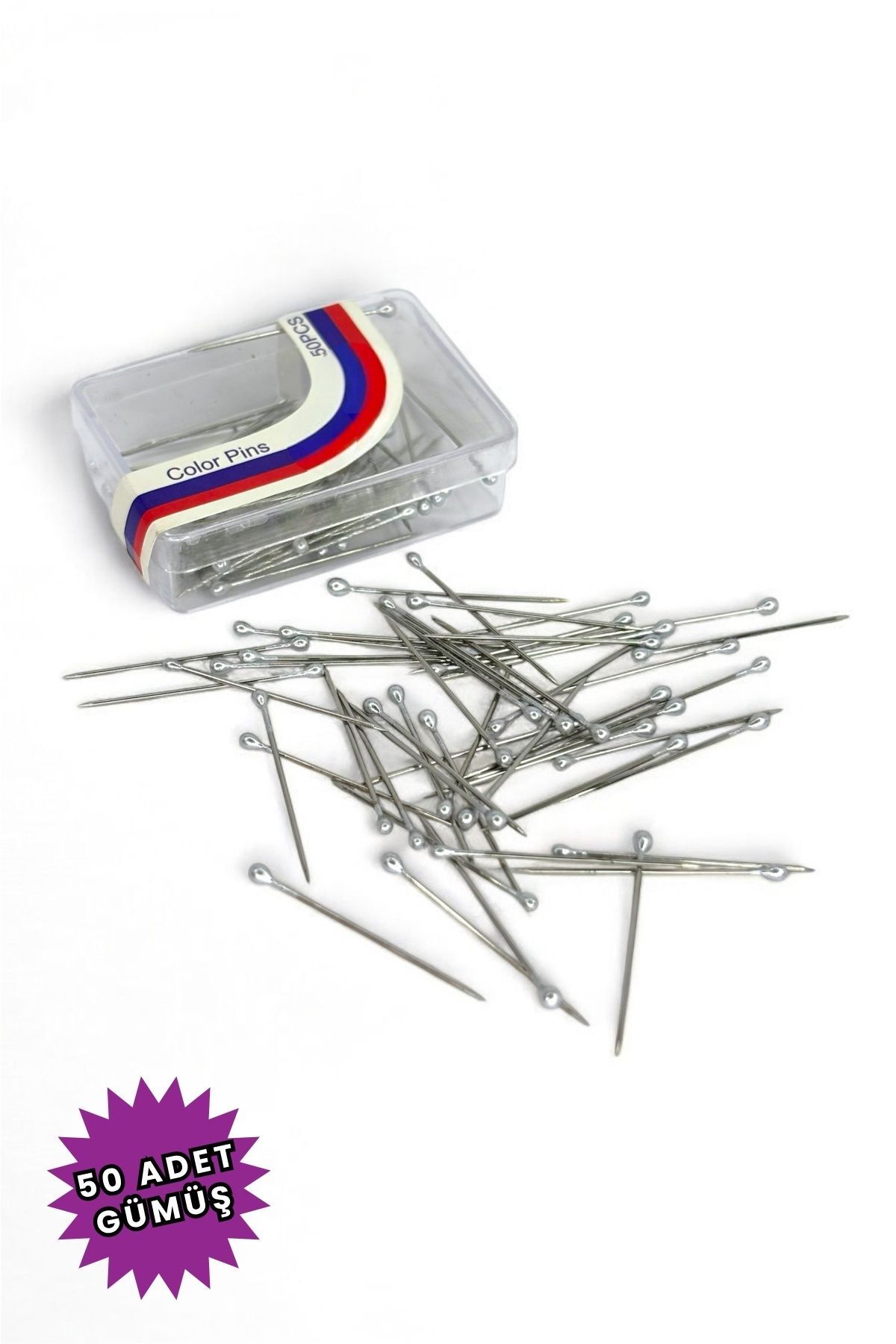 Toplu İğne 50 Adet 2.5cm - Eşarp Ve Şal Iğnesi - Kadın Tesettür Aksesuar Çok Amaçlı Gümüş