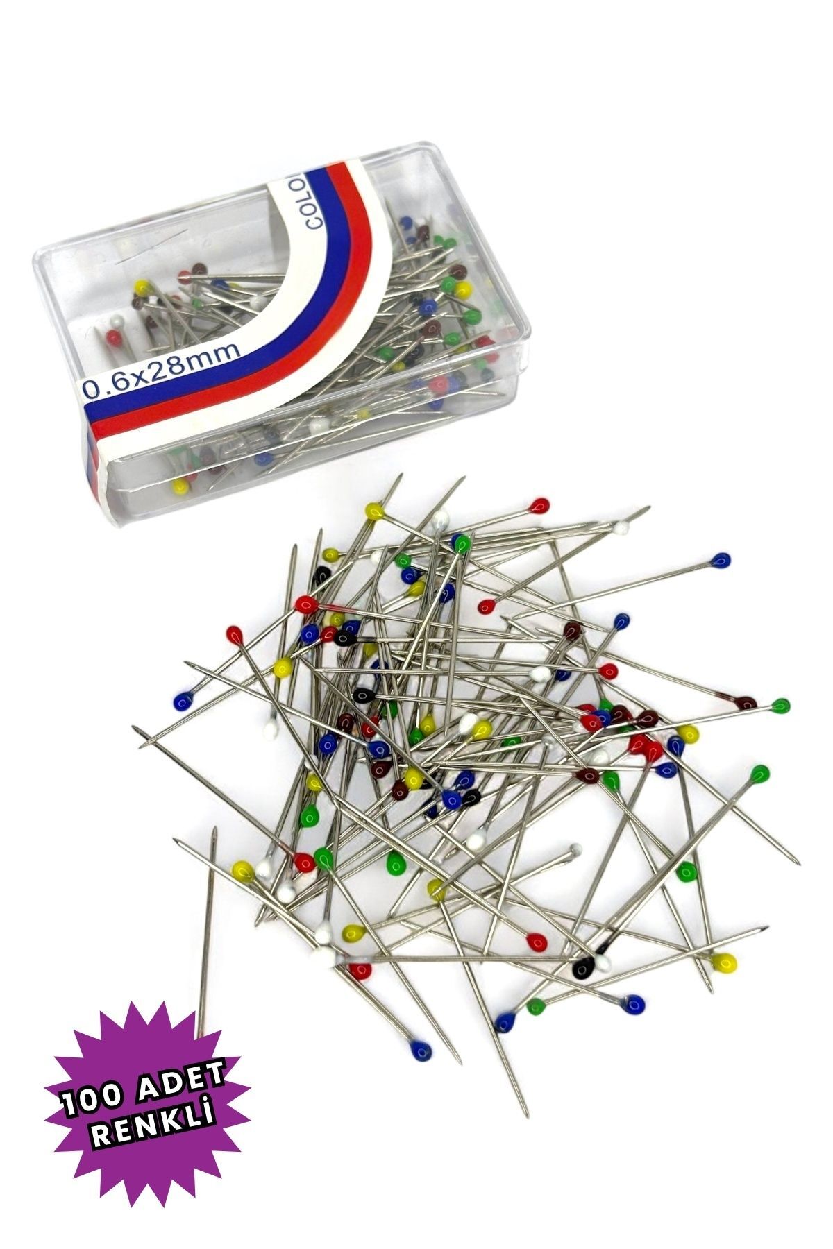 Toplu İğne 100 Adet - Eşarp Ve Şal İğnesi Çok Amaçlı Nişan Düğün Sünnet Takı İğnesi Renkli