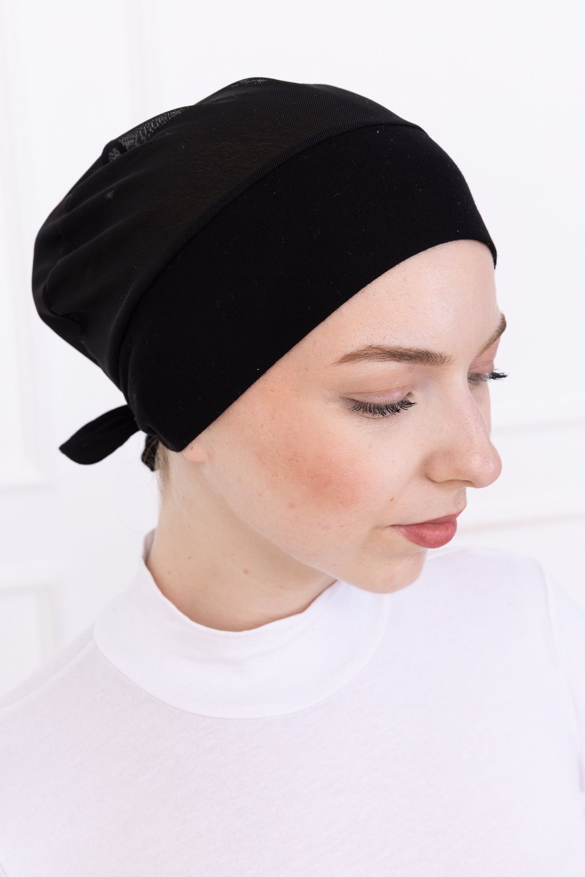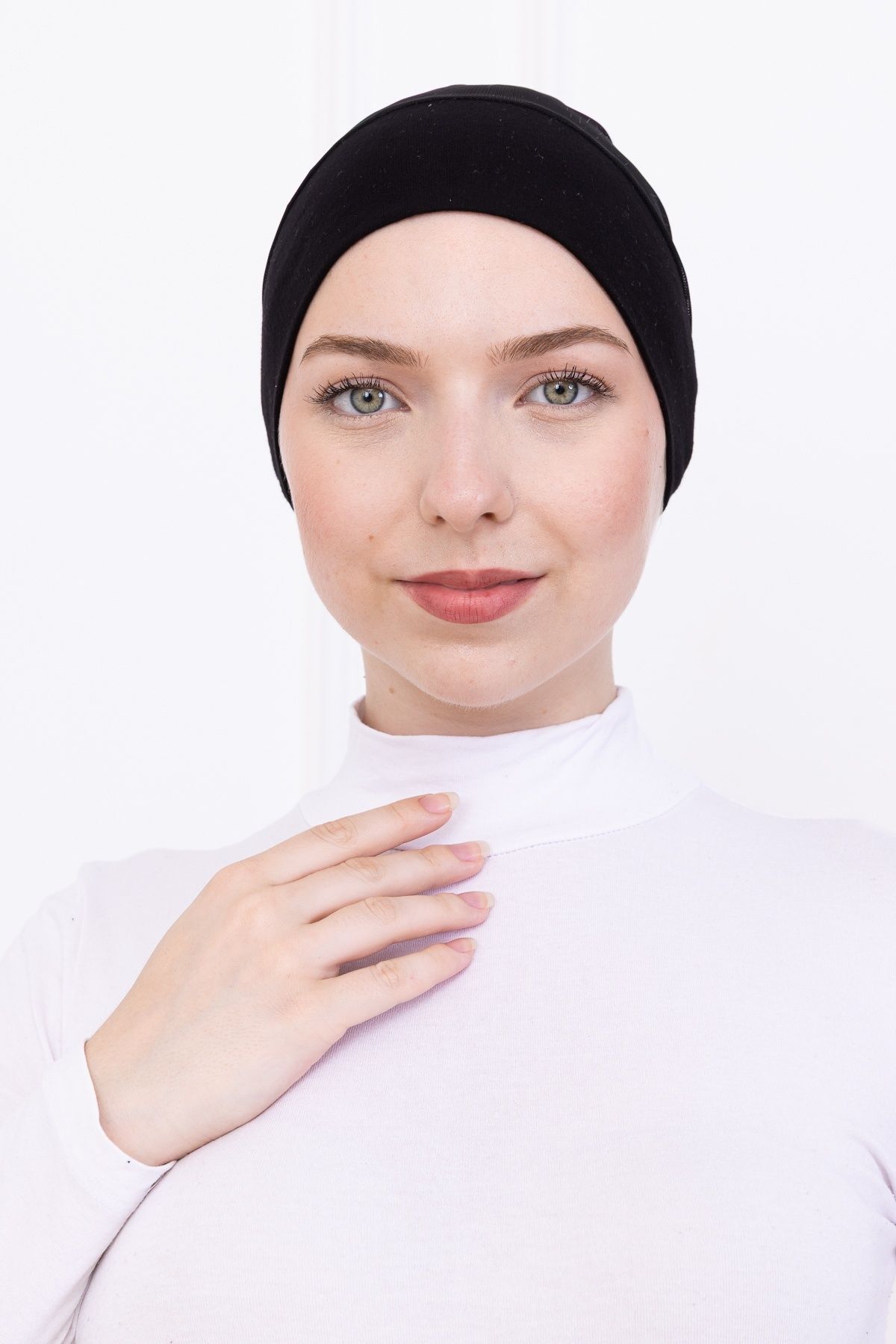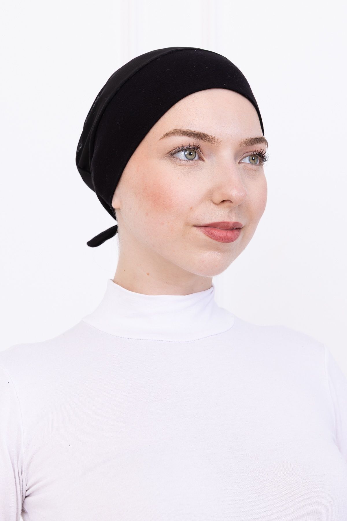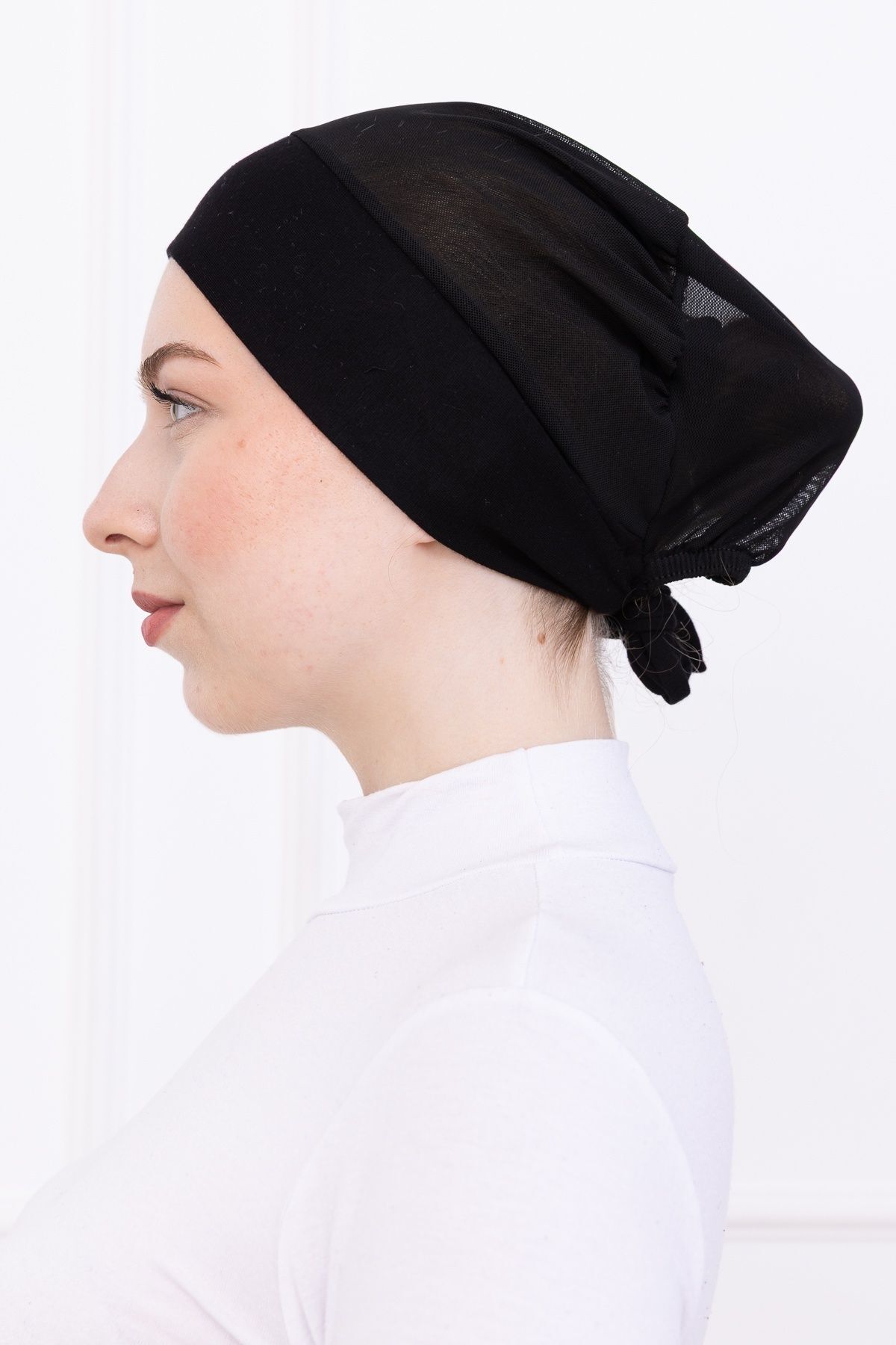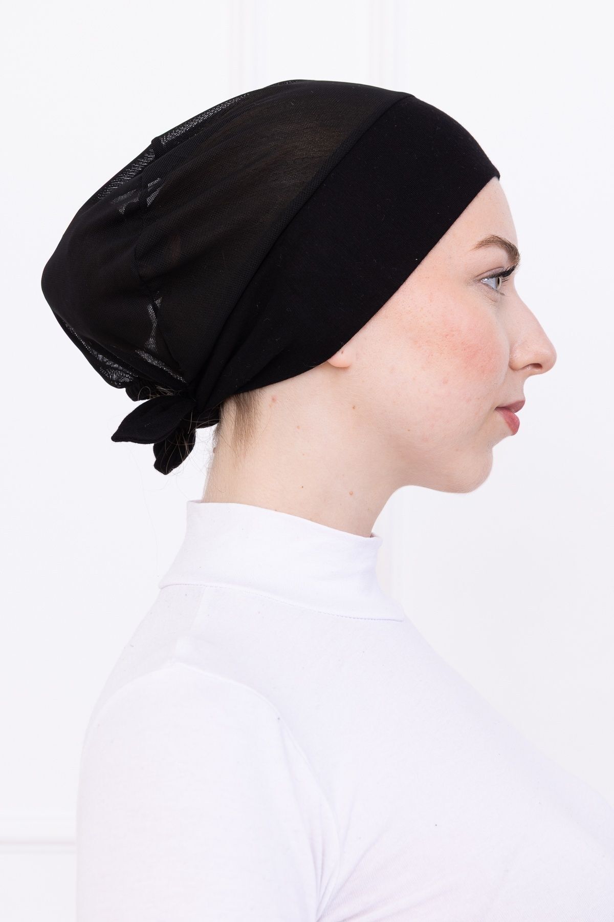 Yazlık Hava Alan Fileli Klimafit Bone - Dikişsiz Yaza Uygun Kadın Tesettür Pratik İç Bone Siyah